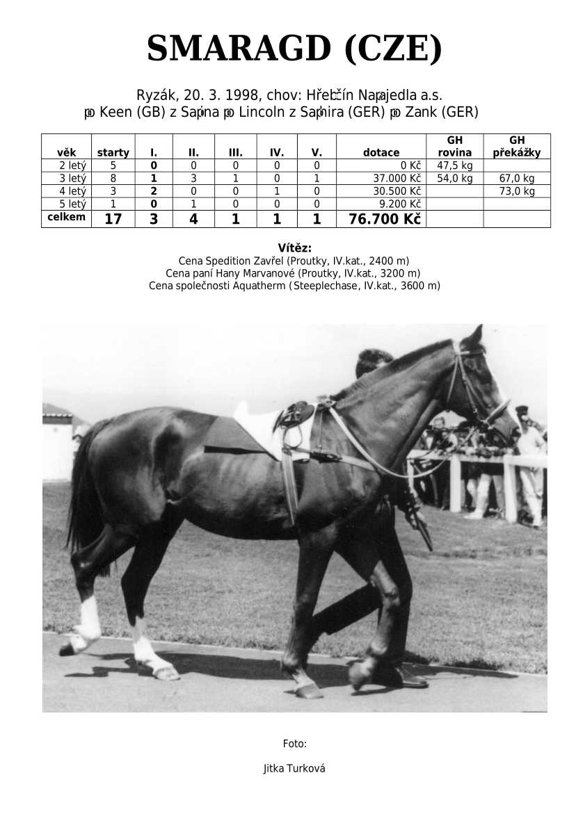 Trendem se ukazuje importování hotových koní. Stáda chovných klisen se stále tenčí, i když loňské úspěchy českých odchovanců byly excelentní, ale to už je jiná kapitola...