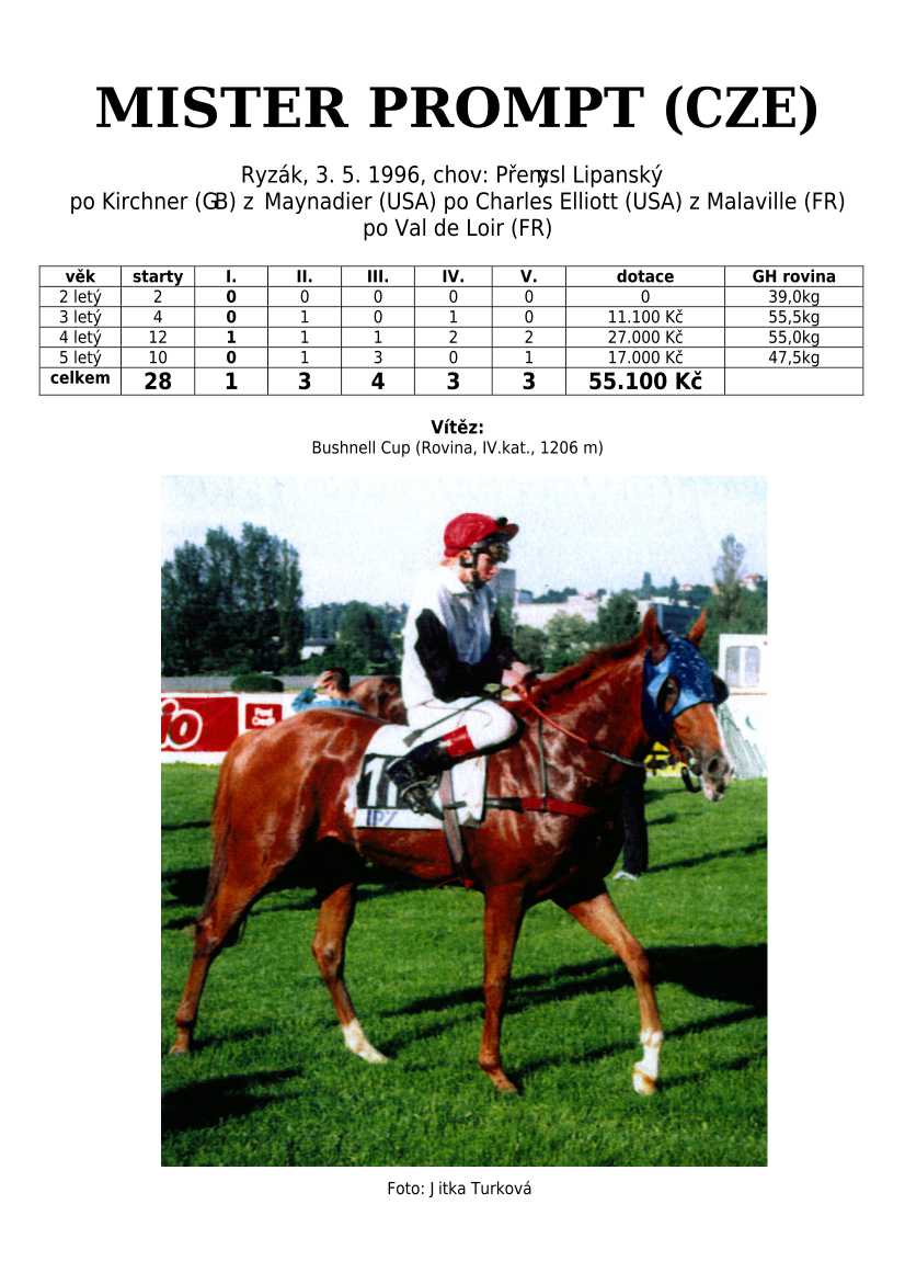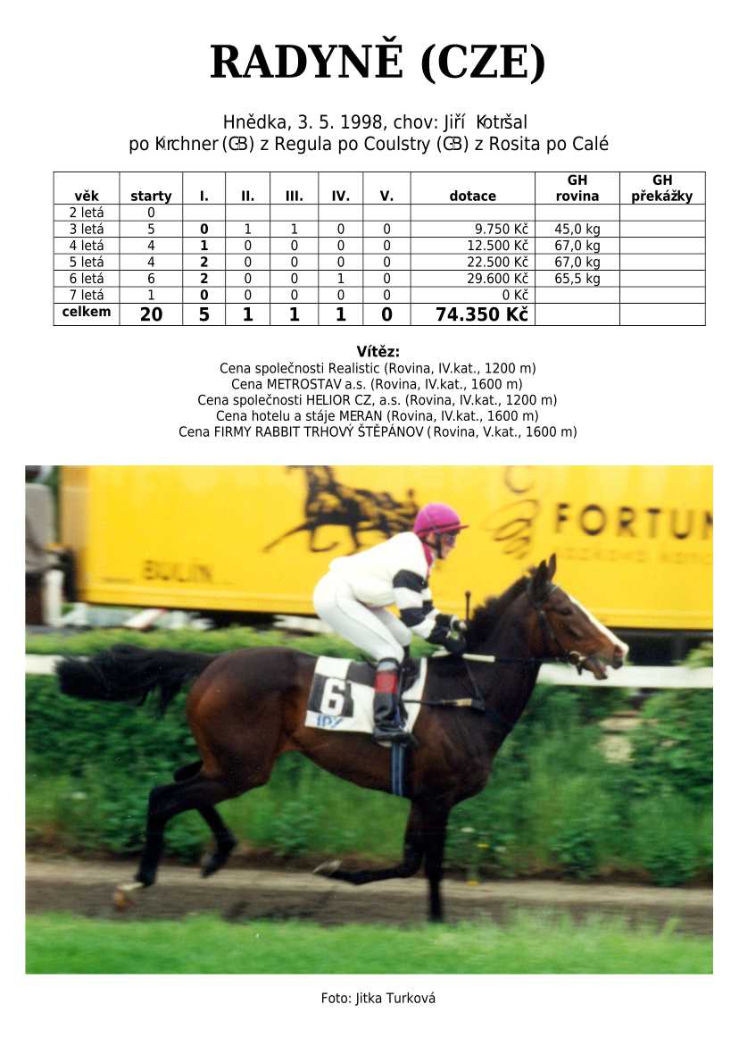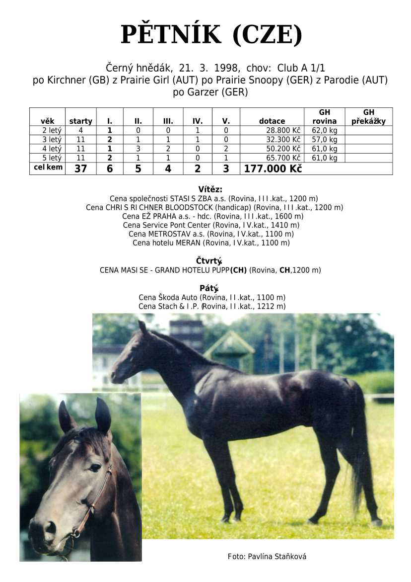 Ke konci dostihové sezóny jsem se pustila do aktualizace výsledků vítězných potomků. Každý plemeník bude mít své potomky na hlavní stránce, bez dalšího vyhledávání a klikání. Vše bude přehlednější, ale aktualizace bude z časových důvodů postupná. Přidáváni jsou potomci s ukončenou dostihovou kariérou.