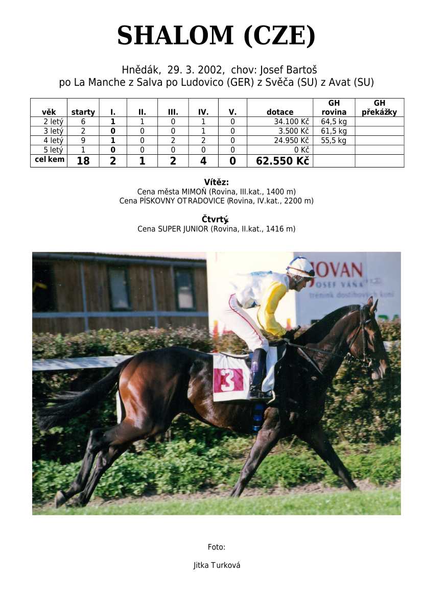 Trendem se ukazuje importování hotových koní. Stáda chovných klisen se stále tenčí, i když loňské úspěchy českých odchovanců byly excelentní, ale to už je jiná kapitola...