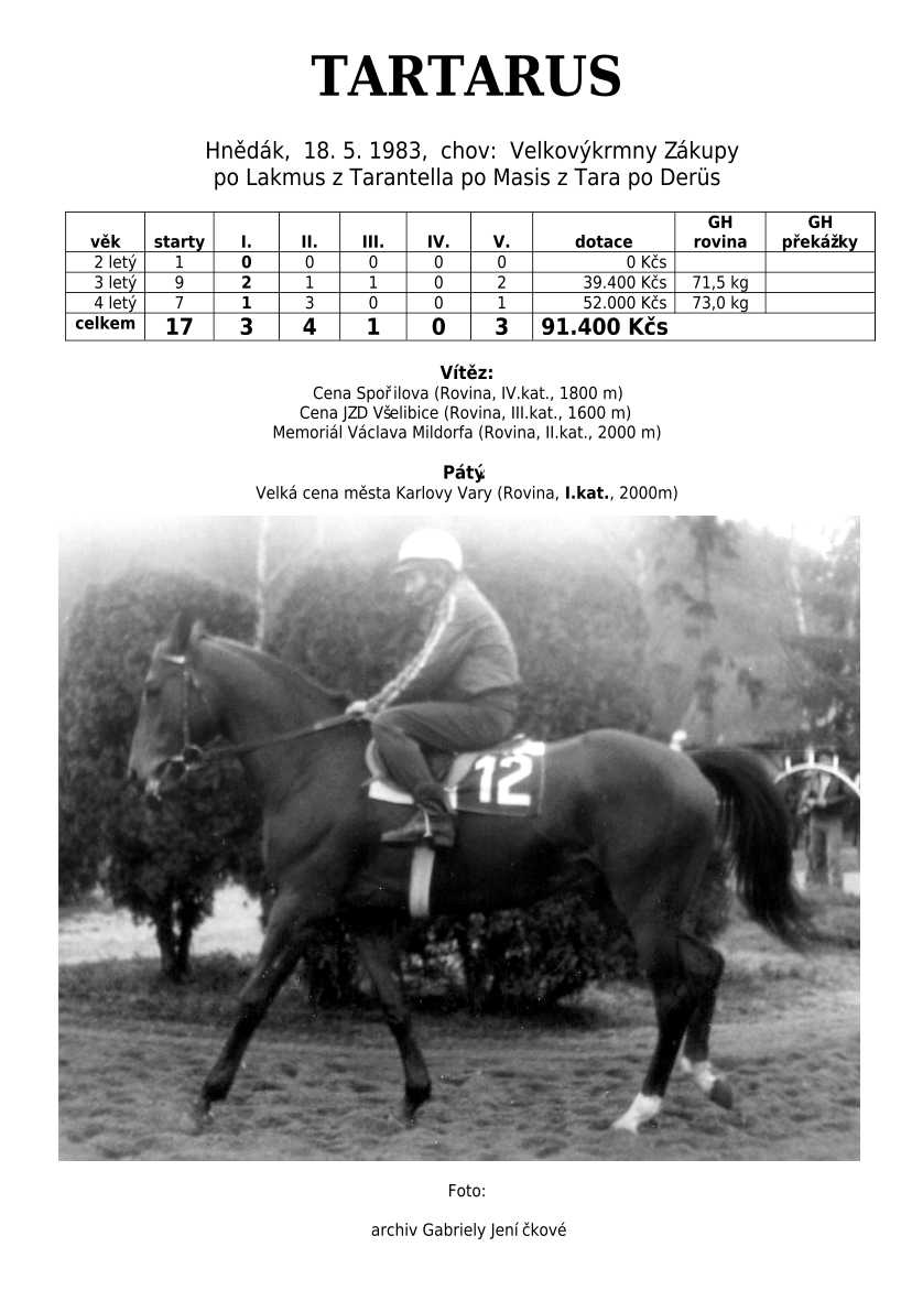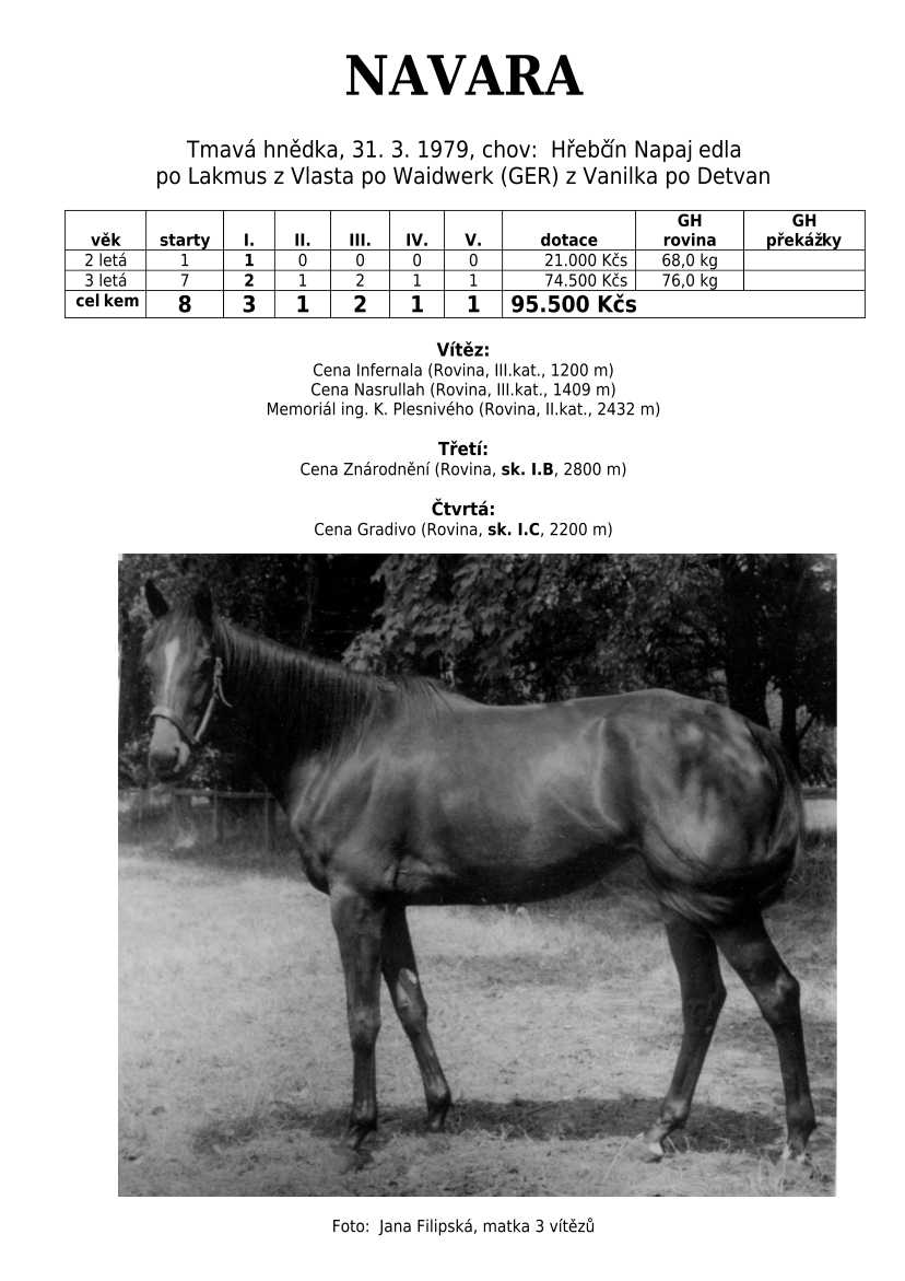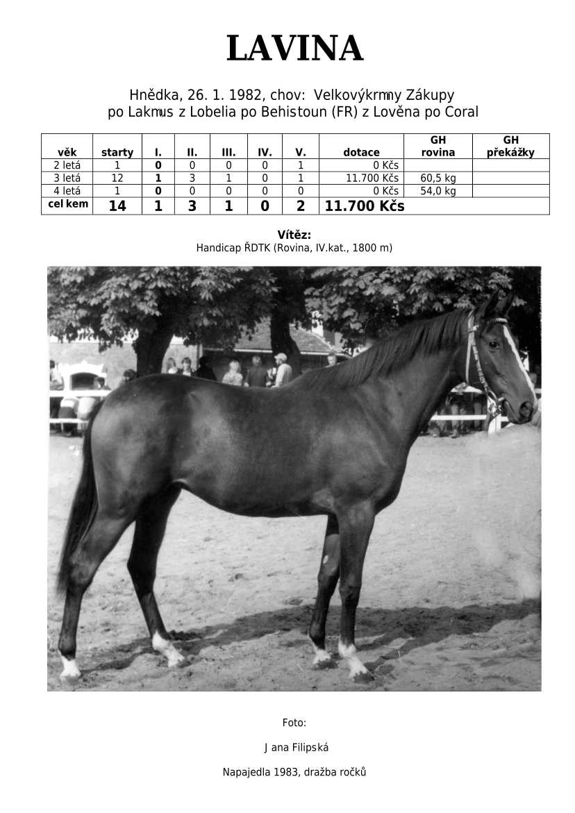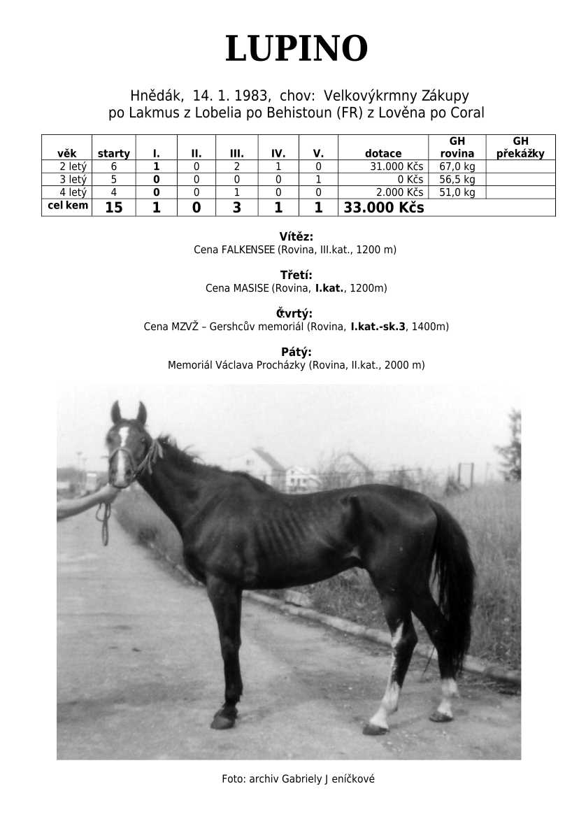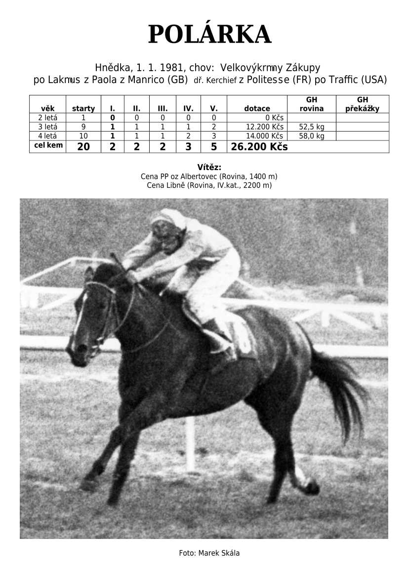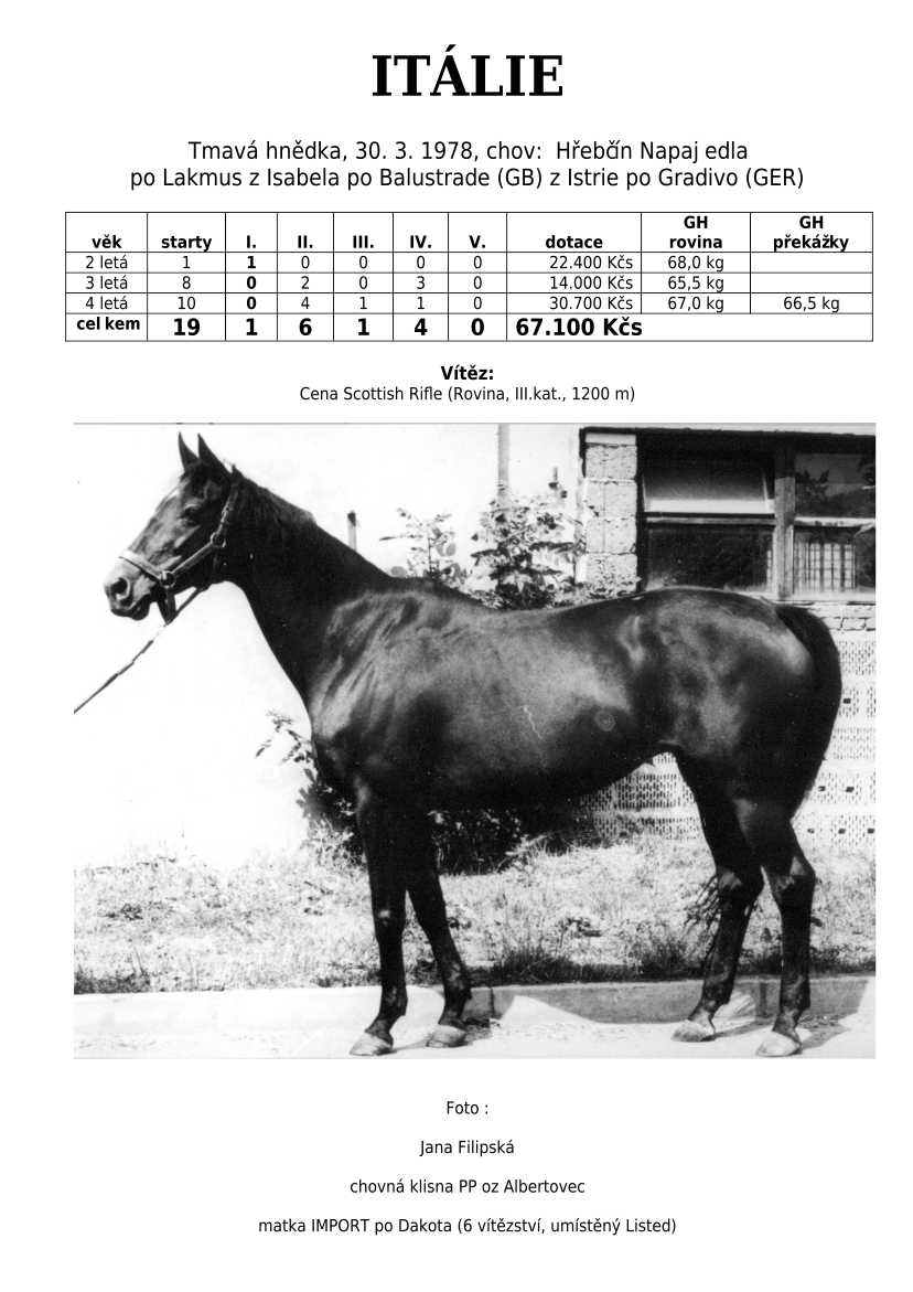 Lehce jsem upravila obsah stránek. Přestaly se zobrazovat některé fotografie, tak jsem se rozhodla, že poodhalím další část mého archivu. Určitě přijdou vhod vítězové Derby z českého chovu, podrobněji popsaní šampioni plemeníků, tituly nejlepší koně českého chovu mají vlastní menu. Protože se ztratila některá data, obnovuji jednotlivé plemeníky. Aktualizace katalogových stránek. Doplnění rodin o úspěšné členy, kteří v době vzniku ještě nebyli na světě. Starším hřebcům katalogové přehledy chyběly zcela.