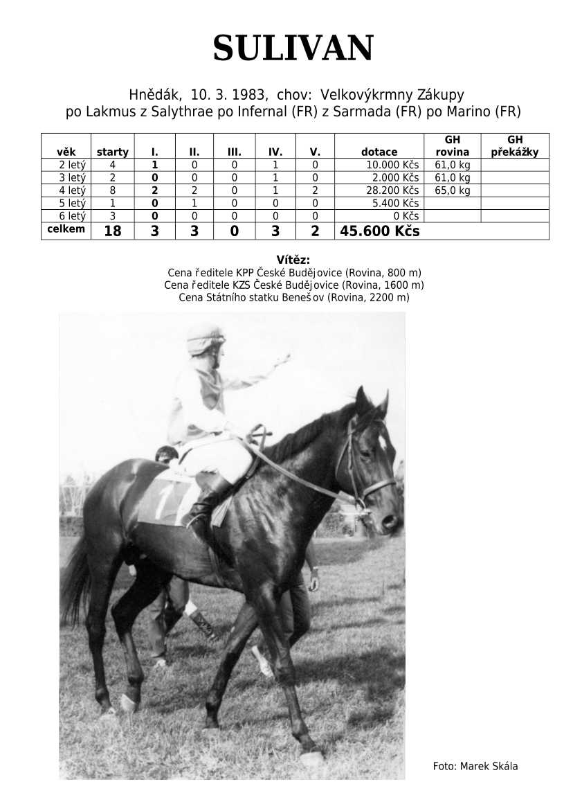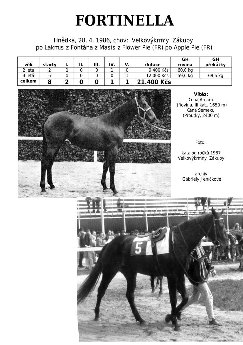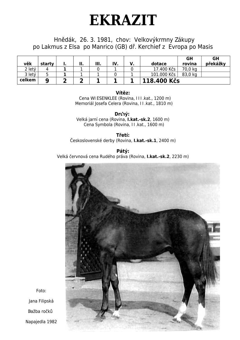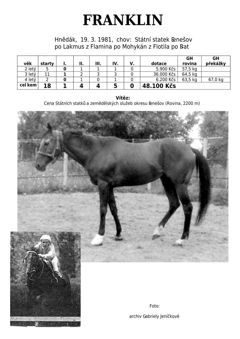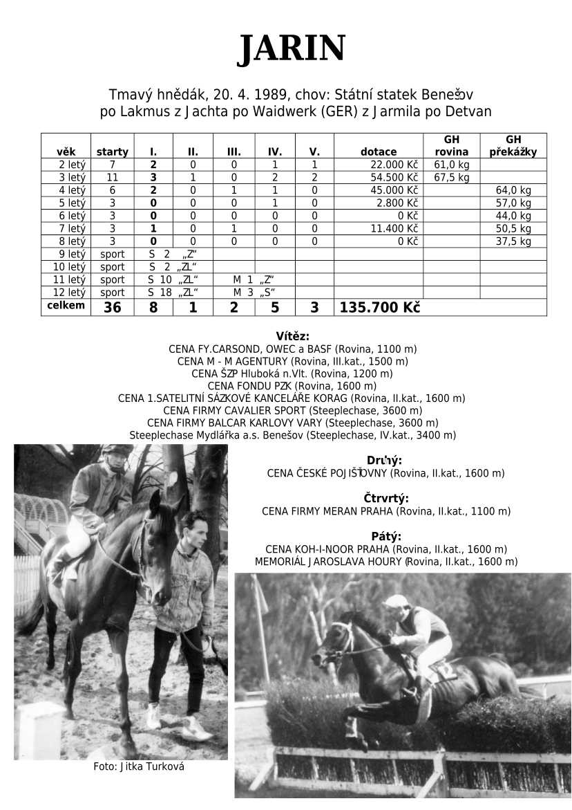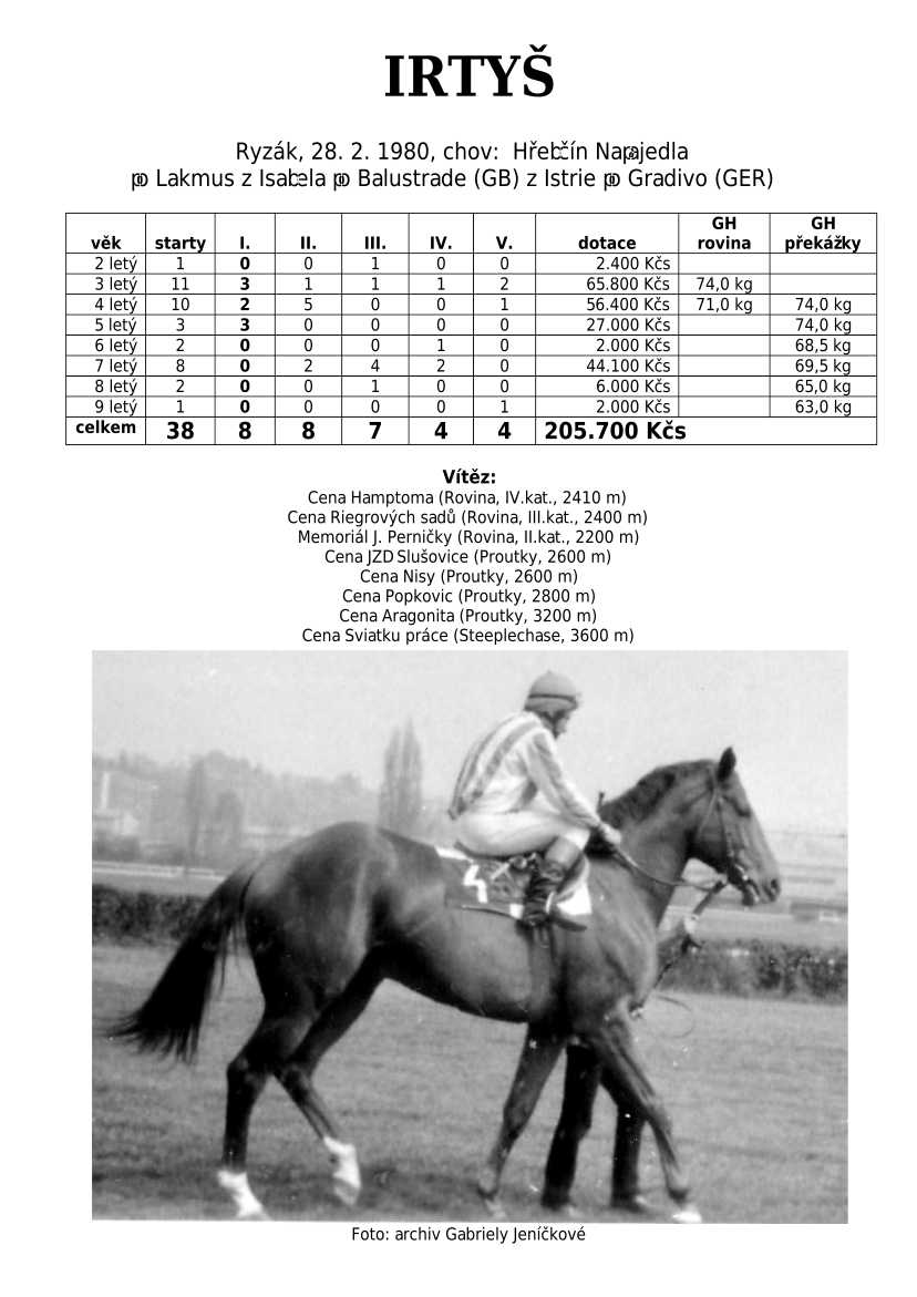 Lehce jsem upravila obsah stránek. Přestaly se zobrazovat některé fotografie, tak jsem se rozhodla, že poodhalím další část mého archivu. Určitě přijdou vhod vítězové Derby z českého chovu, podrobněji popsaní šampioni plemeníků, tituly nejlepší koně českého chovu mají vlastní menu. Protože se ztratila některá data, obnovuji jednotlivé plemeníky. Aktualizace katalogových stránek. Doplnění rodin o úspěšné členy, kteří v době vzniku ještě nebyli na světě. Starším hřebcům katalogové přehledy chyběly zcela.
