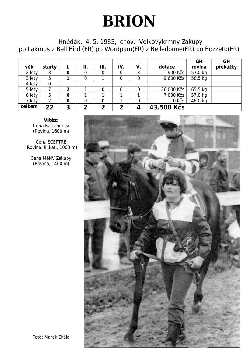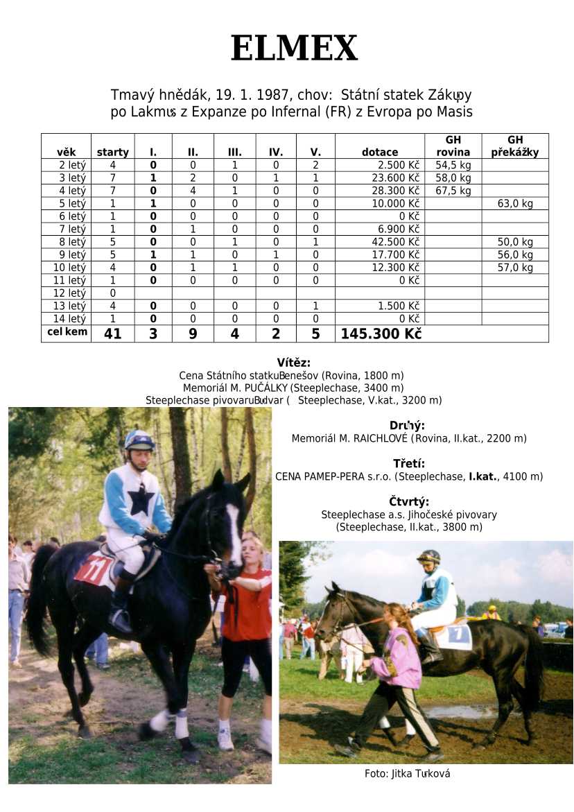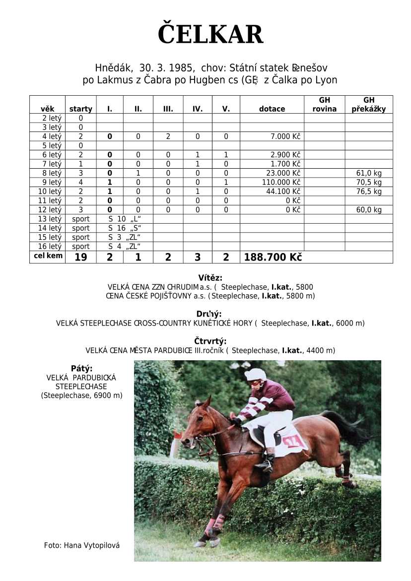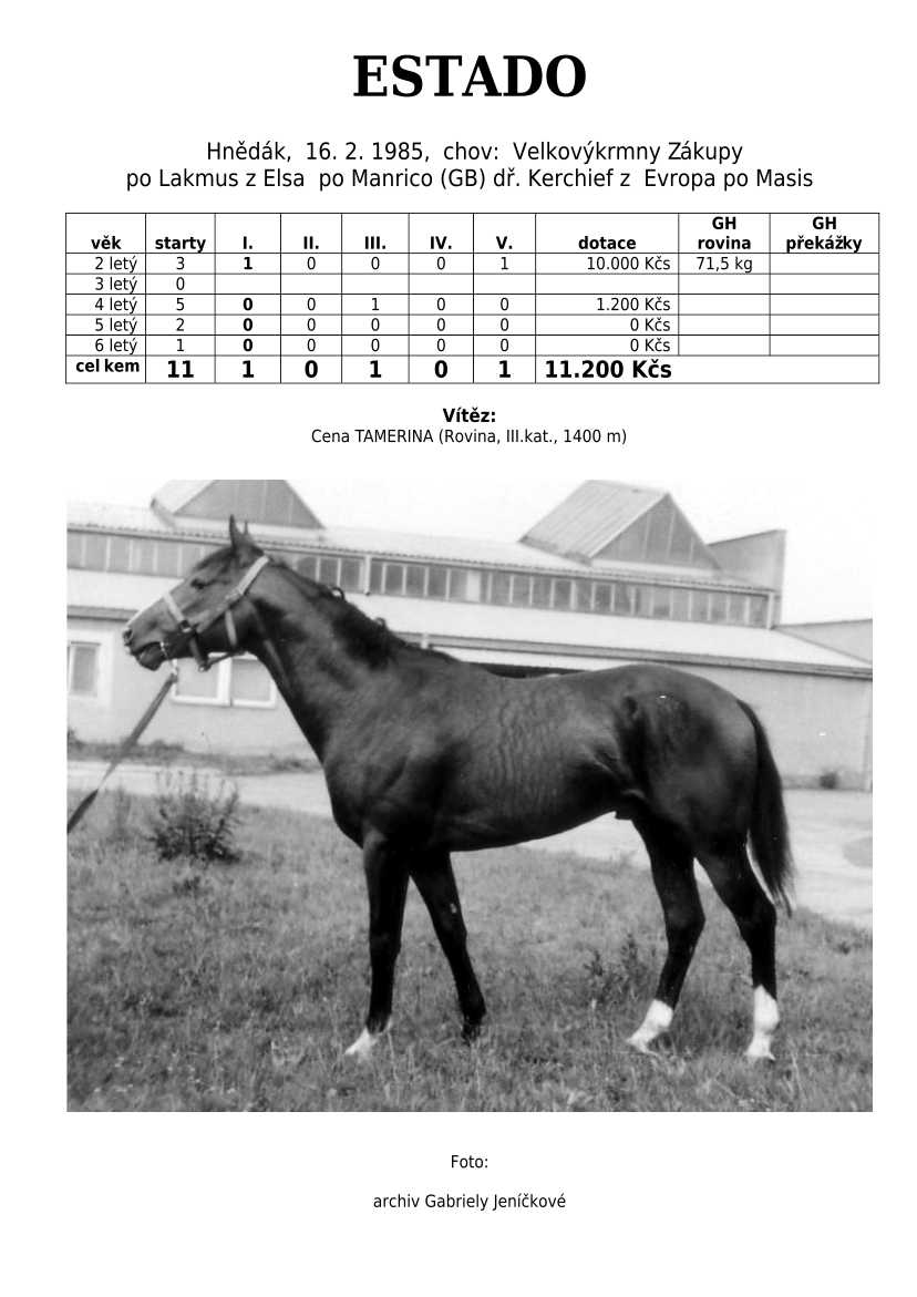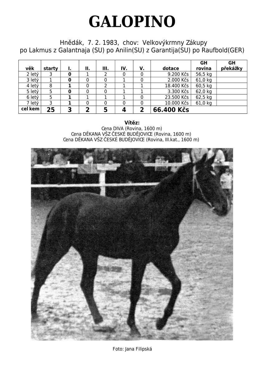 Lehce jsem upravila obsah stránek. Přestaly se zobrazovat některé fotografie, tak jsem se rozhodla, že poodhalím další část mého archivu. Určitě přijdou vhod vítězové Derby z českého chovu, podrobněji popsaní šampioni plemeníků, tituly nejlepší koně českého chovu mají vlastní menu. Protože se ztratila některá data, obnovuji jednotlivé plemeníky. Aktualizace katalogových stránek. Doplnění rodin o úspěšné členy, kteří v době vzniku ještě nebyli na světě. Starším hřebcům katalogové přehledy chyběly zcela.