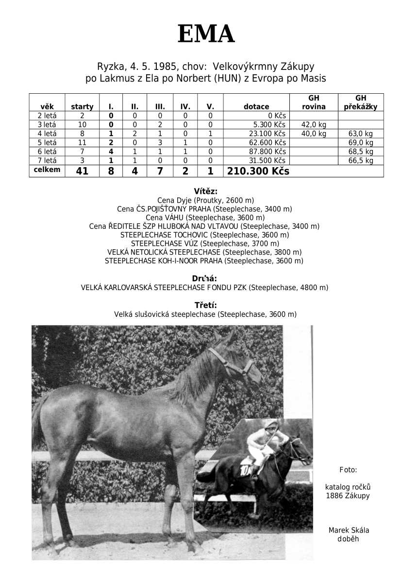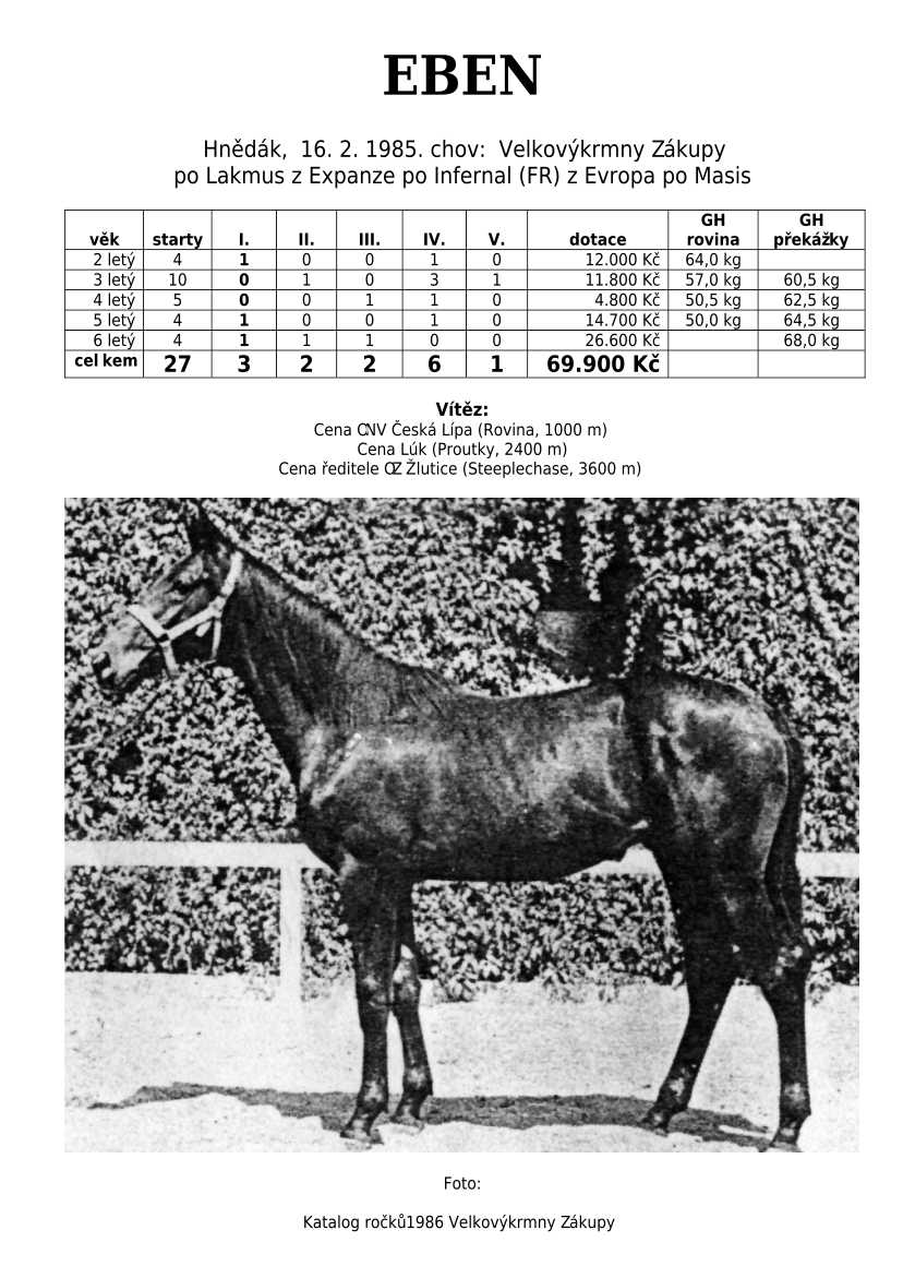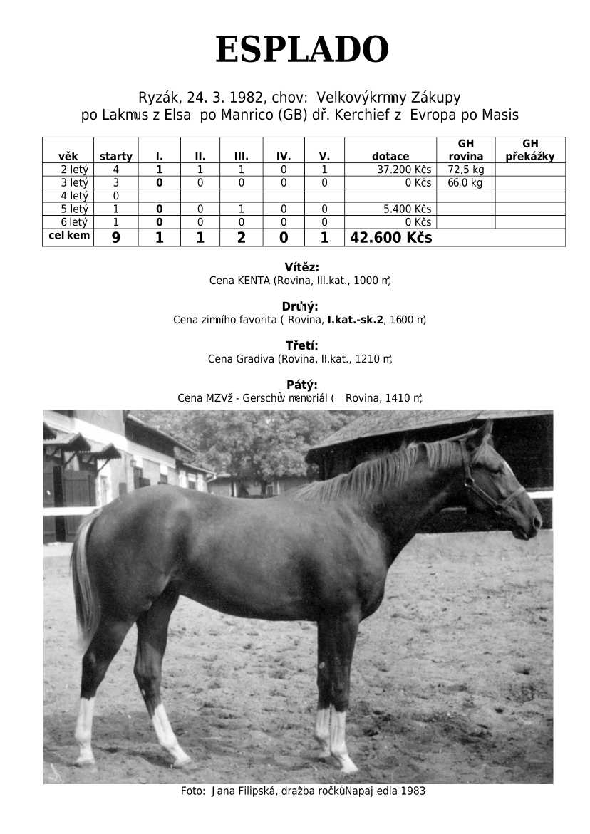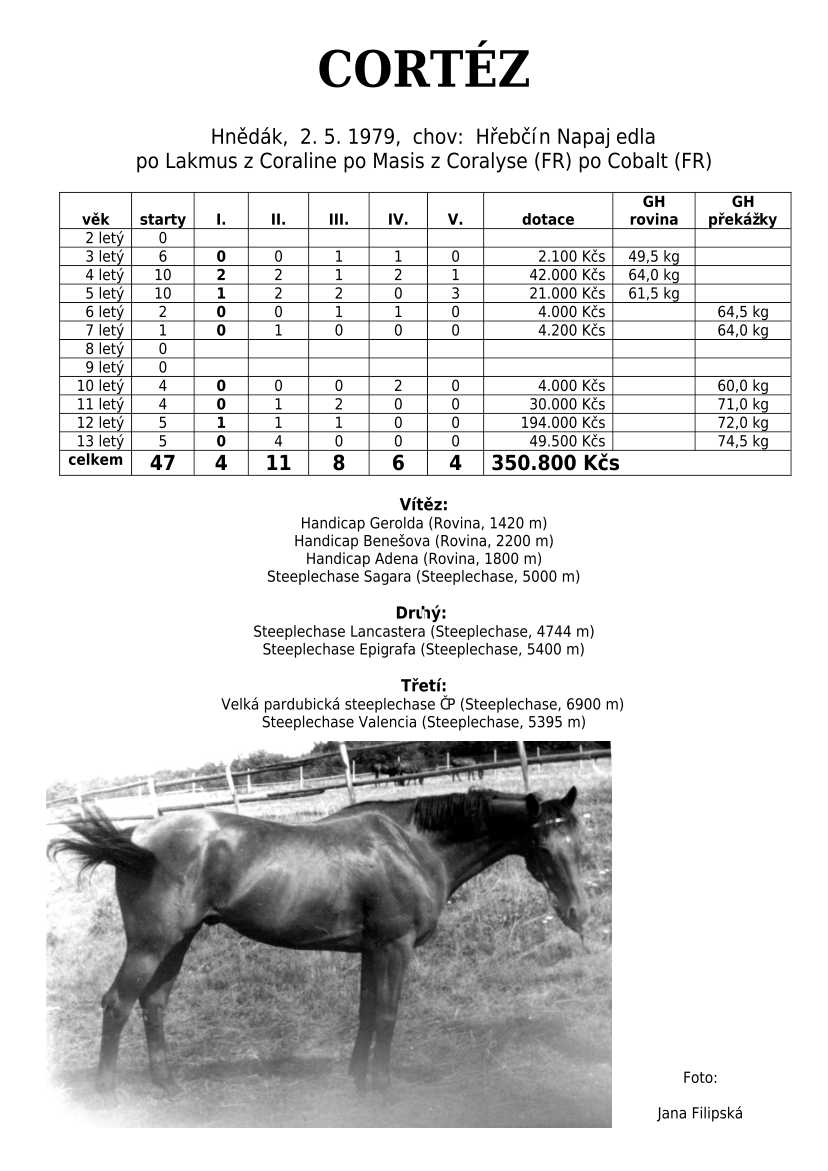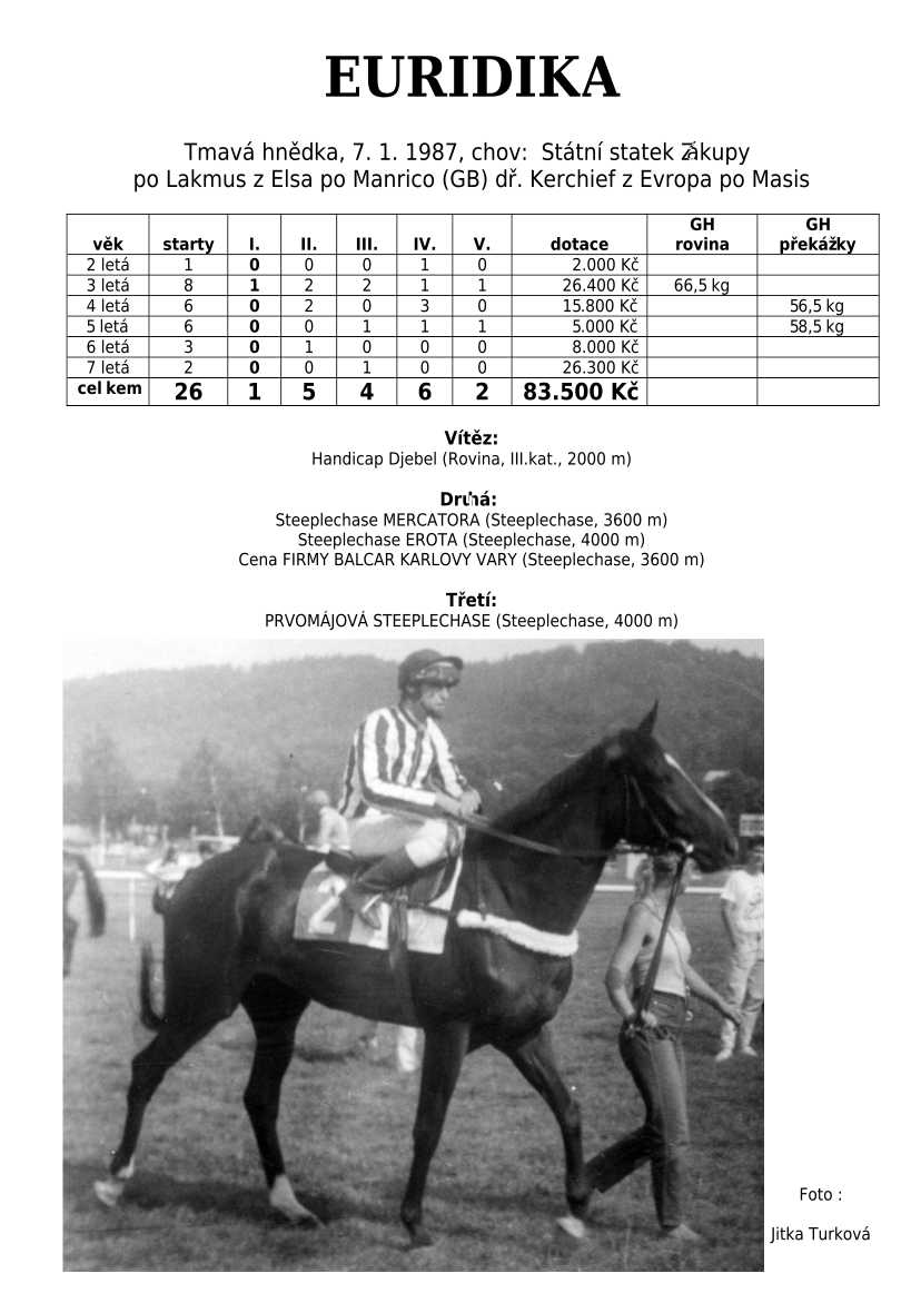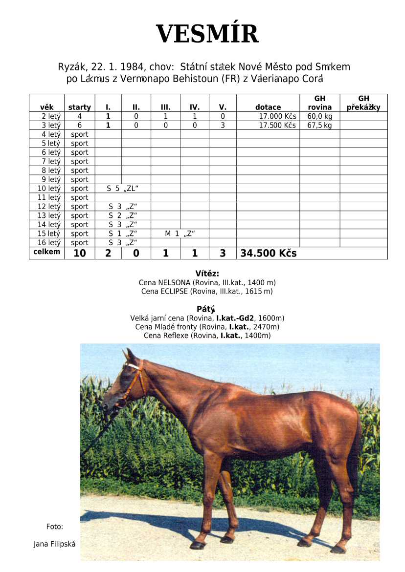 Lehce jsem upravila obsah stránek. Přestaly se zobrazovat některé fotografie, tak jsem se rozhodla, že poodhalím další část mého archivu. Určitě přijdou vhod vítězové Derby z českého chovu, podrobněji popsaní šampioni plemeníků, tituly nejlepší koně českého chovu mají vlastní menu. Protože se ztratila některá data, obnovuji jednotlivé plemeníky. Aktualizace katalogových stránek. Doplnění rodin o úspěšné členy, kteří v době vzniku ještě nebyli na světě. Starším hřebcům katalogové přehledy chyběly zcela.