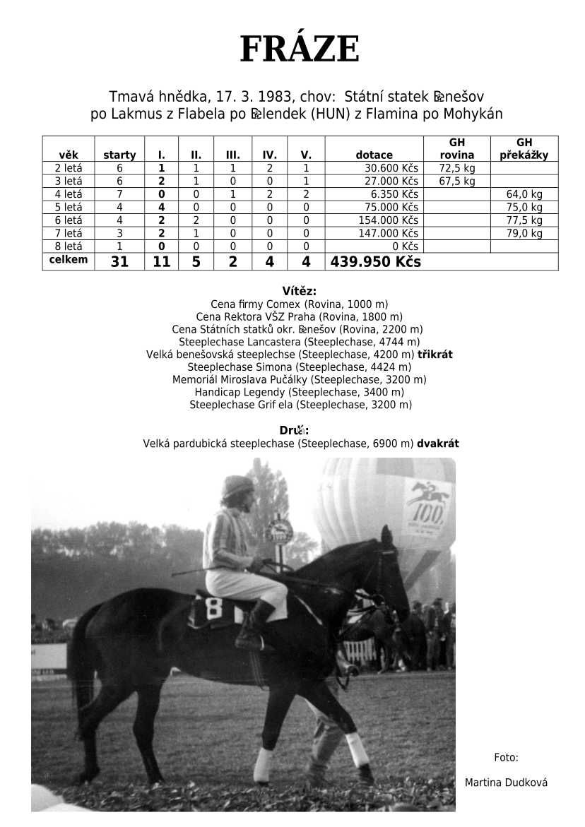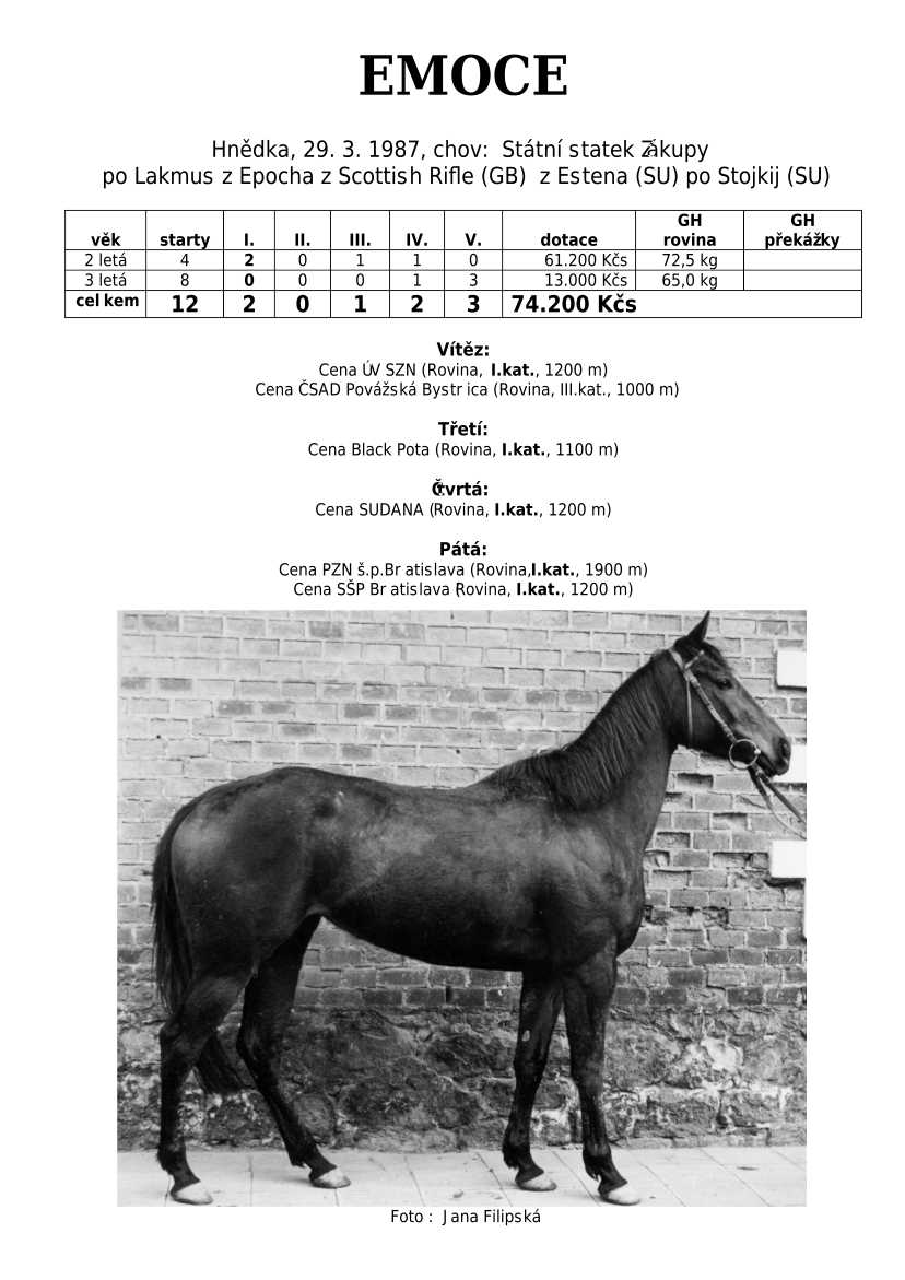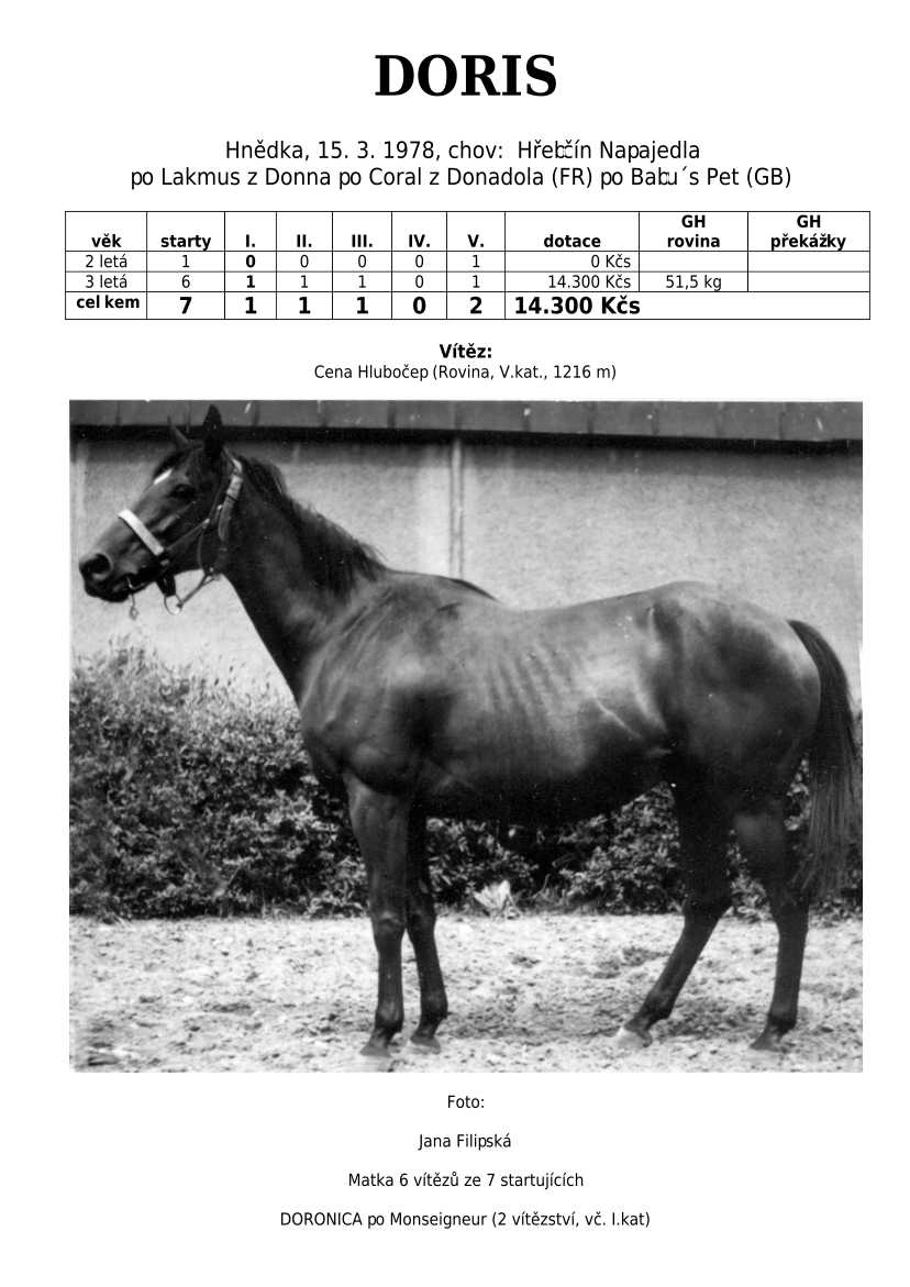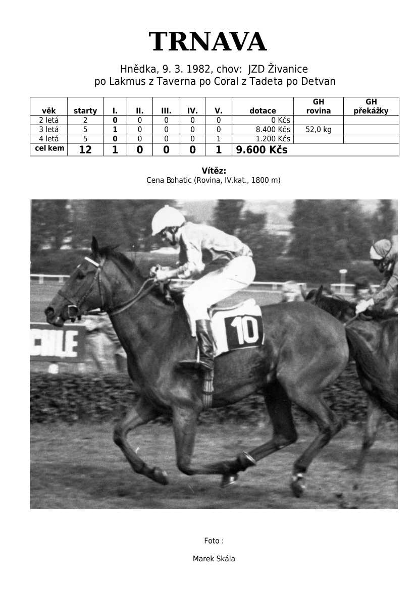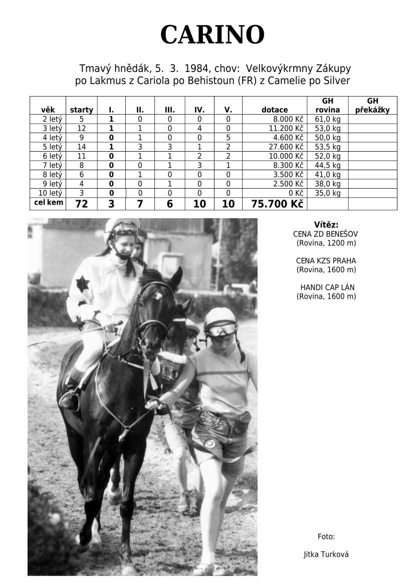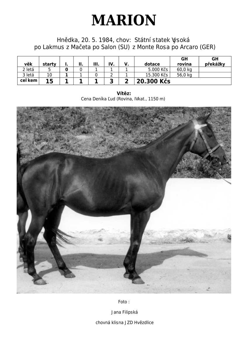 Lehce jsem upravila obsah stránek. Přestaly se zobrazovat některé fotografie, tak jsem se rozhodla, že poodhalím další část mého archivu. Určitě přijdou vhod vítězové Derby z českého chovu, podrobněji popsaní šampioni plemeníků, tituly nejlepší koně českého chovu mají vlastní menu. Protože se ztratila některá data, obnovuji jednotlivé plemeníky. Aktualizace katalogových stránek. Doplnění rodin o úspěšné členy, kteří v době vzniku ještě nebyli na světě. Starším hřebcům katalogové přehledy chyběly zcela.