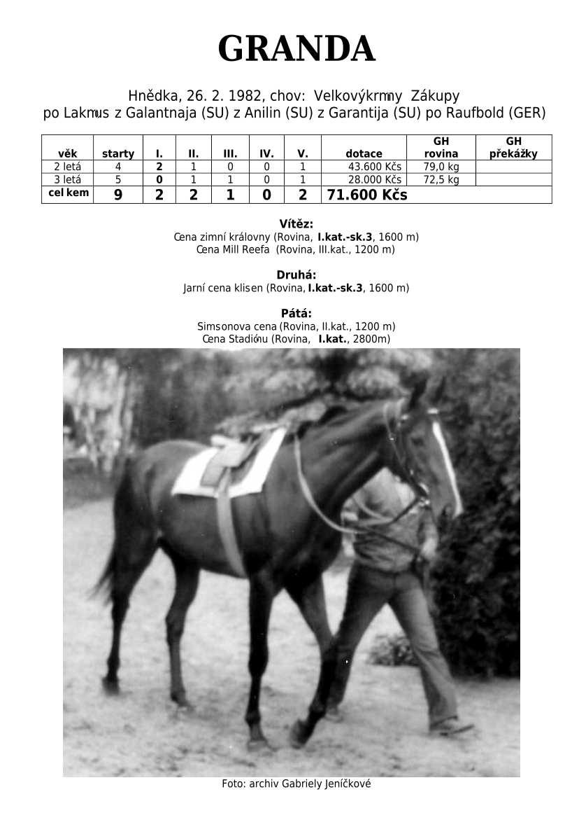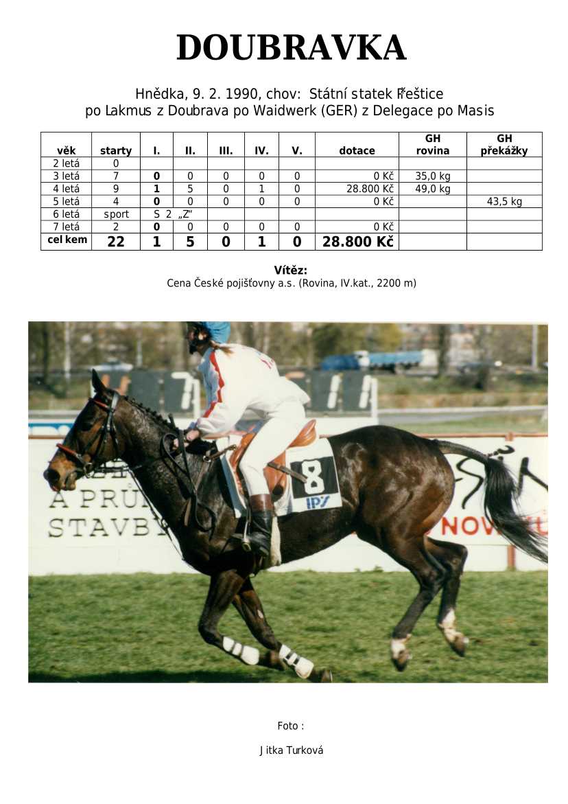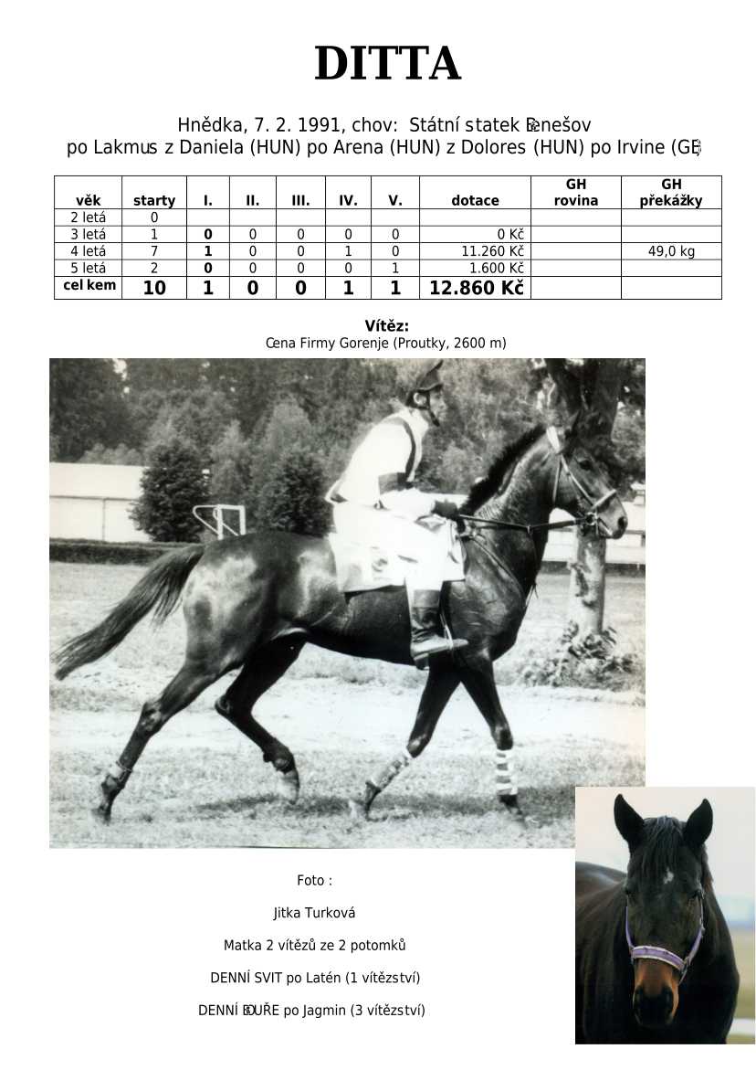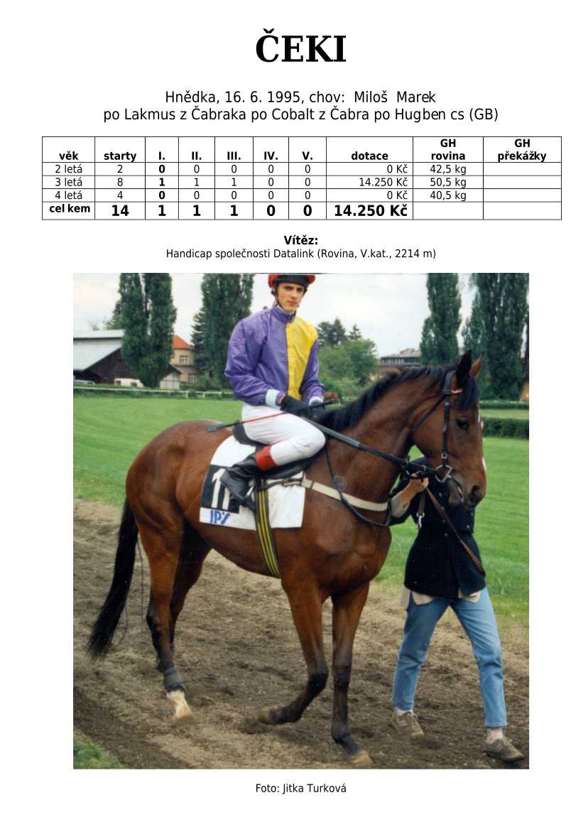 V Derby je také zastoupená jedinečná hřebčí linie českého chovu po 4 generace