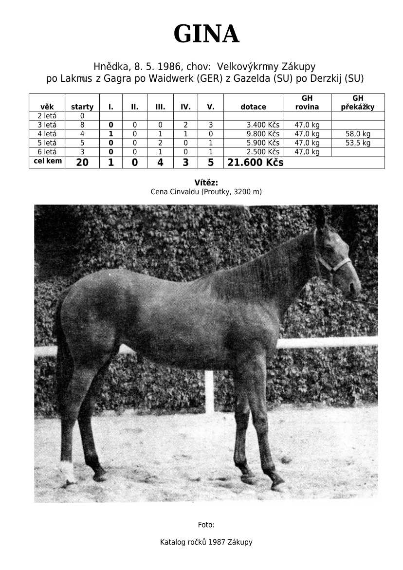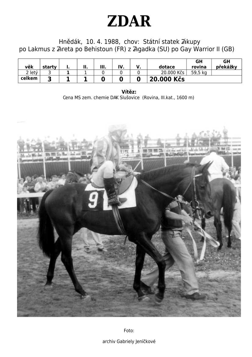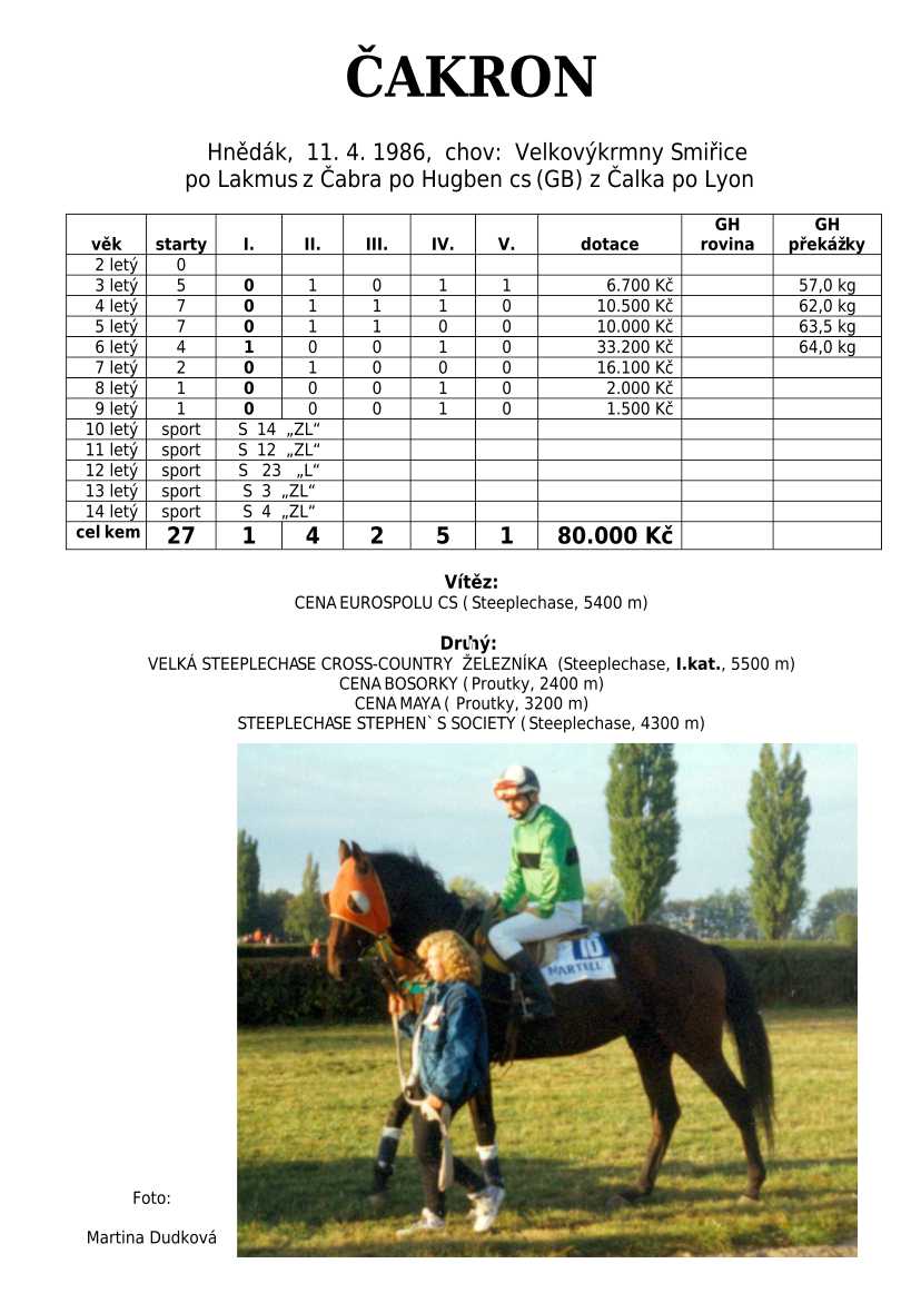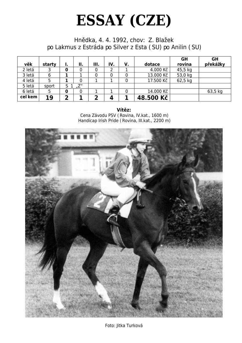 V Derby je také zastoupená jedinečná hřebčí linie českého chovu po 4 generace