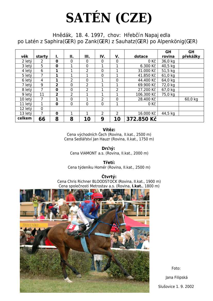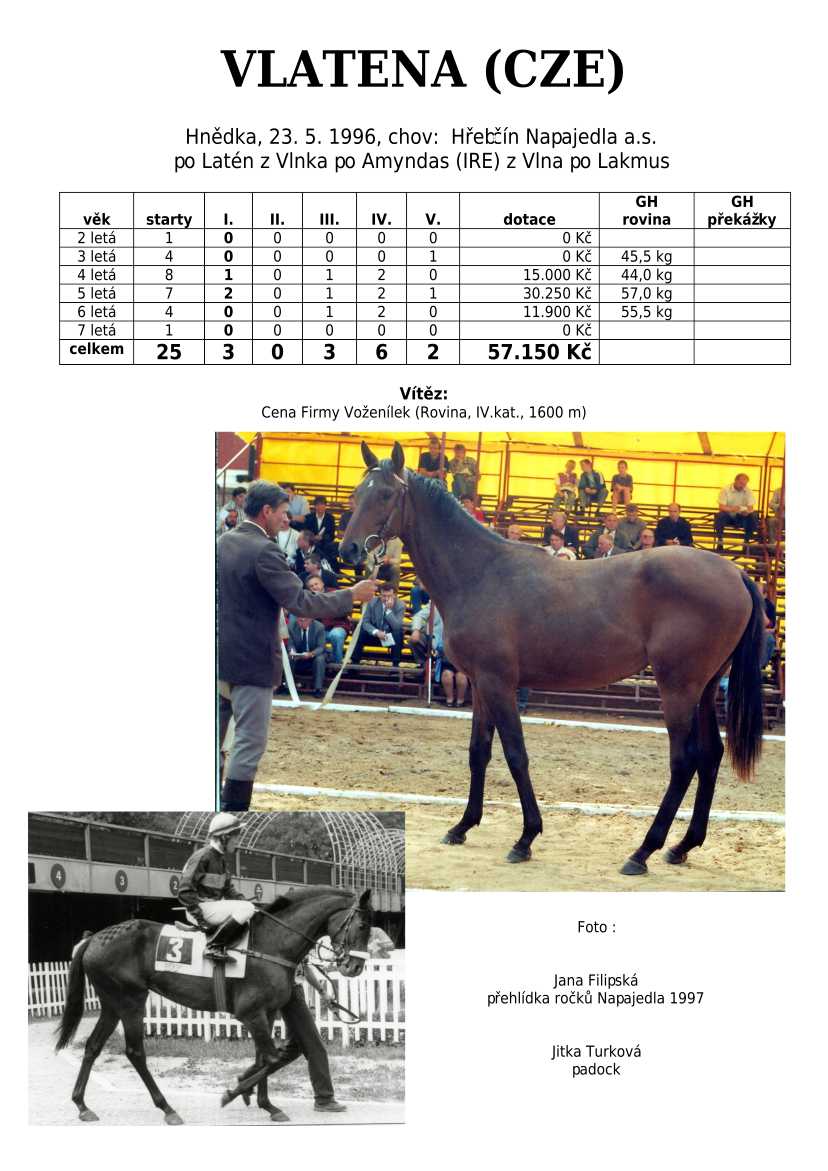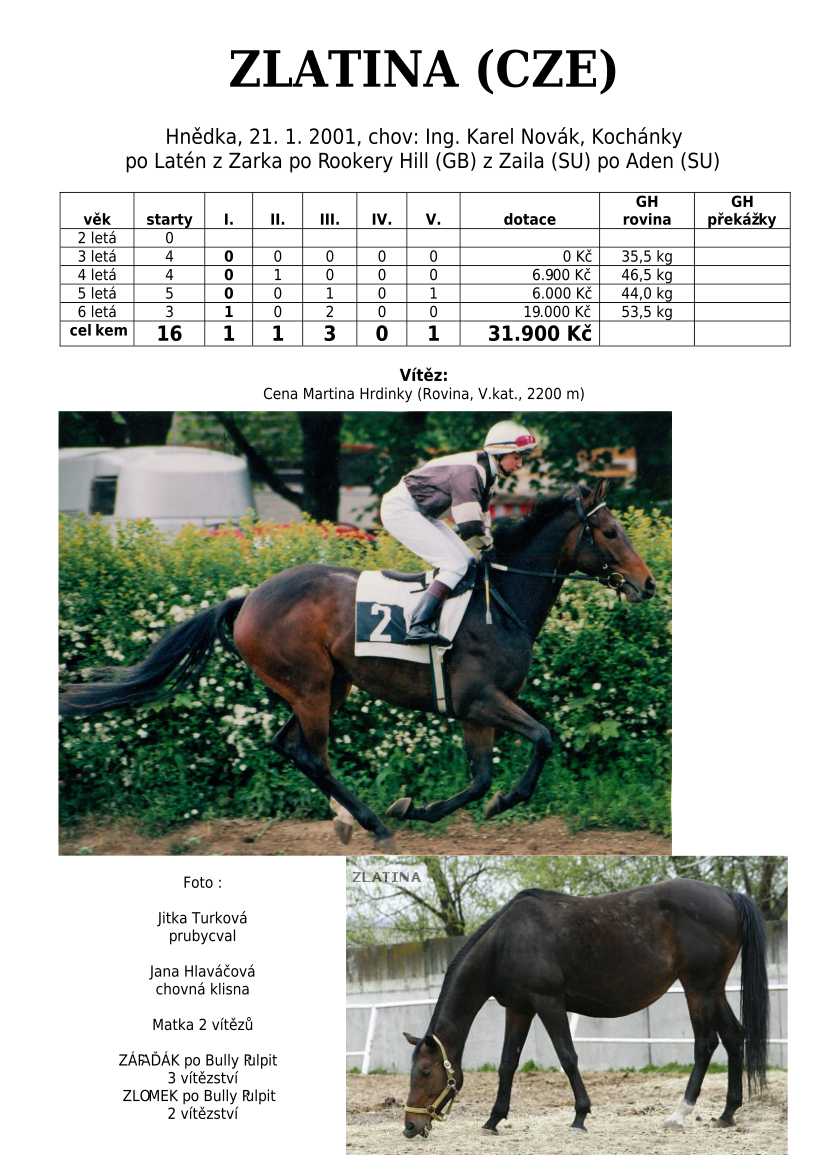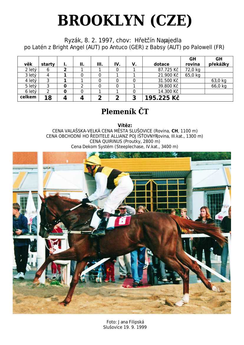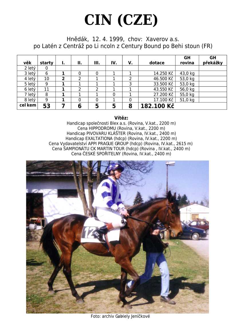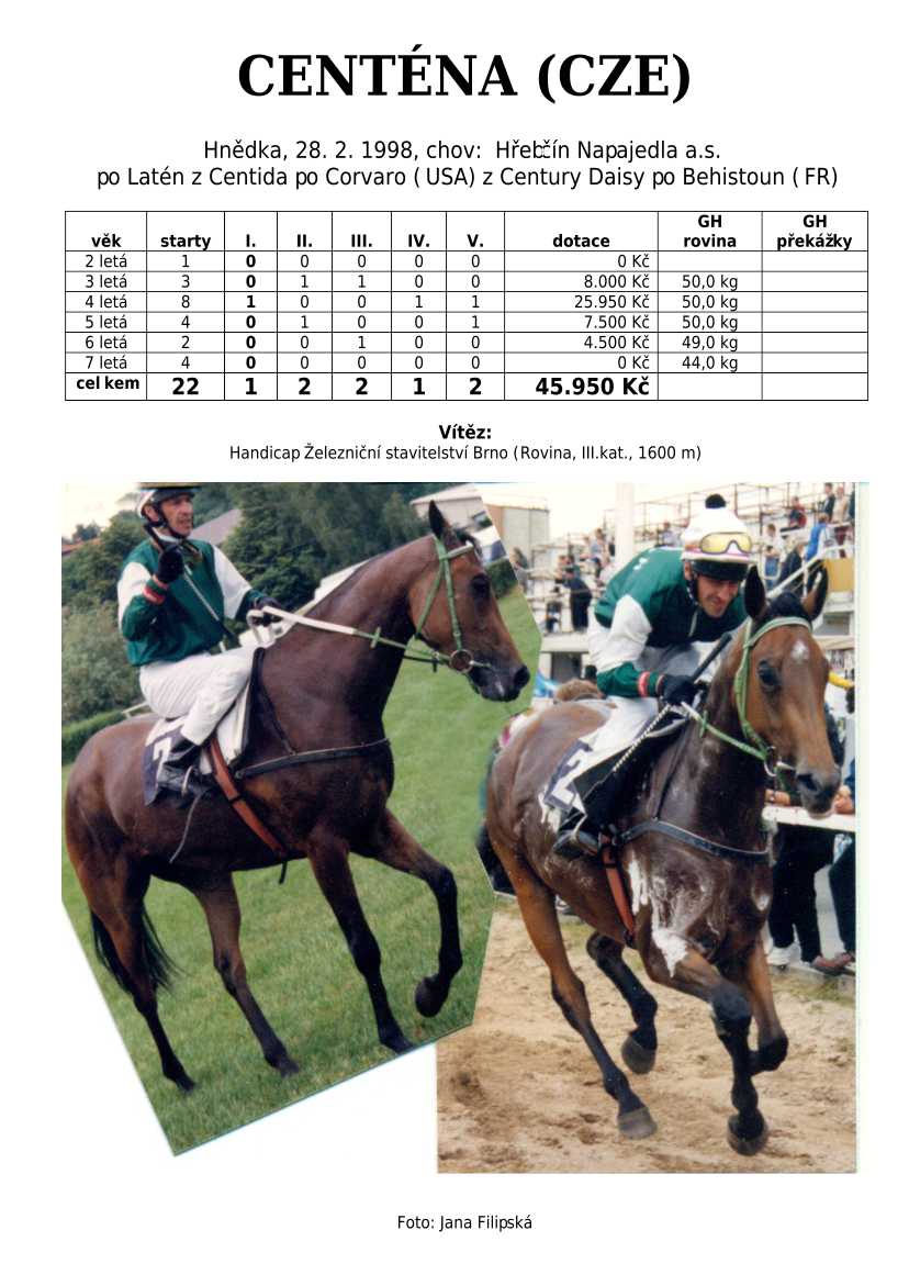 Ke konci dostihové sezóny jsem se pustila do aktualizace výsledků vítězných potomků. Každý plemeník bude mít své potomky na hlavní stránce, bez dalšího vyhledávání a klikání. Vše bude přehlednější, ale aktualizace bude z časových důvodů postupná. Přidáváni jsou potomci s ukončenou dostihovou kariérou.