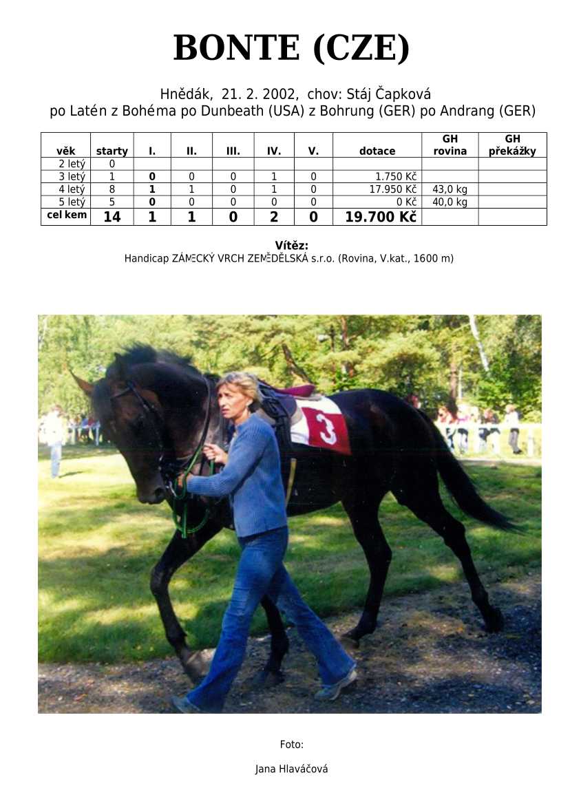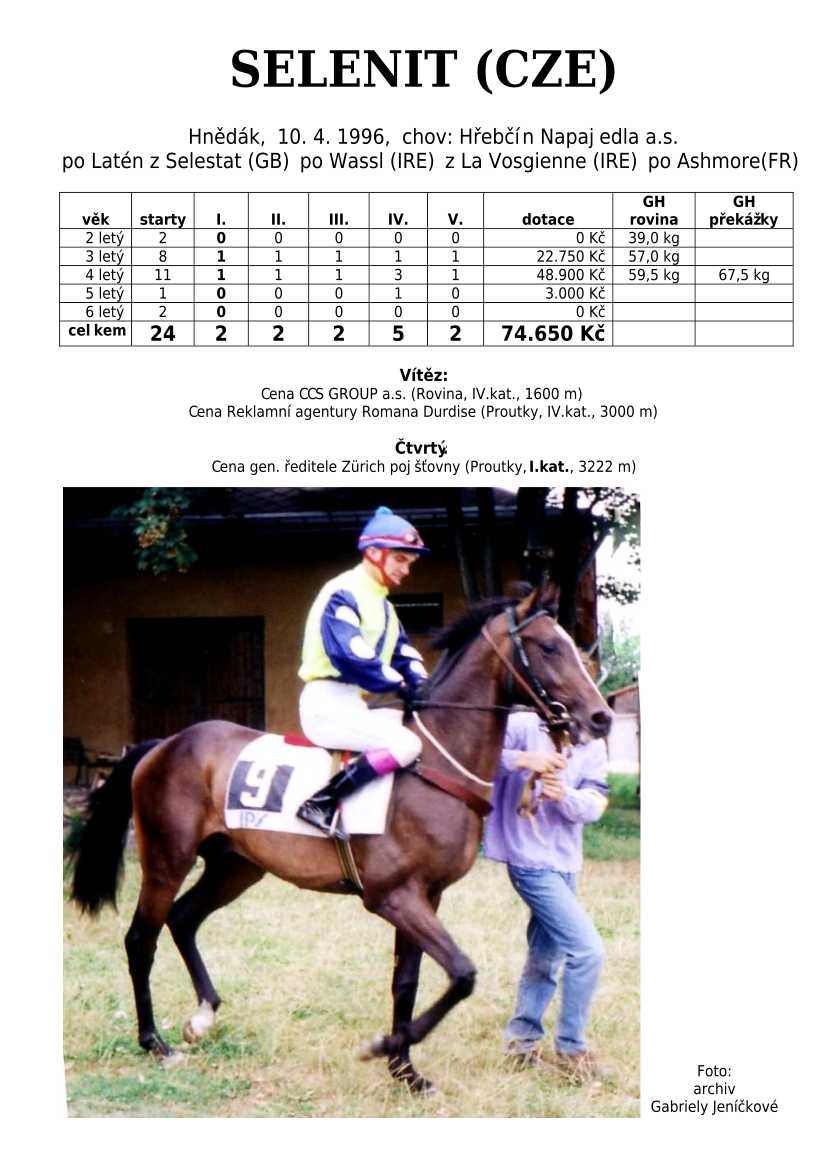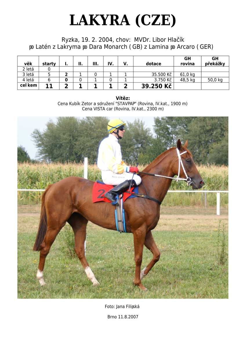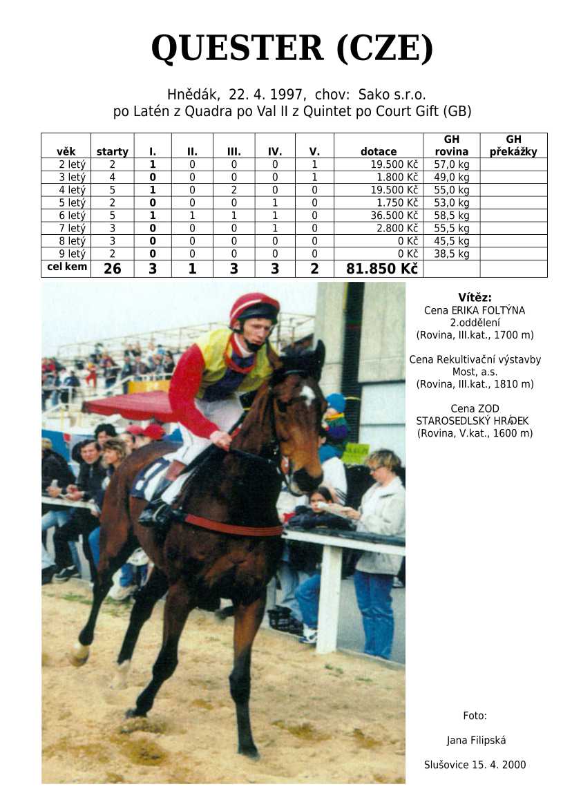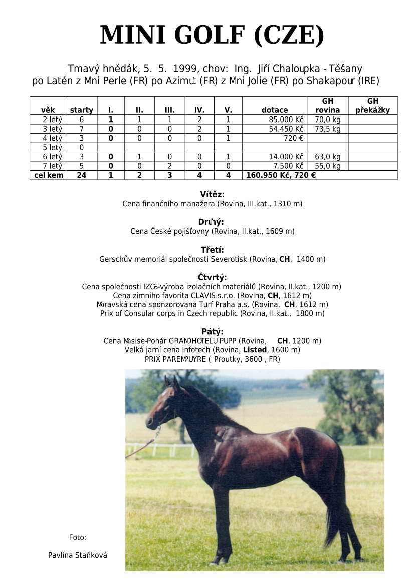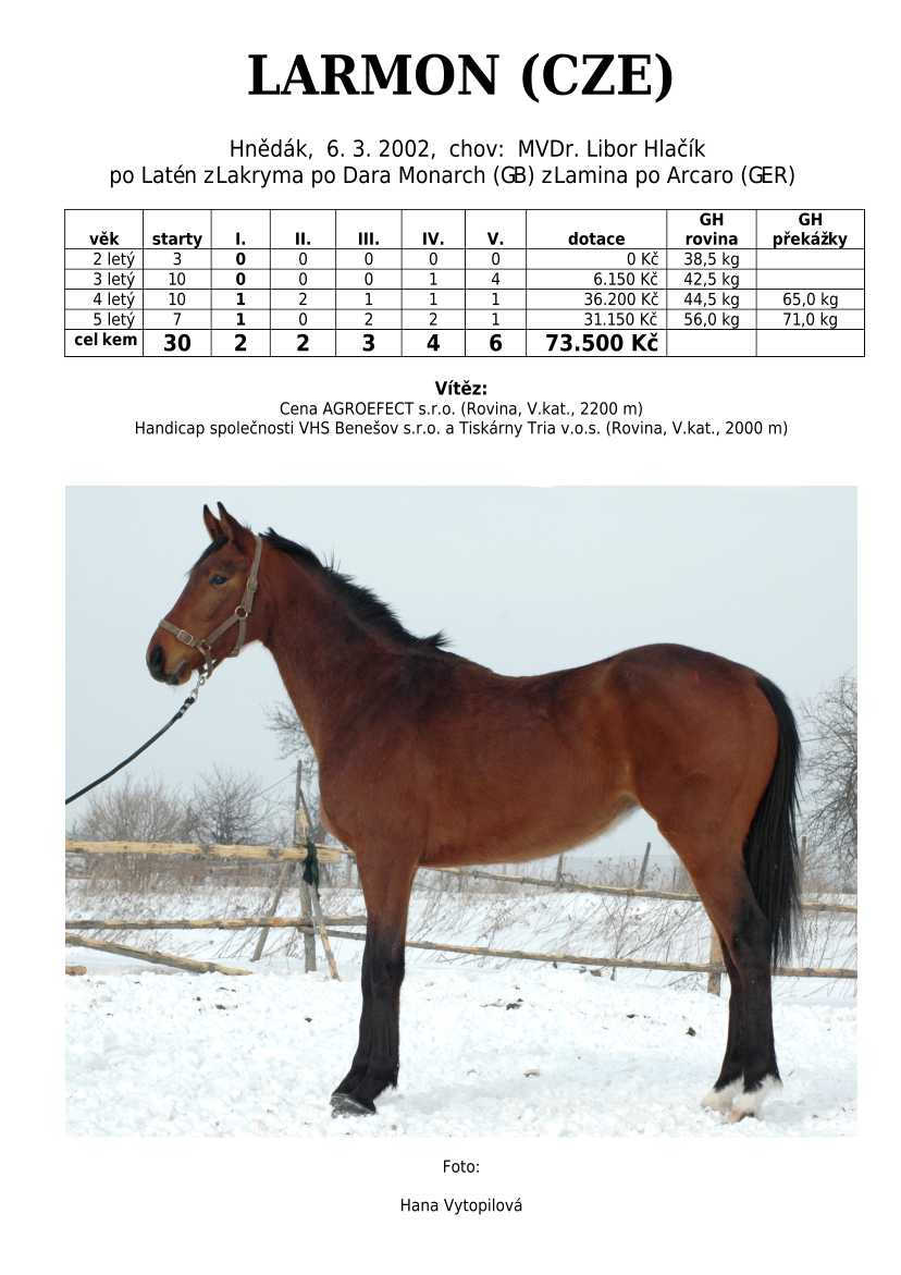 Ke konci dostihové sezóny jsem se pustila do aktualizace výsledků vítězných potomků. Každý plemeník bude mít své potomky na hlavní stránce, bez dalšího vyhledávání a klikání. Vše bude přehlednější, ale aktualizace bude z časových důvodů postupná. Přidáváni jsou potomci s ukončenou dostihovou kariérou.