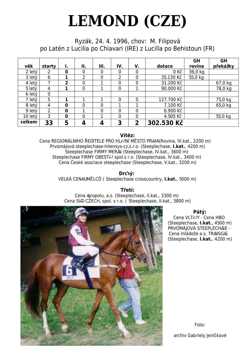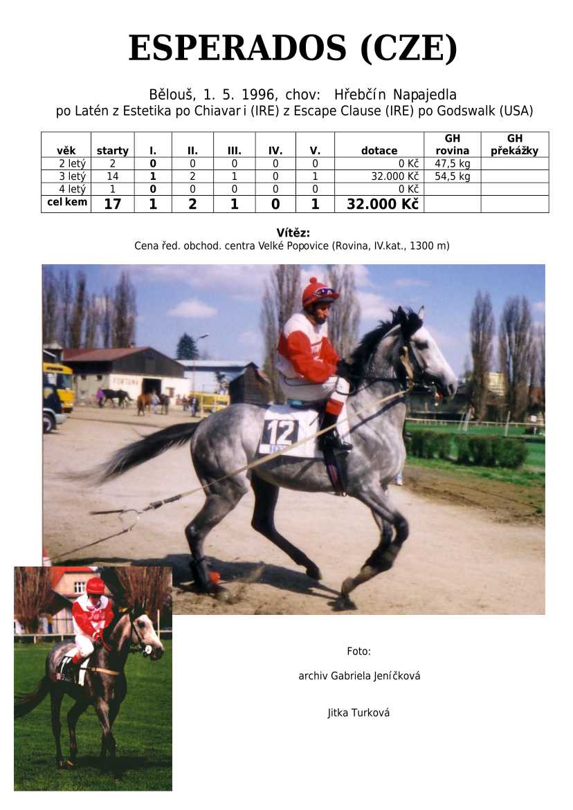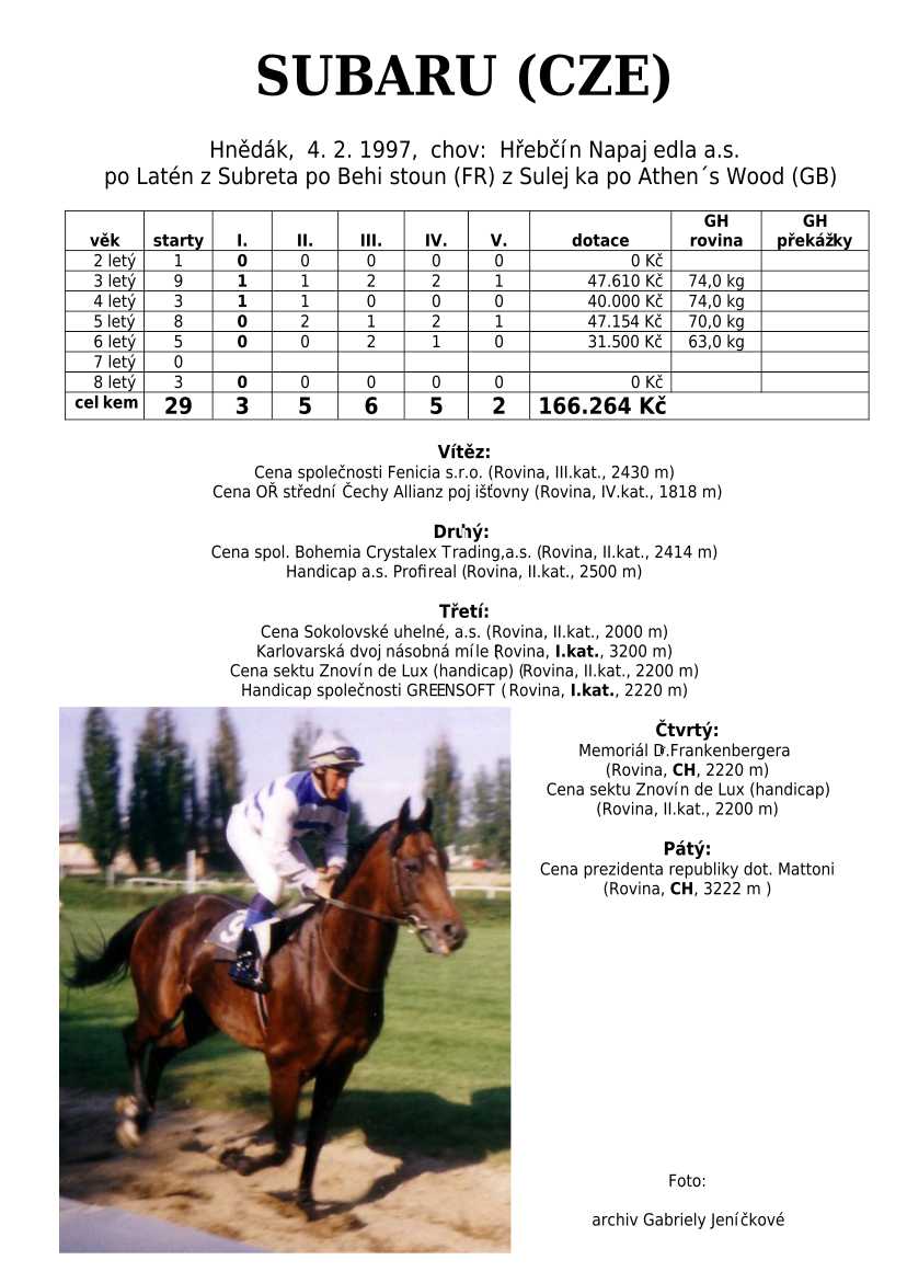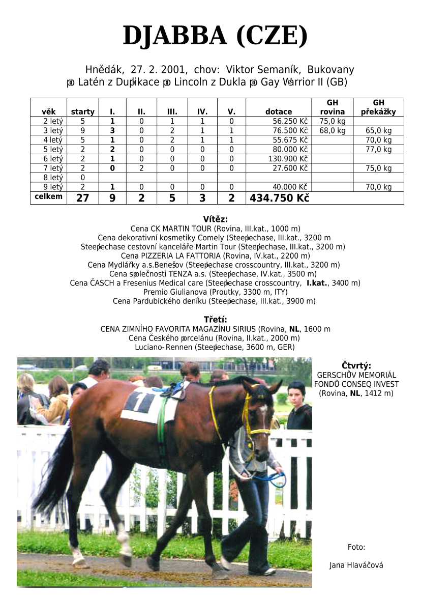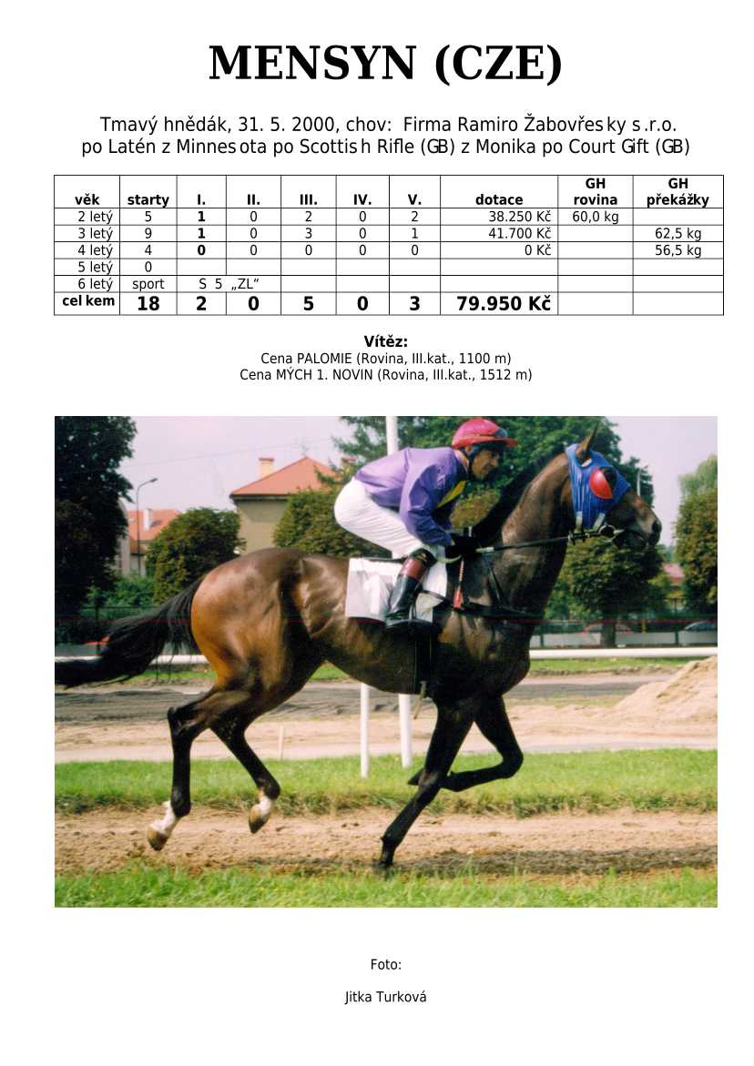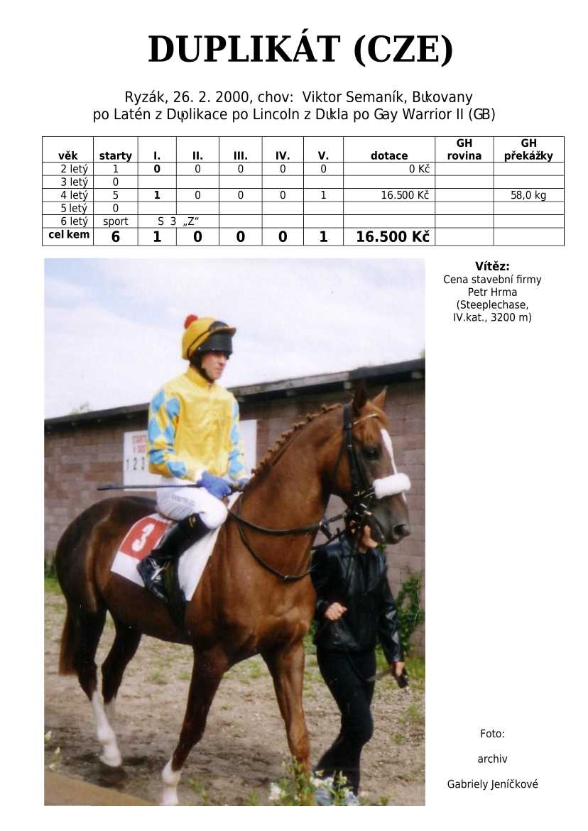 Ke konci dostihové sezóny jsem se pustila do aktualizace výsledků vítězných potomků. Každý plemeník bude mít své potomky na hlavní stránce, bez dalšího vyhledávání a klikání. Vše bude přehlednější, ale aktualizace bude z časových důvodů postupná. Přidáváni jsou potomci s ukončenou dostihovou kariérou.