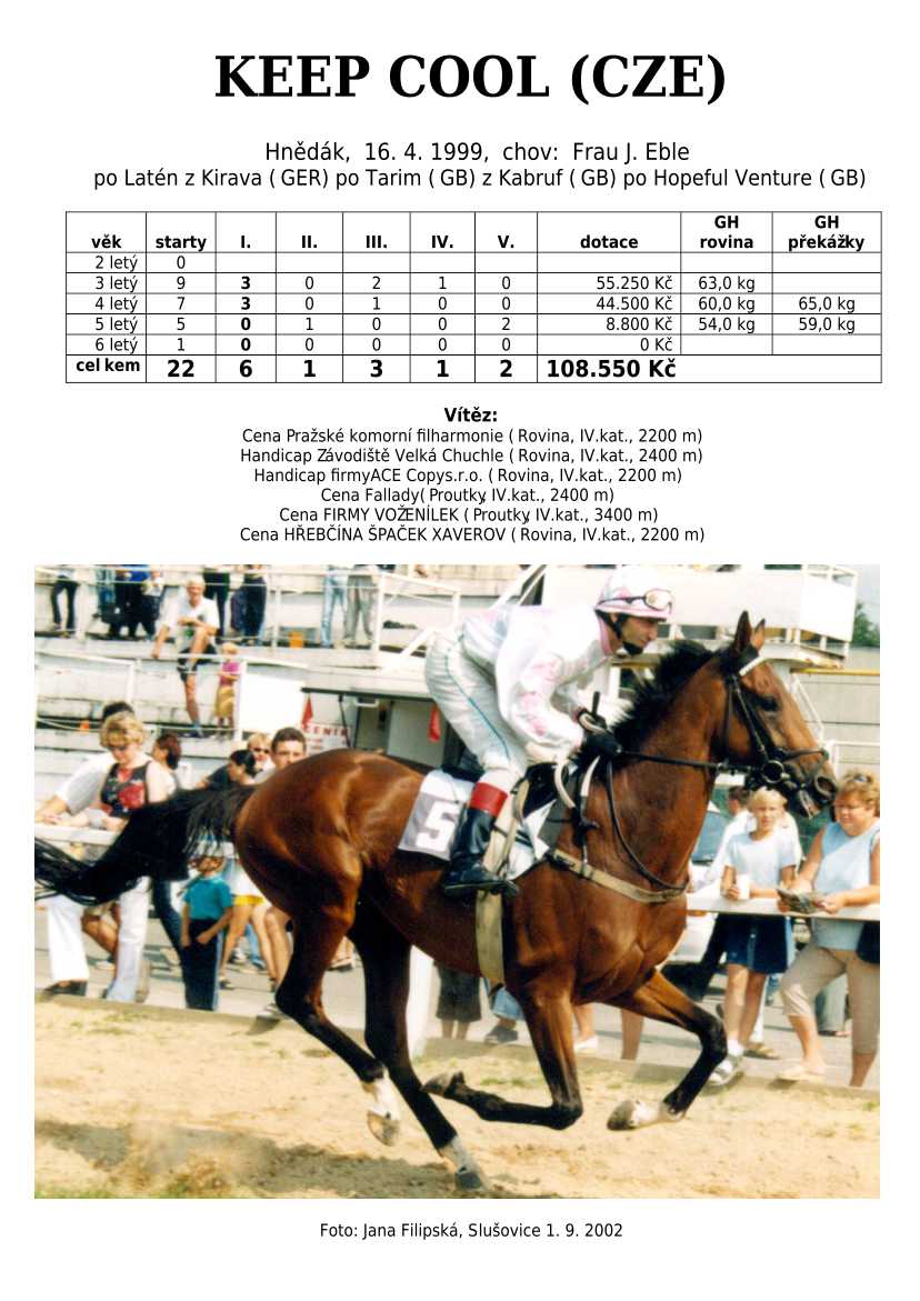Trendem se ukazuje importování hotových koní. Stáda chovných klisen se stále tenčí, i když loňské úspěchy českých odchovanců byly excelentní, ale to už je jiná kapitola...