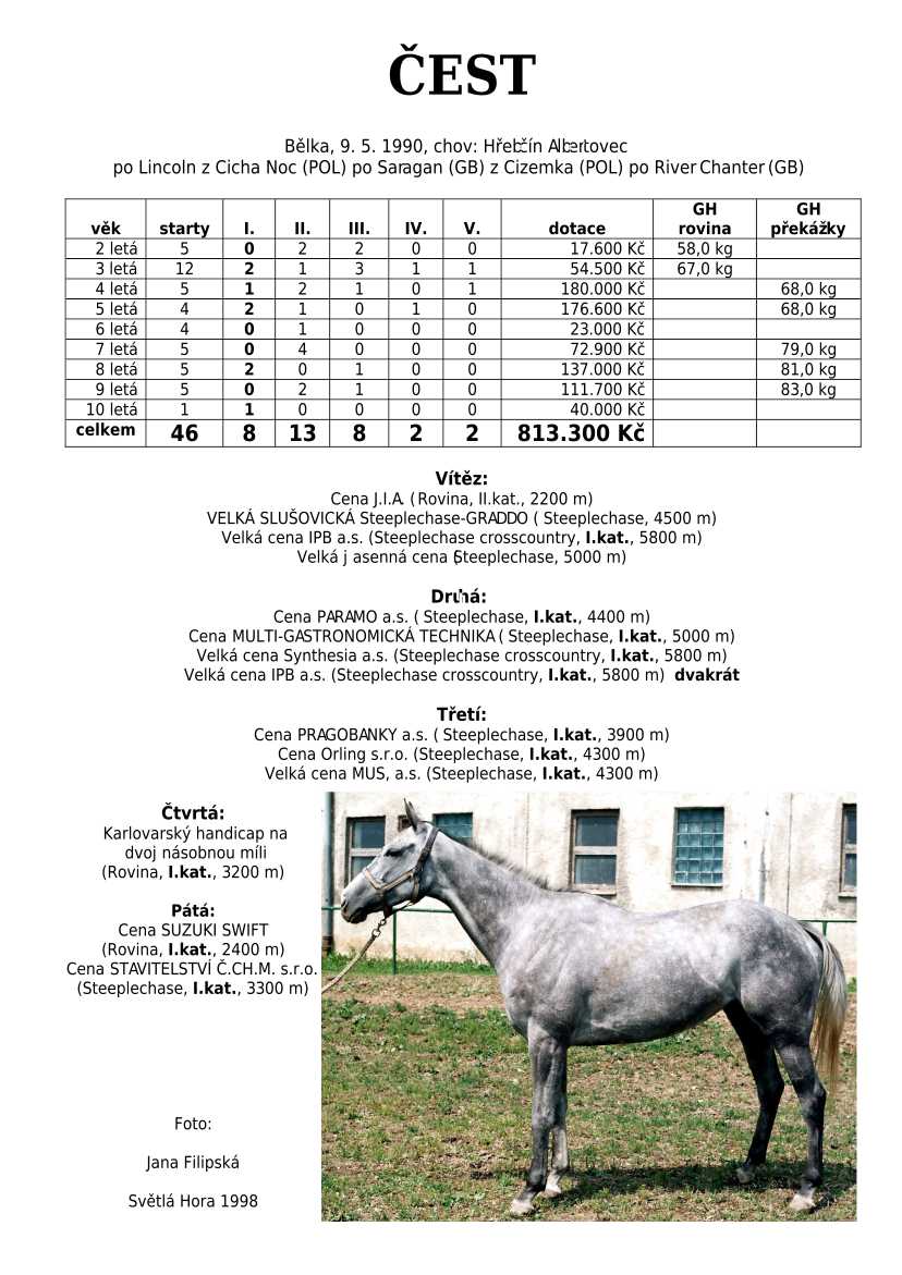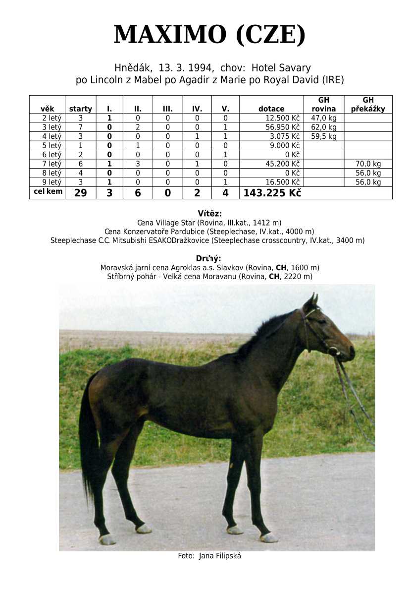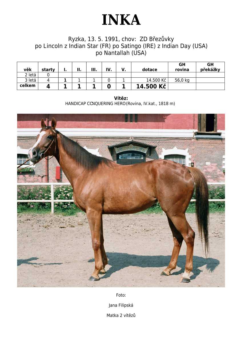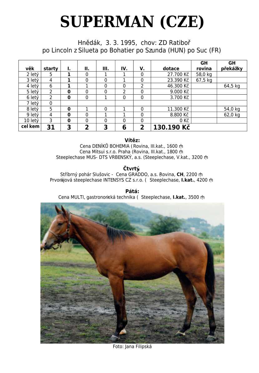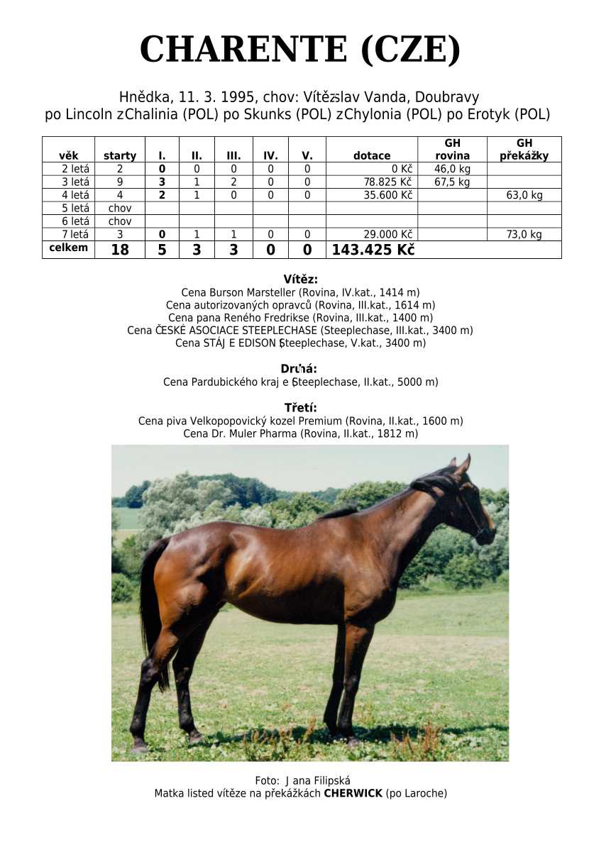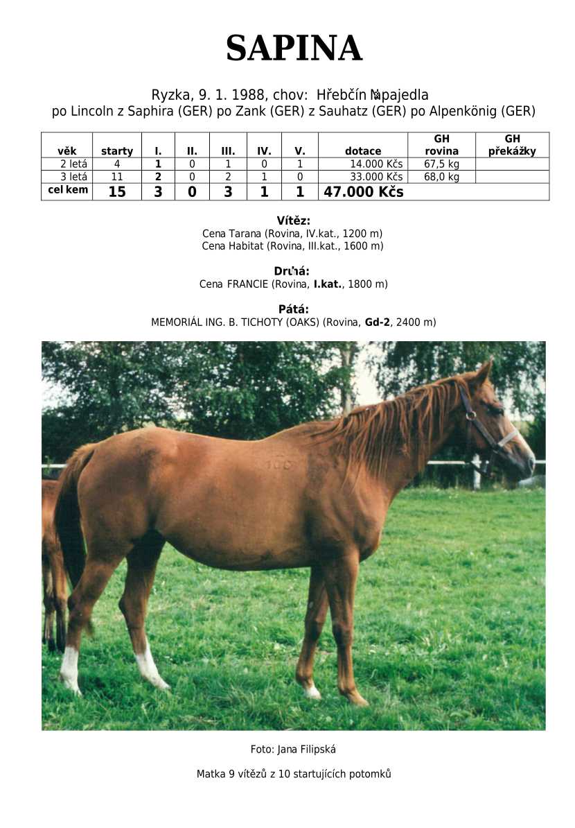 Ke konci dostihové sezóny jsem se pustila do aktualizace výsledků vítězných potomků. Každý plemeník bude mít své potomky na hlavní stránce, bez dalšího vyhledávání a klikání. Vše bude přehlednější, ale aktualizace bude z časových důvodů postupná. Přidáváni jsou potomci s ukončenou dostihovou kariérou.