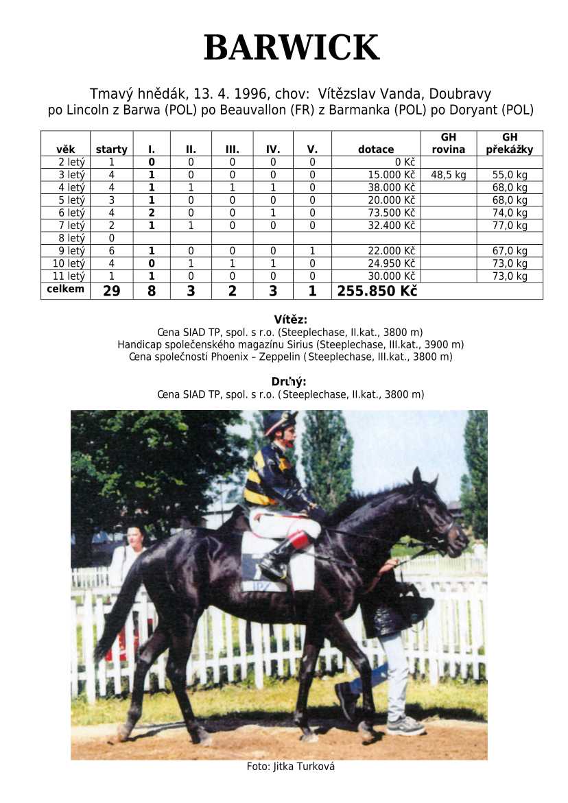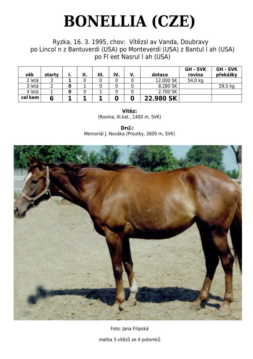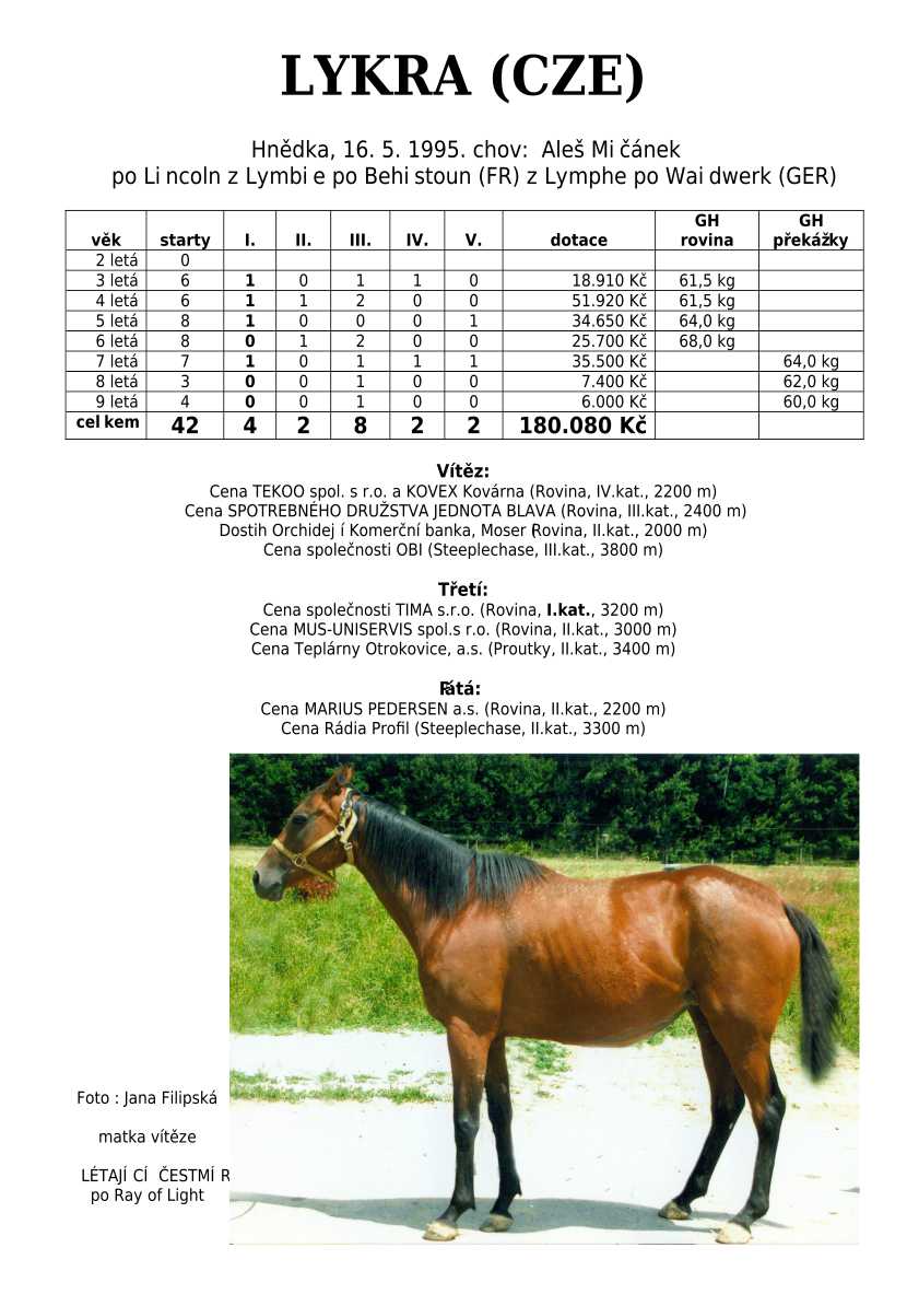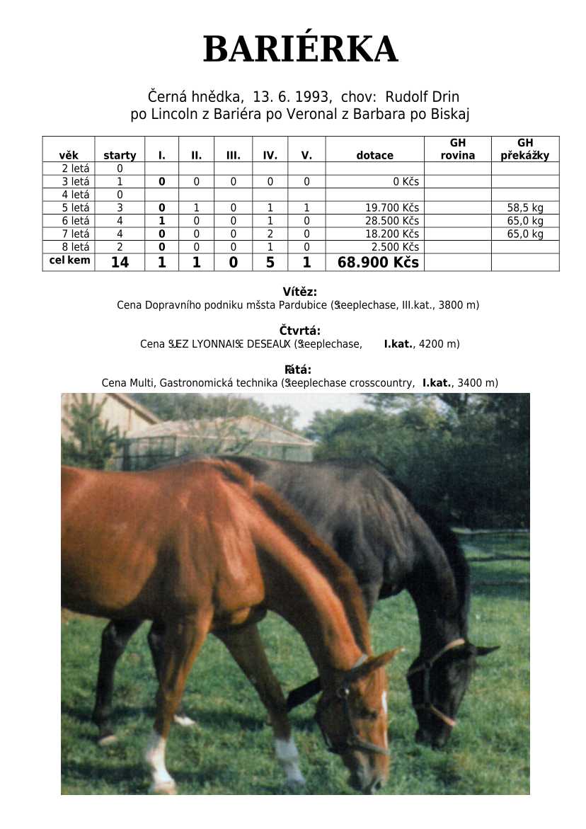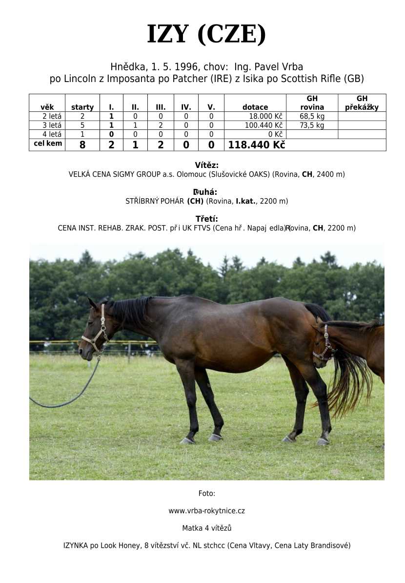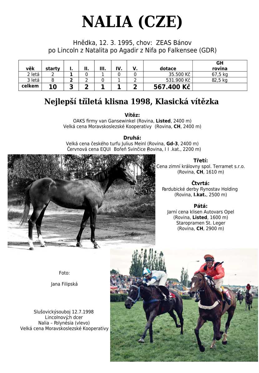 Ke konci dostihové sezóny jsem se pustila do aktualizace výsledků vítězných potomků. Každý plemeník bude mít své potomky na hlavní stránce, bez dalšího vyhledávání a klikání. Vše bude přehlednější, ale aktualizace bude z časových důvodů postupná. Přidáváni jsou potomci s ukončenou dostihovou kariérou.