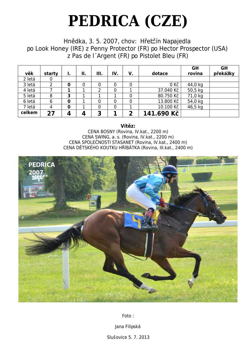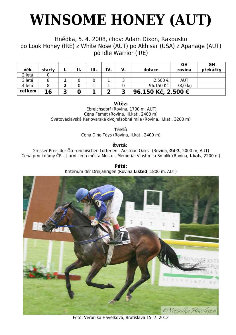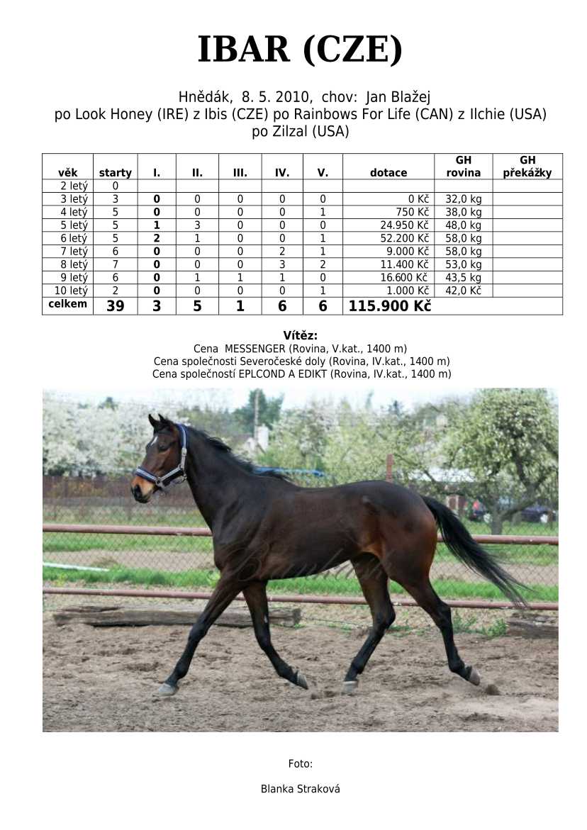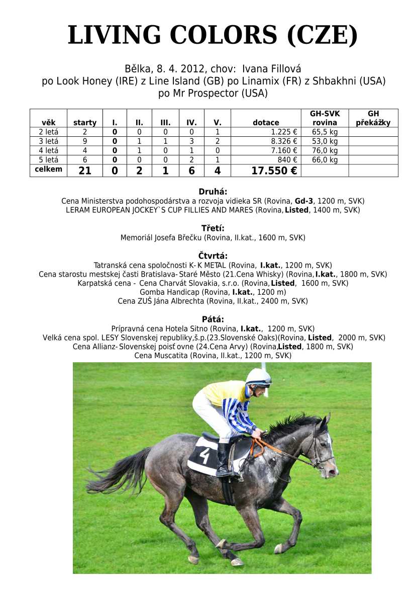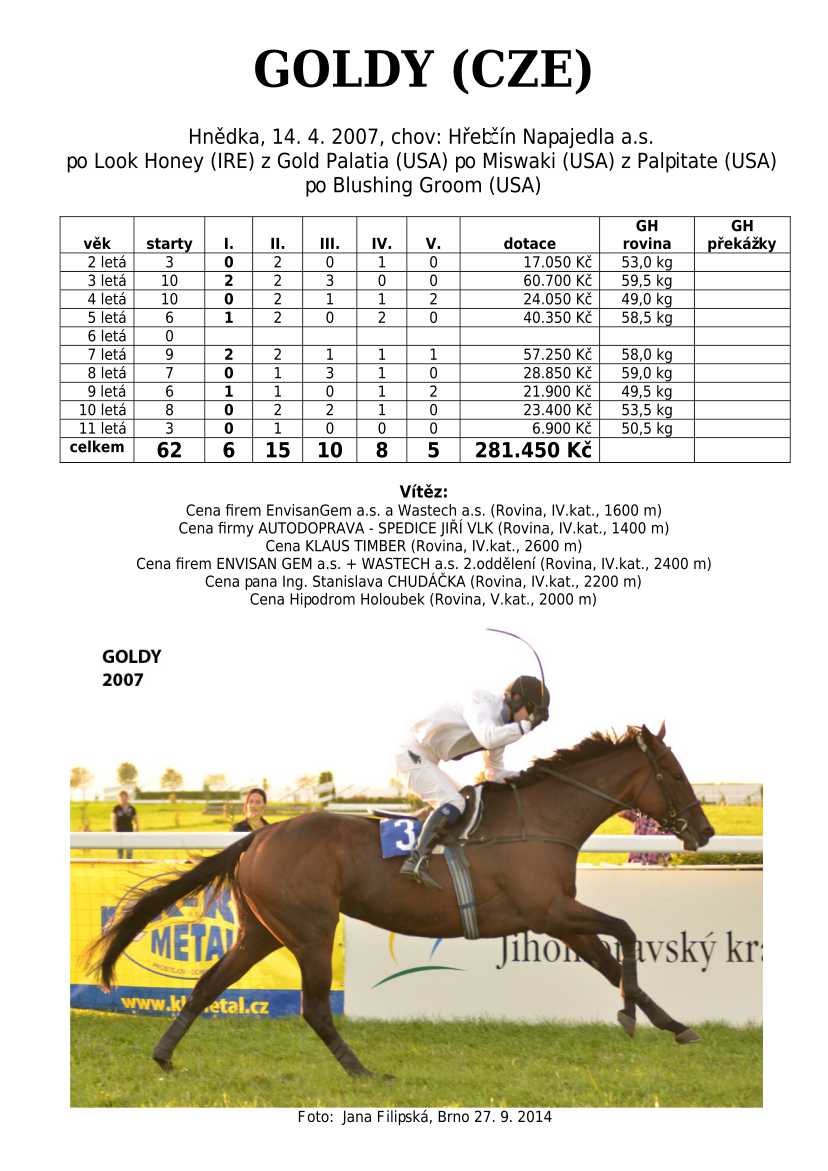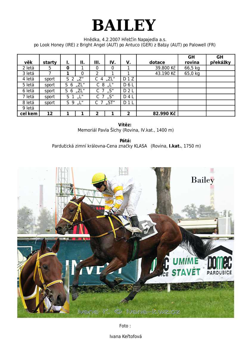 Ke konci dostihové sezóny jsem se pustila do aktualizace výsledků vítězných potomků. Každý plemeník bude mít své potomky na hlavní stránce, bez dalšího vyhledávání a klikání. Vše bude přehlednější, ale aktualizace bude z časových důvodů postupná. Přidáváni jsou potomci s ukončenou dostihovou kariérou.