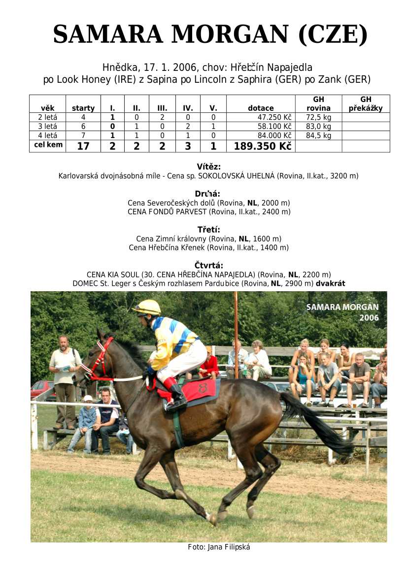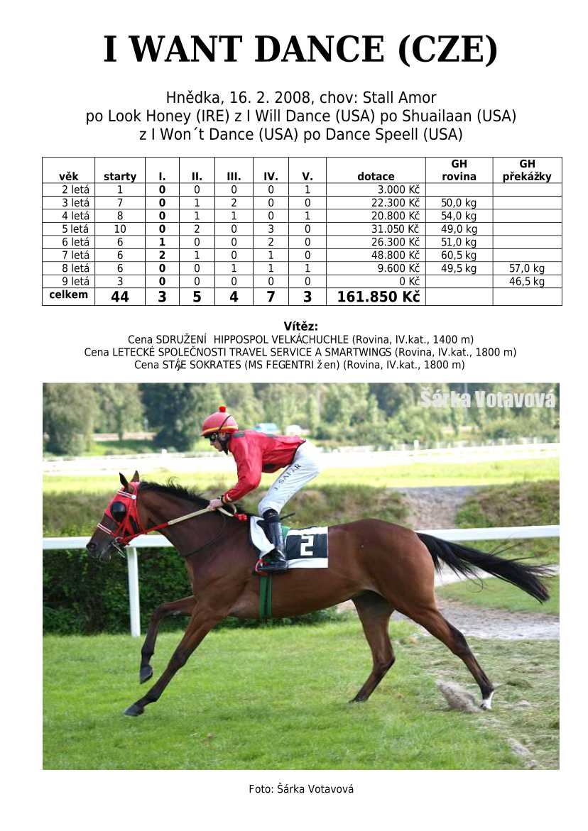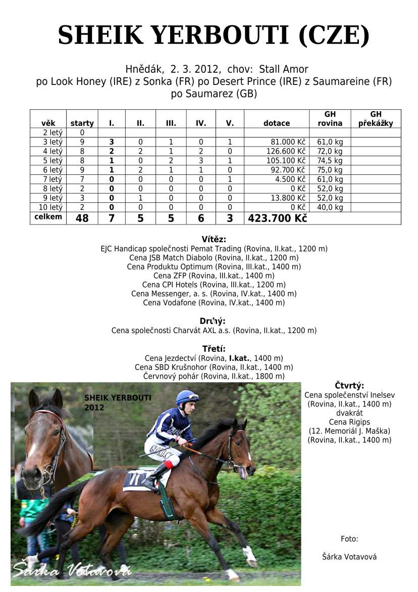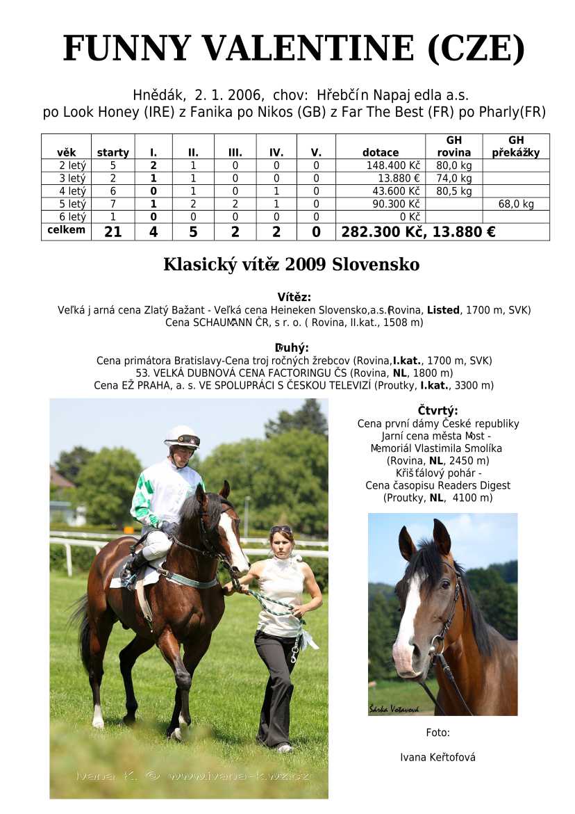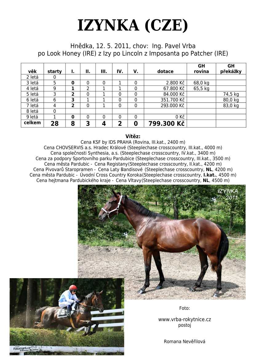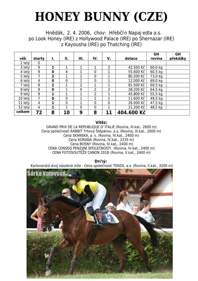Ke konci dostihové sezóny jsem se pustila do aktualizace výsledků vítězných potomků. Každý plemeník bude mít své potomky na hlavní stránce, bez dalšího vyhledávání a klikání. Vše bude přehlednější, ale aktualizace bude z časových důvodů postupná. Přidáváni jsou potomci s ukončenou dostihovou kariérou.