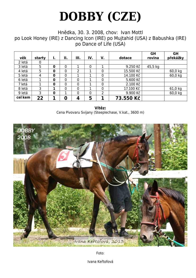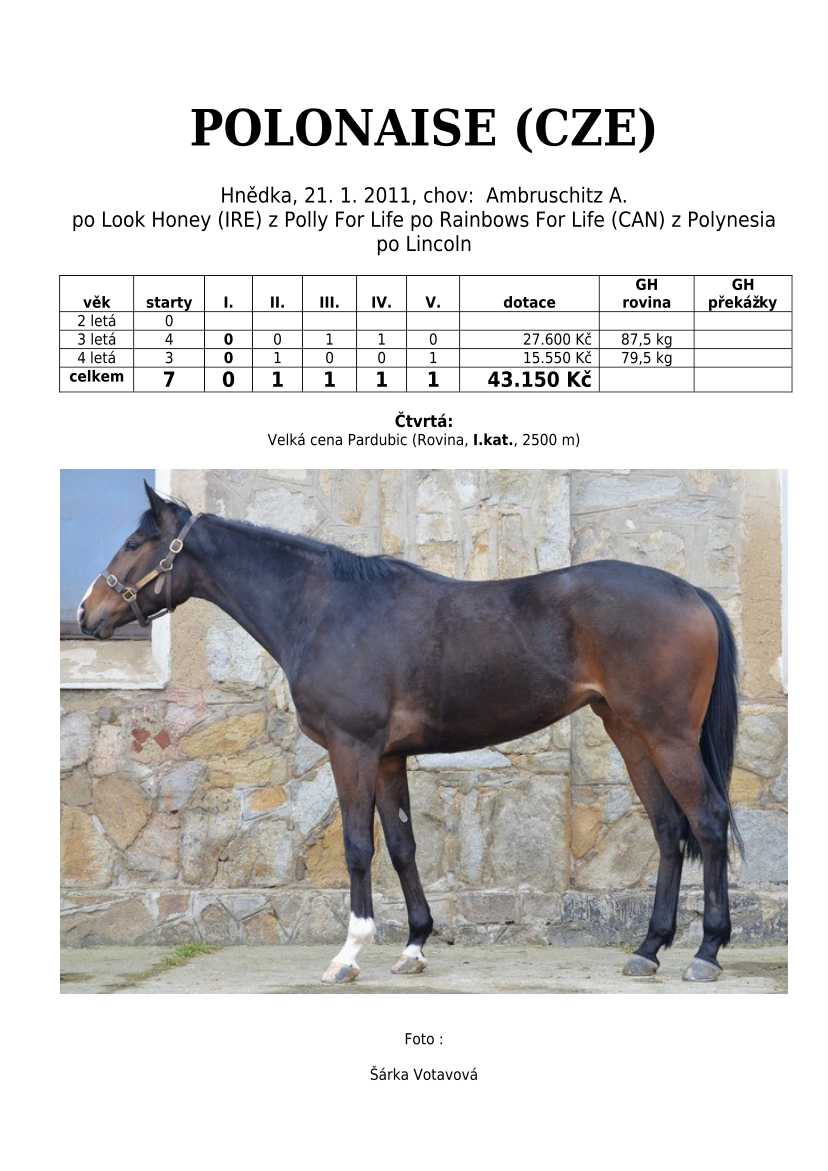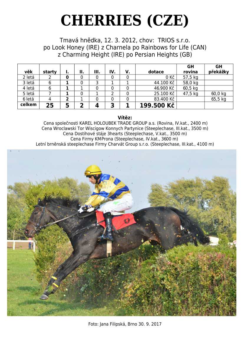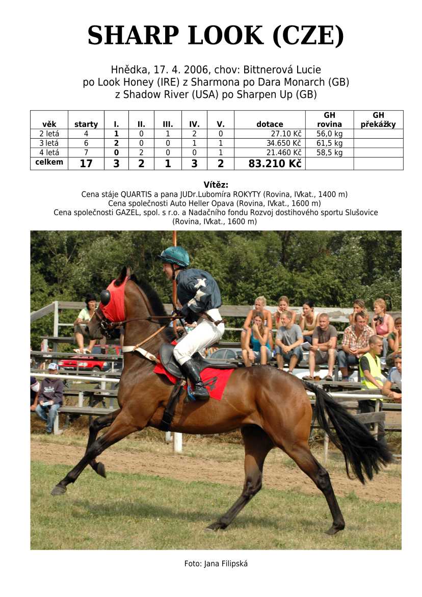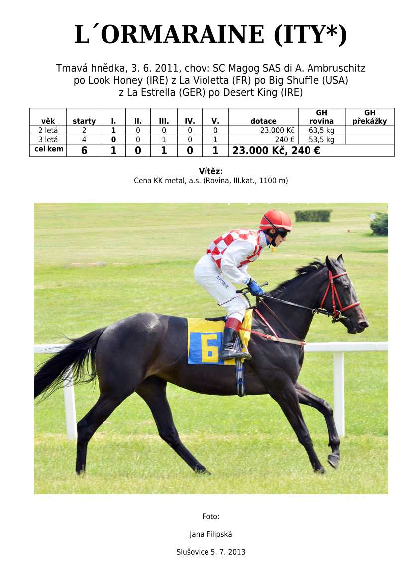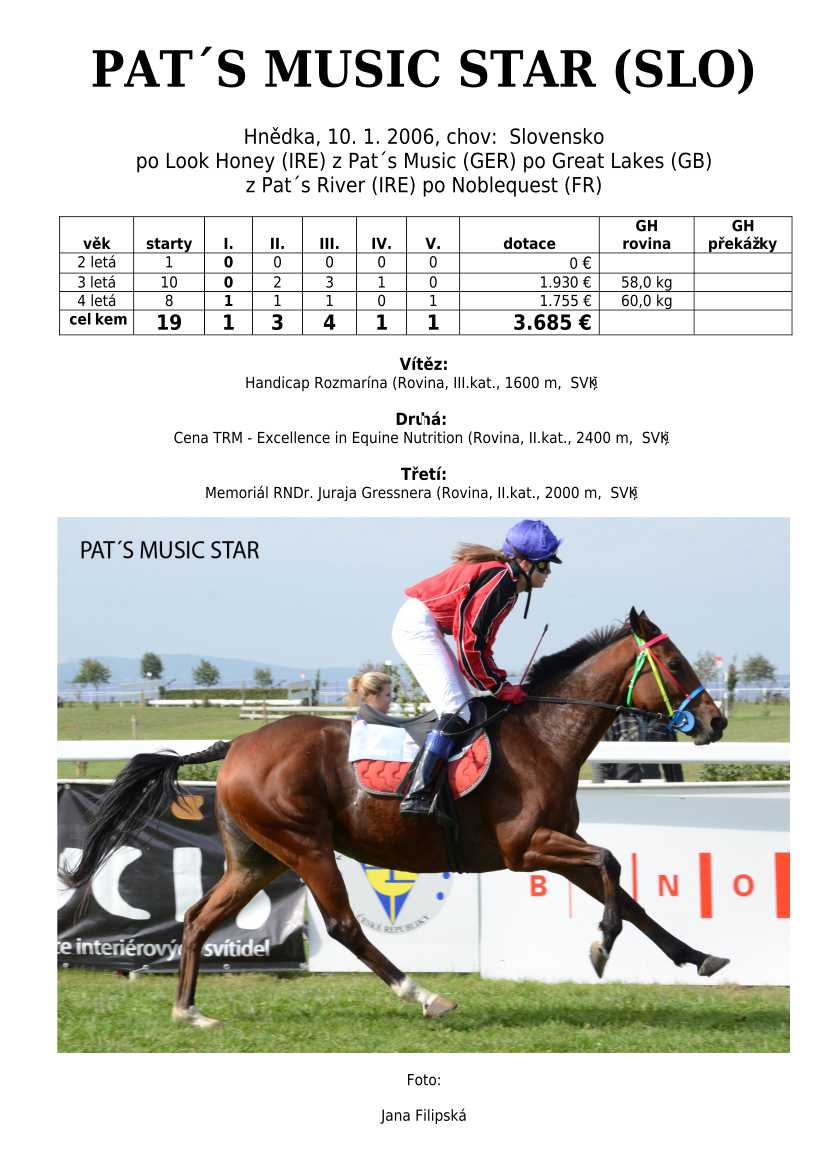 Ke konci dostihové sezóny jsem se pustila do aktualizace výsledků vítězných potomků. Každý plemeník bude mít své potomky na hlavní stránce, bez dalšího vyhledávání a klikání. Vše bude přehlednější, ale aktualizace bude z časových důvodů postupná. Přidáváni jsou potomci s ukončenou dostihovou kariérou.