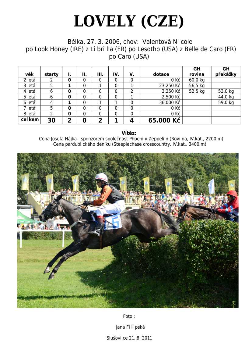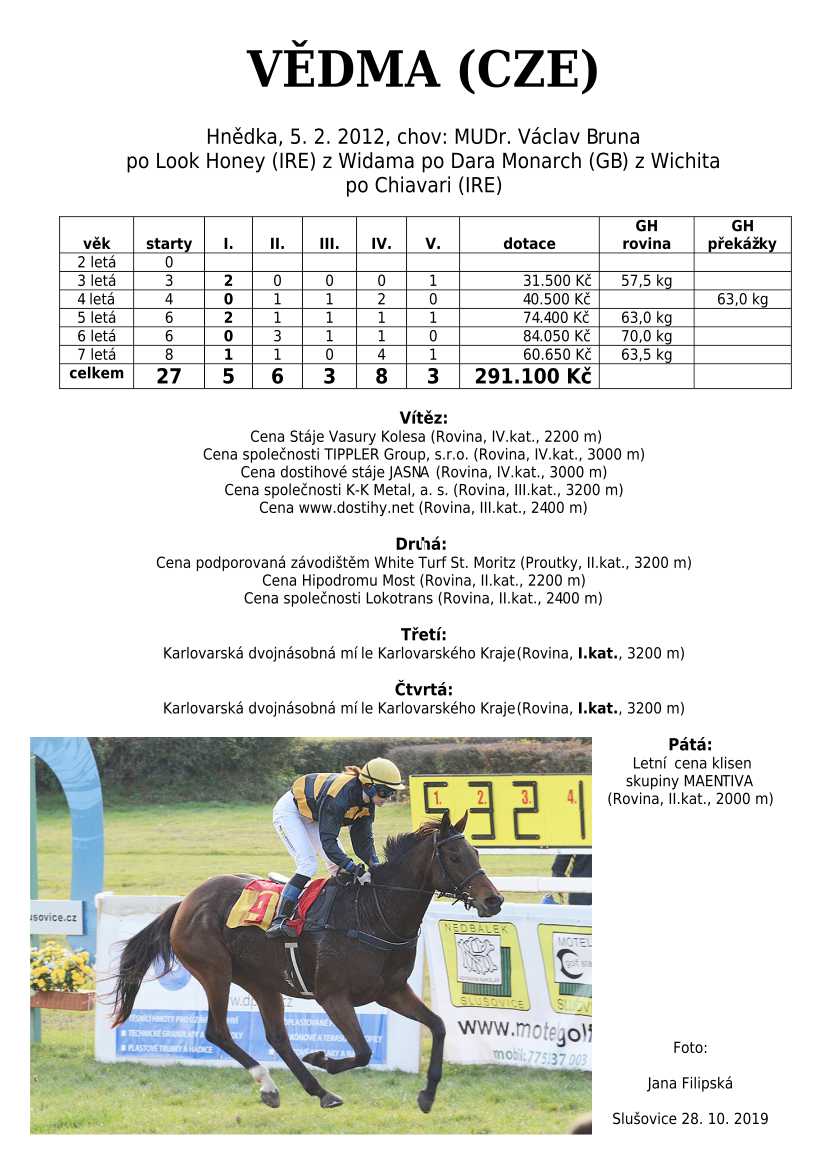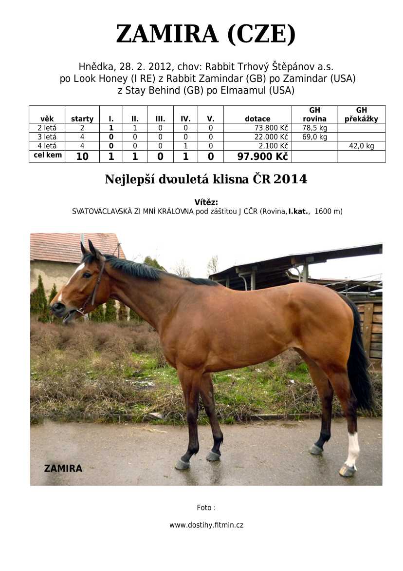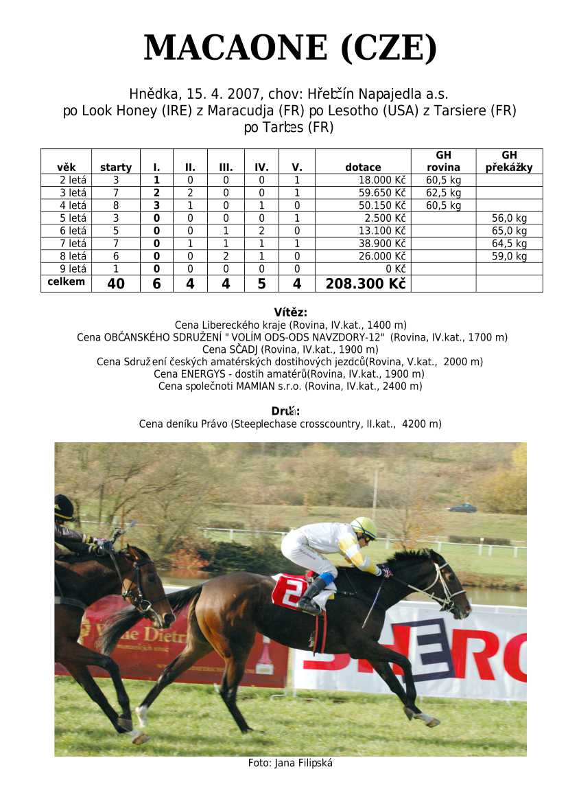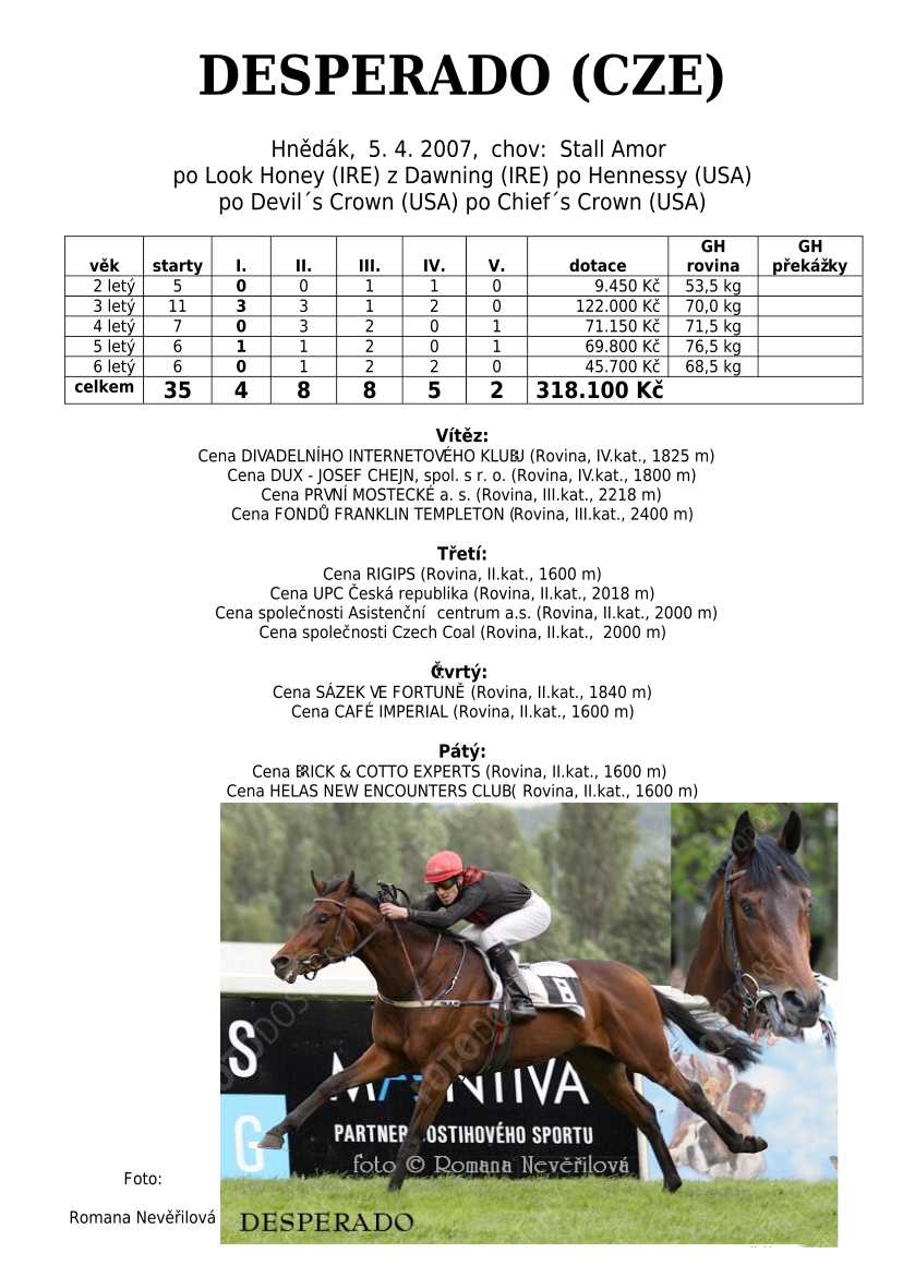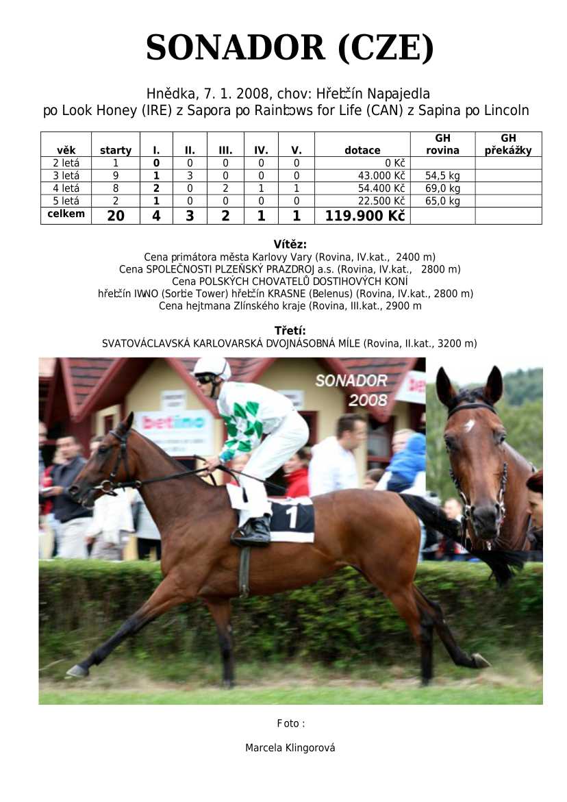 Ke konci dostihové sezóny jsem se pustila do aktualizace výsledků vítězných potomků. Každý plemeník bude mít své potomky na hlavní stránce, bez dalšího vyhledávání a klikání. Vše bude přehlednější, ale aktualizace bude z časových důvodů postupná. Přidáváni jsou potomci s ukončenou dostihovou kariérou.