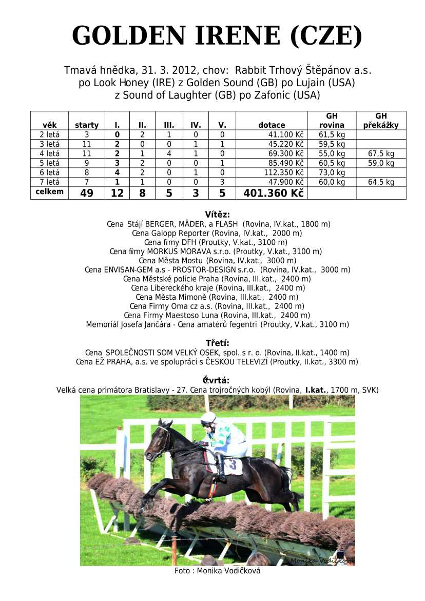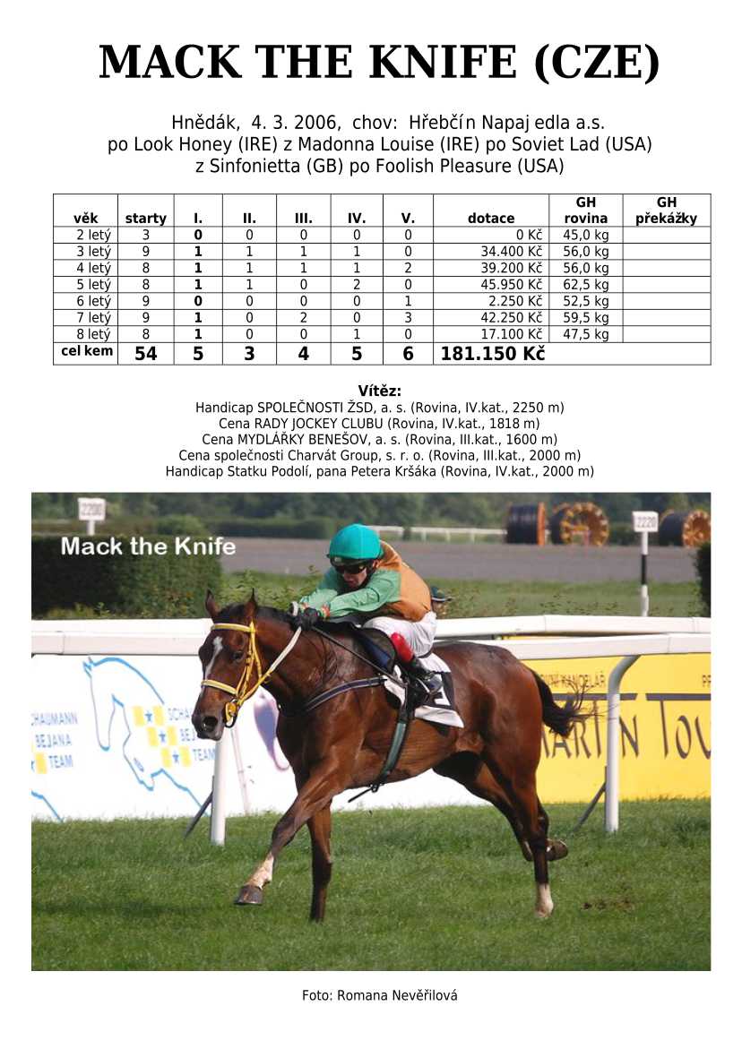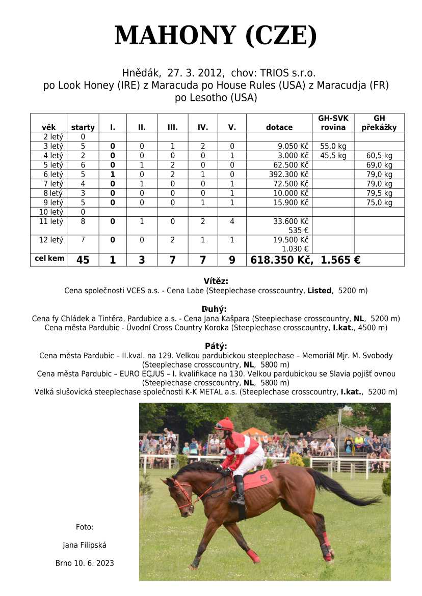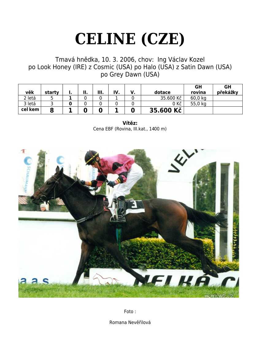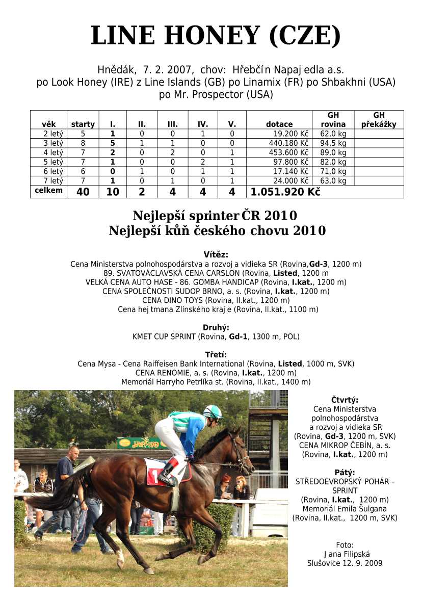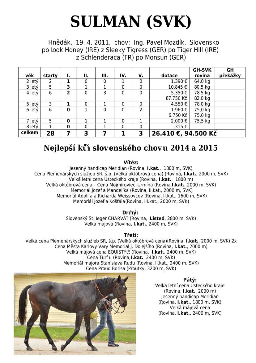 Ke konci dostihové sezóny jsem se pustila do aktualizace výsledků vítězných potomků. Každý plemeník bude mít své potomky na hlavní stránce, bez dalšího vyhledávání a klikání. Vše bude přehlednější, ale aktualizace bude z časových důvodů postupná. Přidáváni jsou potomci s ukončenou dostihovou kariérou.