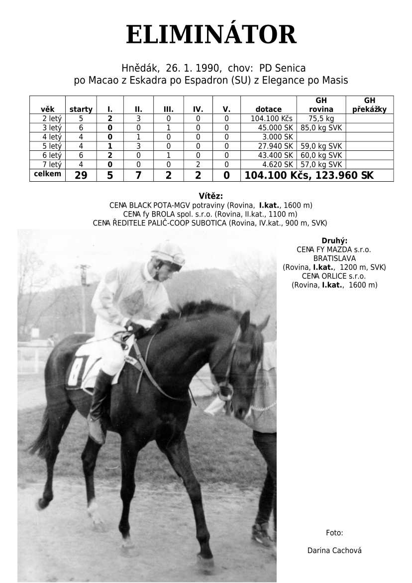Trendem se ukazuje importování hotových koní. Stáda chovných klisen se stále tenčí, i když loňské úspěchy českých odchovanců byly excelentní, ale to už je jiná kapitola...
