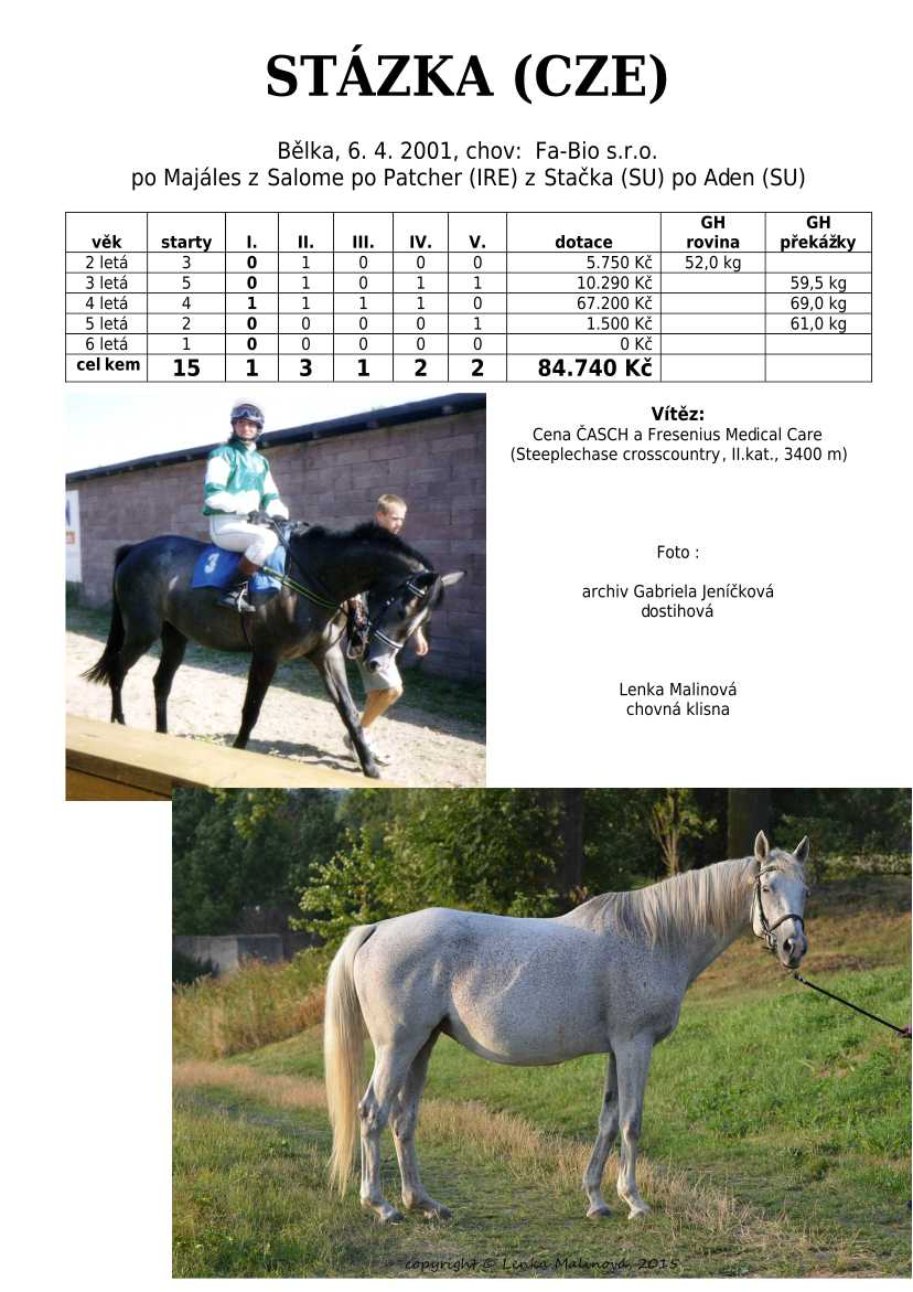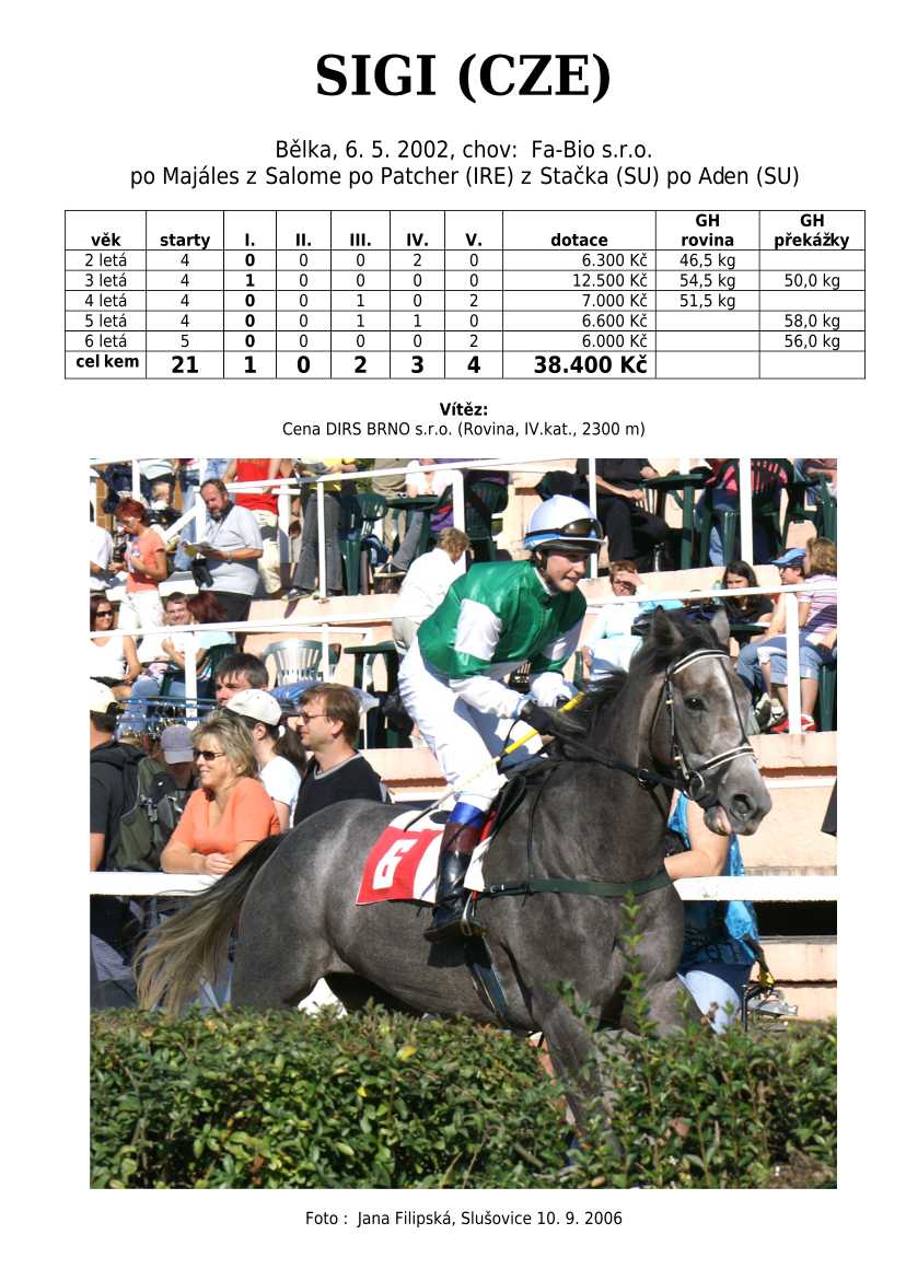 Ke konci dostihové sezóny jsem se pustila do aktualizace výsledků vítězných potomků. Každý plemeník bude mít své potomky na hlavní stránce, bez dalšího vyhledávání a klikání. Vše bude přehlednější, ale aktualizace bude z časových důvodů postupná. Přidáváni jsou potomci s ukončenou dostihovou kariérou.