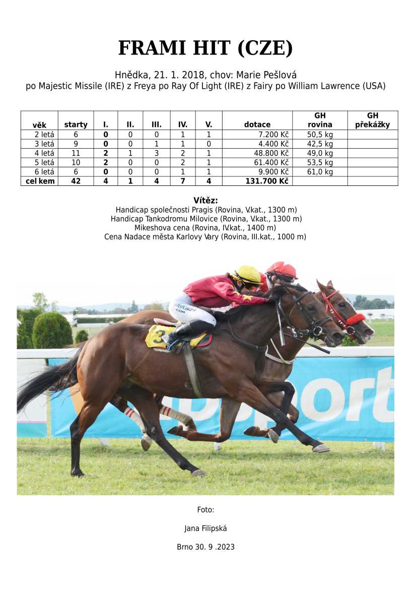 Slovenský chov přišel v těchto dnech o jednoho z nejoblíbenějších plemeníků. Ve věku 15 let uhynul na mozkovou mrtvici plemeník MOVE YOUR VISION (Galileo). Šampion plemeník otců 2 letých 2019 Slovensko, šampion plemeník celkový 2020 Slovensko a šampion plemeník celkový 2021 Maďarsko stihnul letos připustit ještě jednu klisnu. Sama jsem zvědavá, jestli mu zbytek dostihového potomstva zajistí jěště další titul.