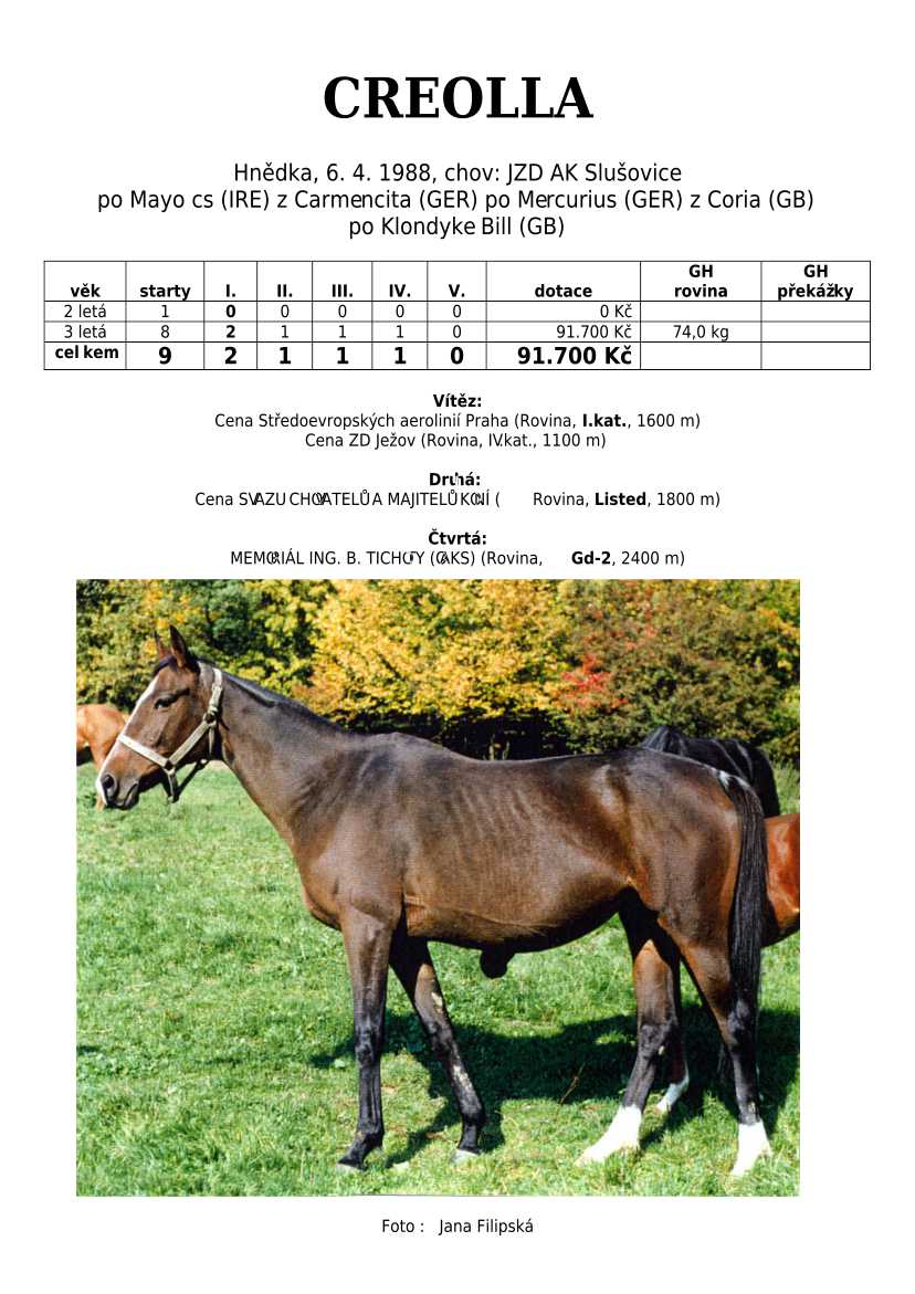 Otec CREOLLA, AMULET (plemeník ČT), BULLA, ČUKOMA, FELVER