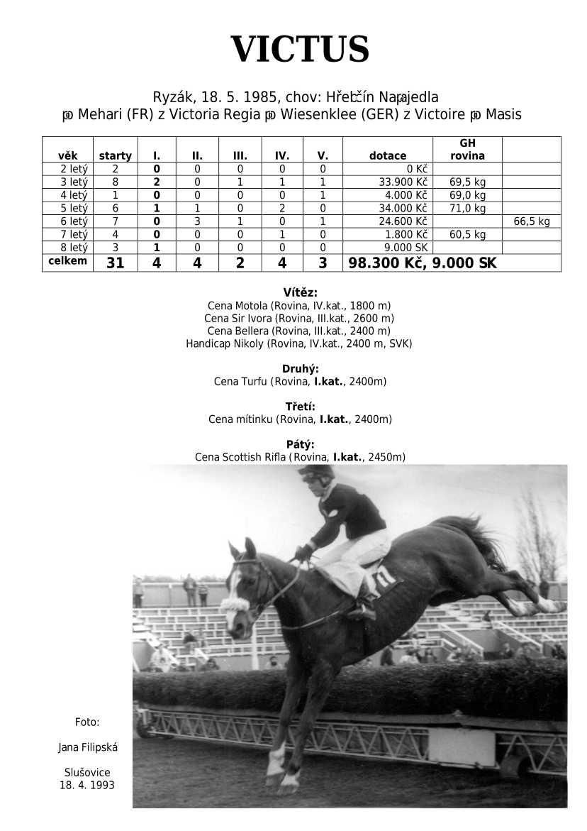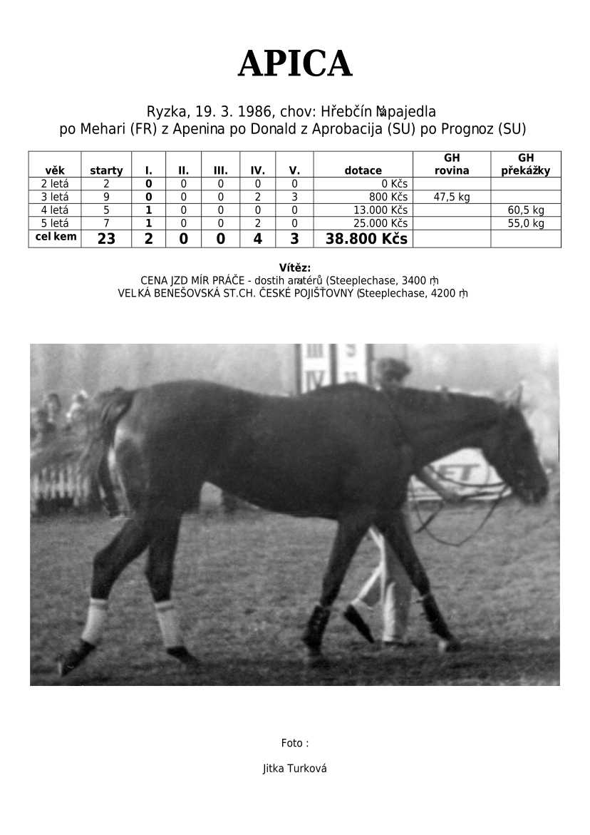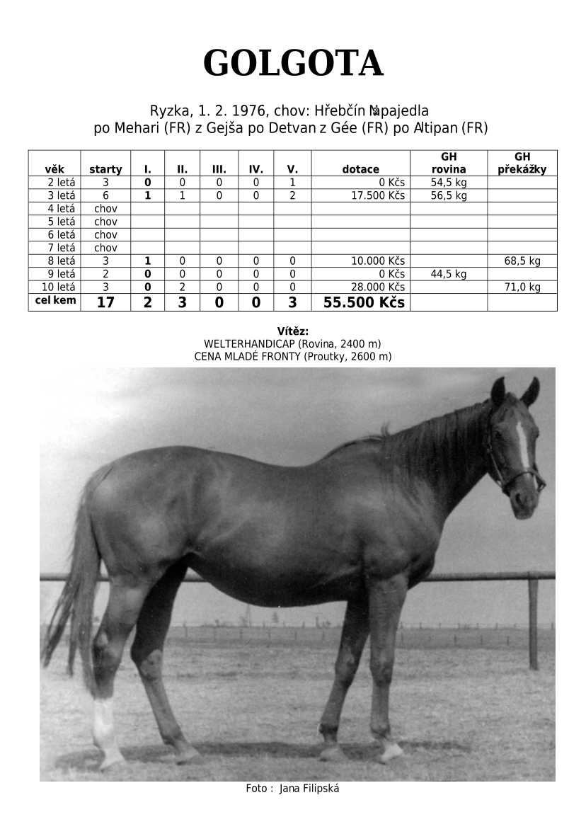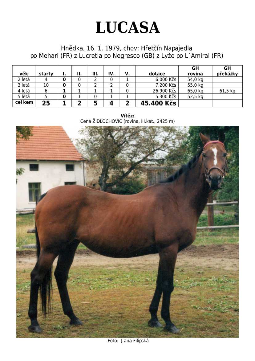 Ke konci dostihové sezóny jsem se pustila do aktualizace výsledků vítězných potomků. Každý plemeník bude mít své potomky na hlavní stránce, bez dalšího vyhledávání a klikání. Vše bude přehlednější, ale aktualizace bude z časových důvodů postupná. Přidáváni jsou potomci s ukončenou dostihovou kariérou.