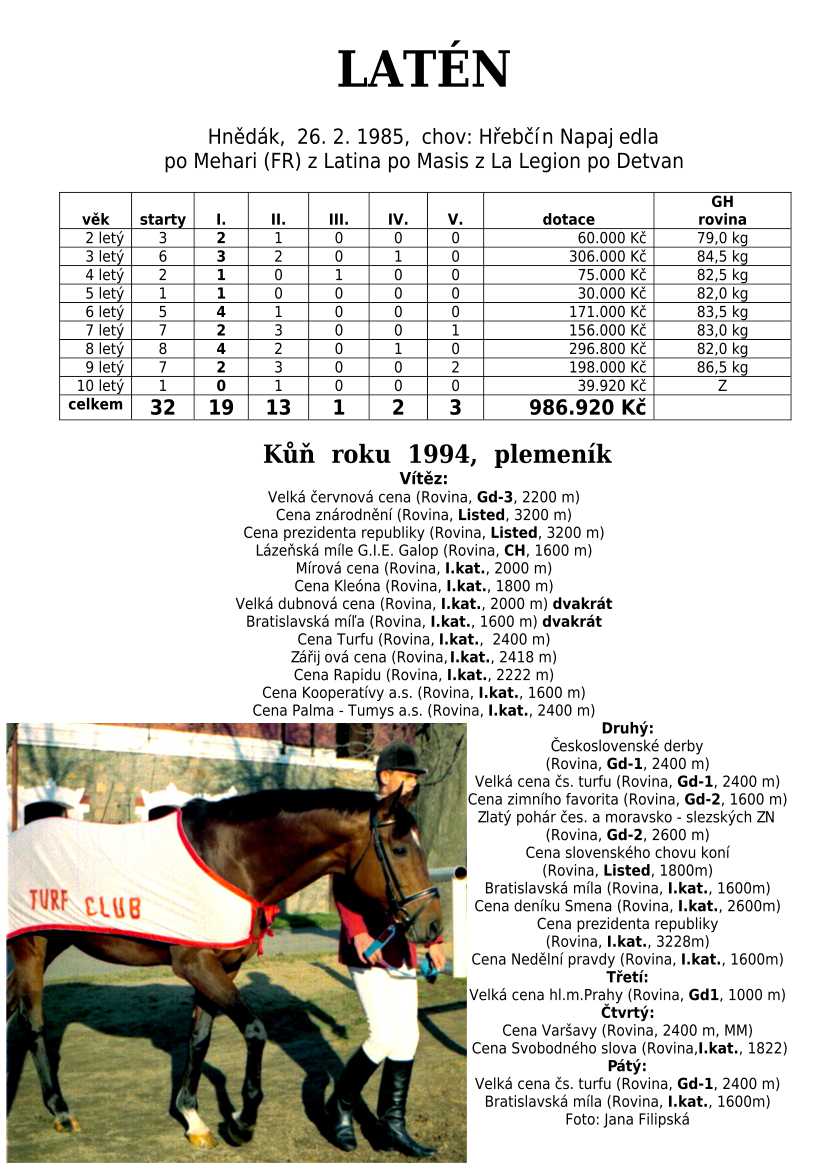 Otec plemeníků LATÉN, AGADIR, DARGIN (POL), DERSLAW (POL), JARABUB (POL), JUDEX (POL),