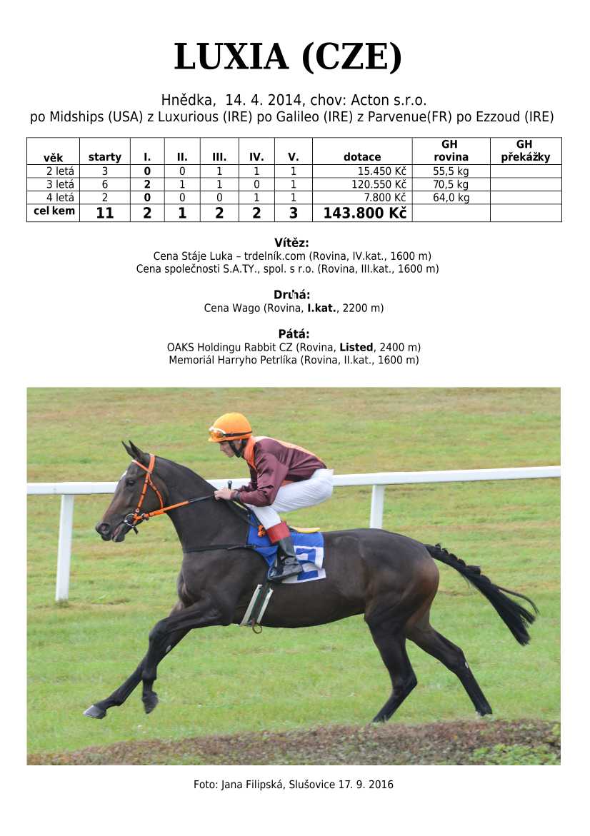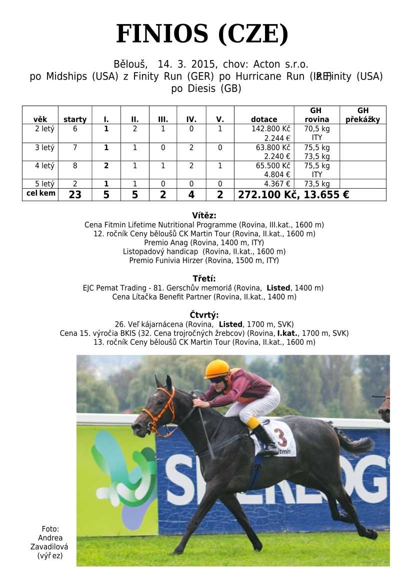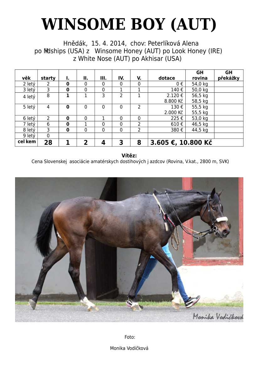 Ke konci dostihové sezóny jsem se pustila do aktualizace výsledků vítězných potomků. Každý plemeník bude mít své potomky na hlavní stránce, bez dalšího vyhledávání a klikání. Vše bude přehlednější, ale aktualizace bude z časových důvodů postupná. Přidáváni jsou potomci s ukončenou dostihovou kariérou.
