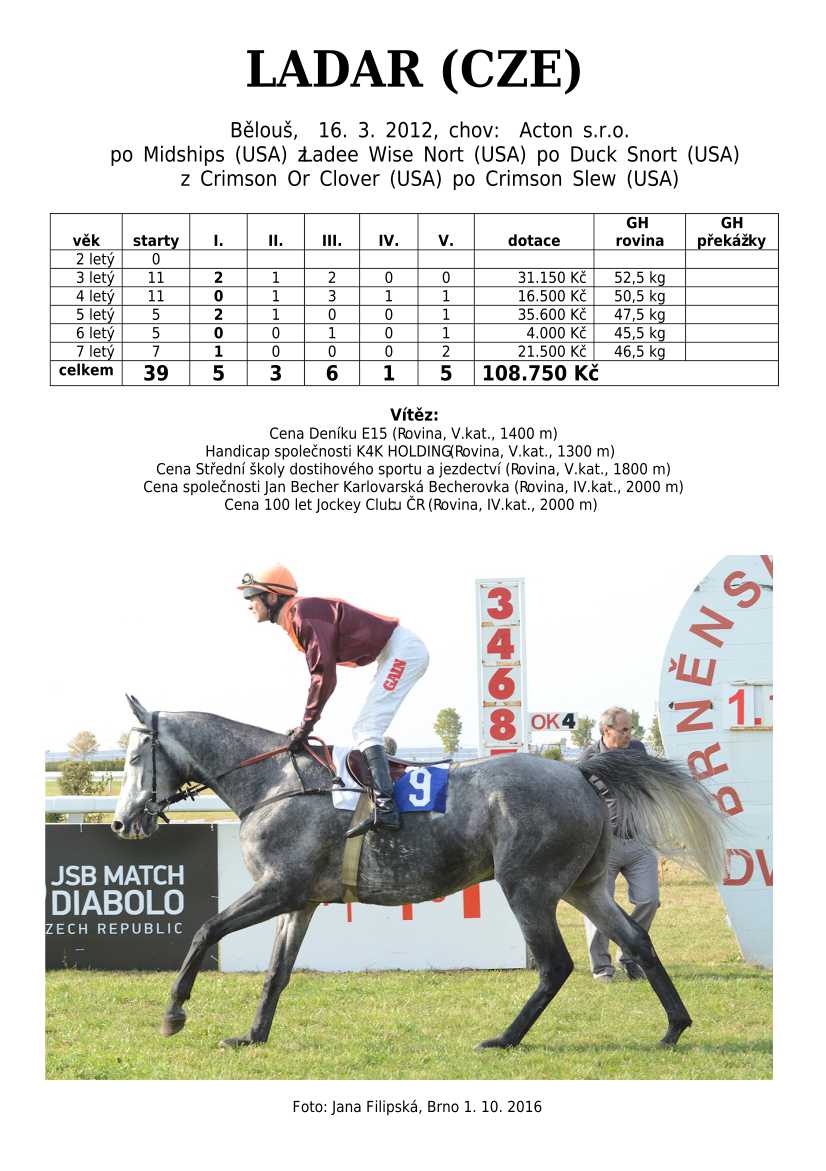 Takový miláček, jako je hrdina Velké pardubické steeplechase, SEXY LORD se u svého otce EGERTON objeví, až bude definitivně v dostihovém důchodu. Za sebe doufám, že se zcela uzdraví ze zranění a opět budeme moci bez dechu sledovat, jak se pere o vítězství. Nejen Sexy Lordovi, ale hlavně celému týmu kolem trénérky Růžičkové držím palce.
