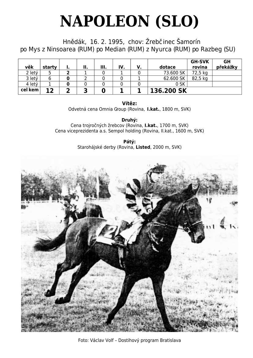 OPASAN (French Navy), trojnásobný kůň roku Slovenska, derby vítěz, listed vítěz ve Francii, držitel dalších osmi titulů.