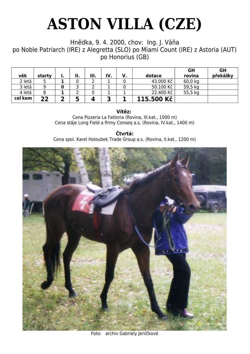 V Derby je také zastoupená jedinečná hřebčí linie českého chovu po 4 generace