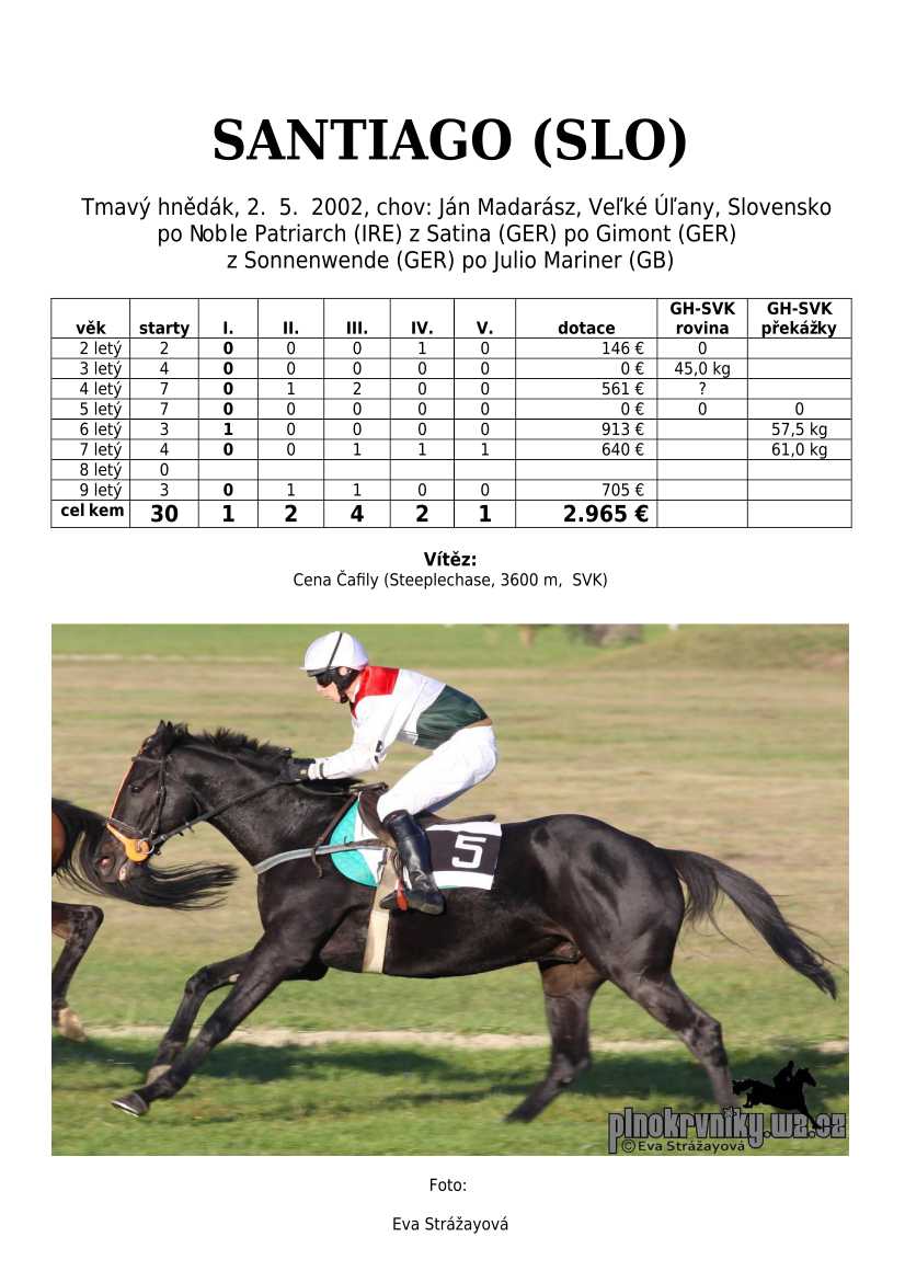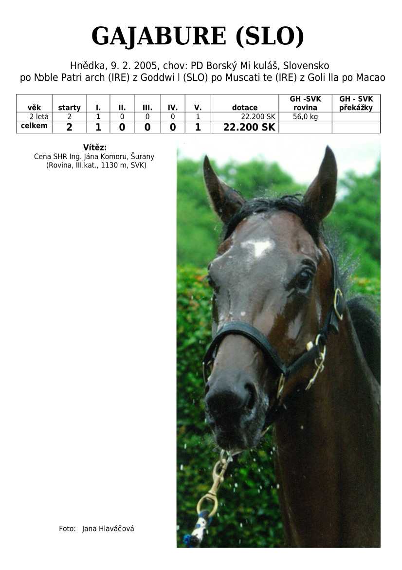 GASPARINI (Eagle Top) se nedostal na start Českého Derby, ale plně svoji kvalitu ukázal v Derby slovenském. Jeho chovatel Petr Karlík může být právem pyšný na svůj chovatelský počin. K vítězství gratuluji a přeji úspěchy v dalších startech.