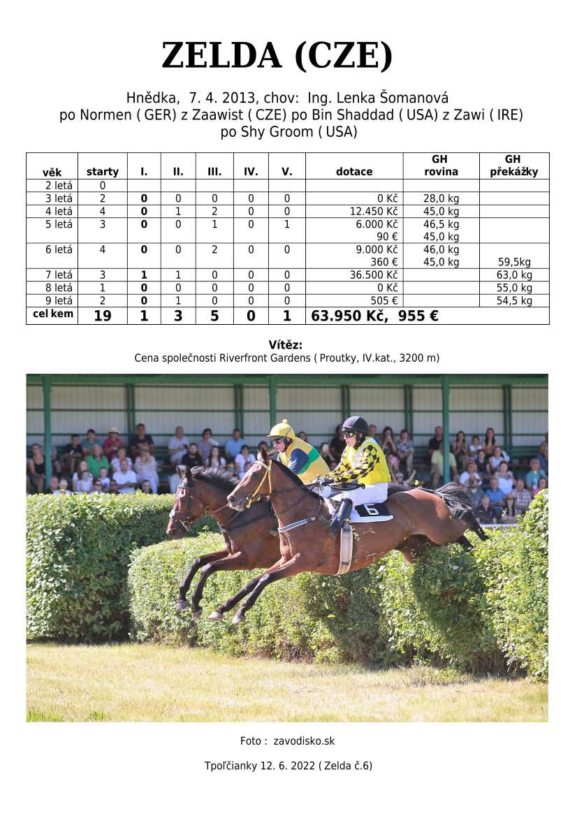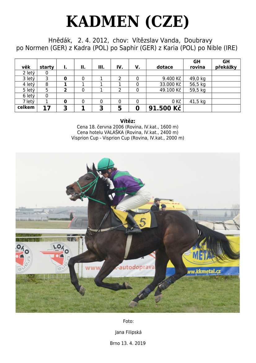 Ke konci dostihové sezóny jsem se pustila do aktualizace výsledků vítězných potomků. Každý plemeník bude mít své potomky na hlavní stránce, bez dalšího vyhledávání a klikání. Vše bude přehlednější, ale aktualizace bude z časových důvodů postupná. Přidáváni jsou potomci s ukončenou dostihovou kariérou.