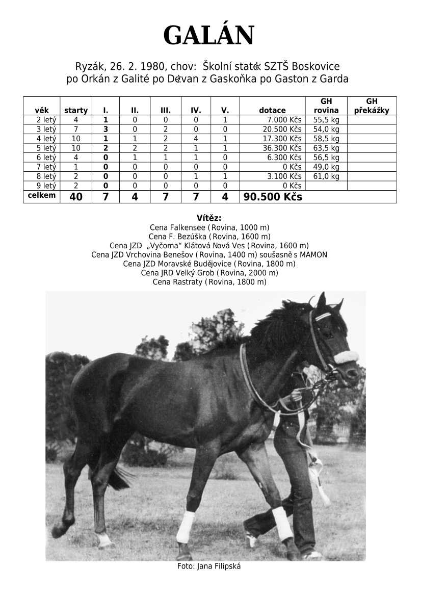 Ke konci dostihové sezóny jsem se pustila do aktualizace výsledků vítězných potomků. Každý plemeník bude mít své potomky na hlavní stránce, bez dalšího vyhledávání a klikání. Vše bude přehlednější, ale aktualizace bude z časových důvodů postupná. Přidáváni jsou potomci s ukončenou dostihovou kariérou.