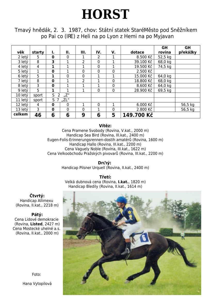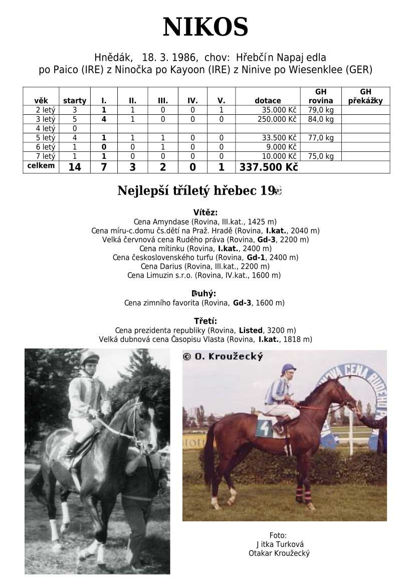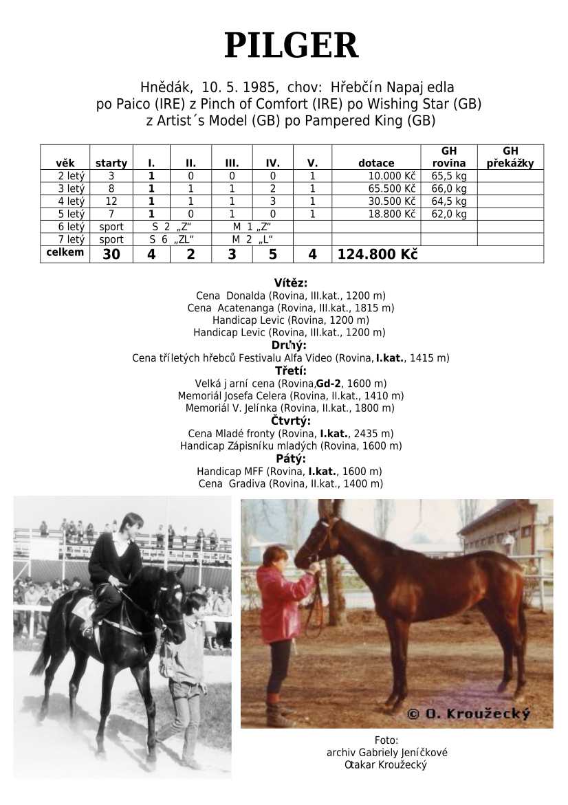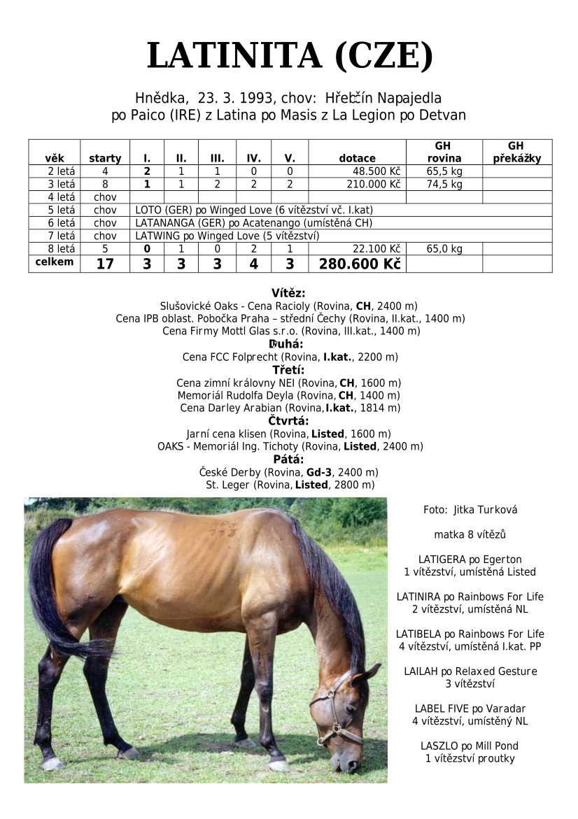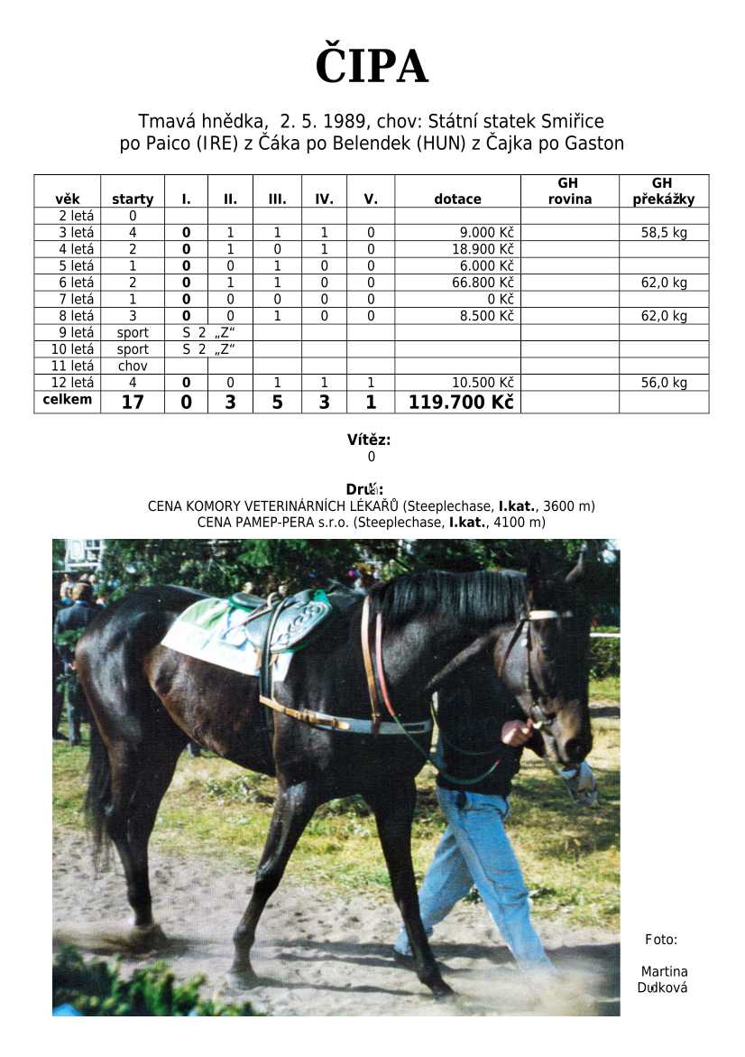 Ke konci dostihové sezóny jsem se pustila do aktualizace výsledků vítězných potomků. Každý plemeník bude mít své potomky na hlavní stránce, bez dalšího vyhledávání a klikání. Vše bude přehlednější, ale aktualizace bude z časových důvodů postupná. Přidáváni jsou potomci s ukončenou dostihovou kariérou.