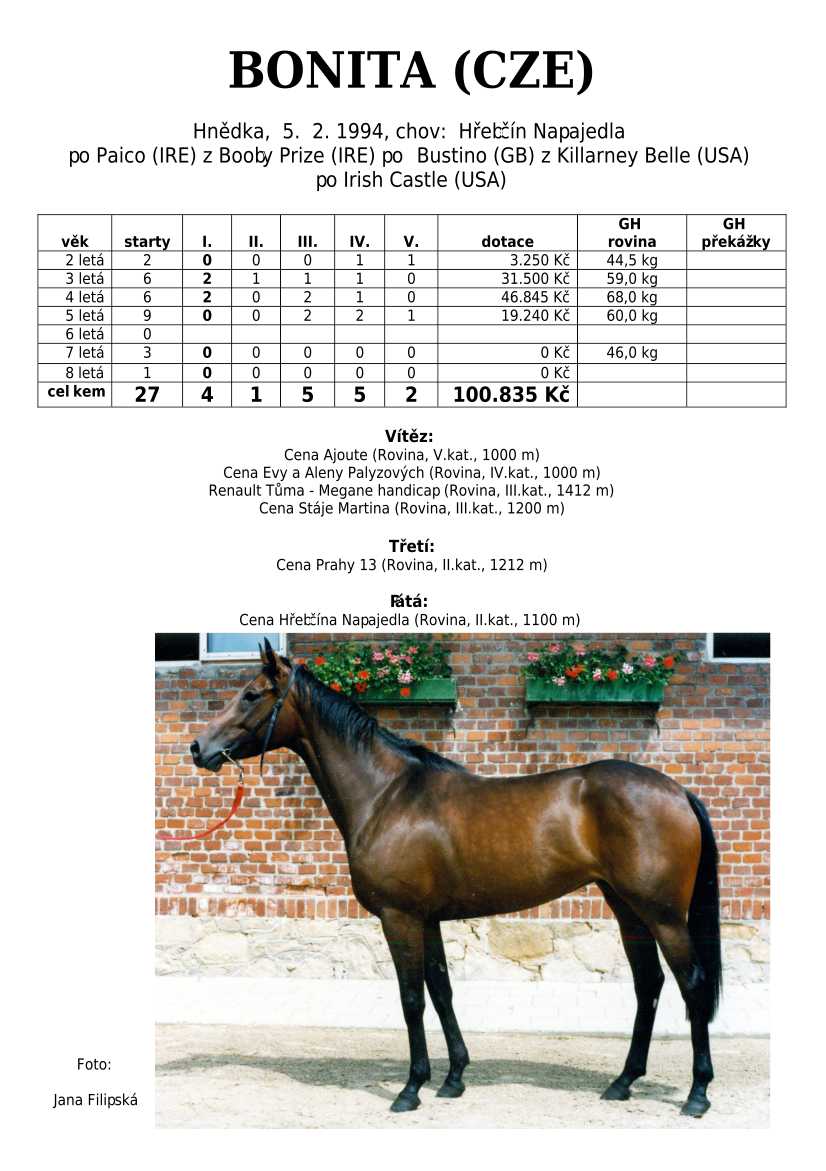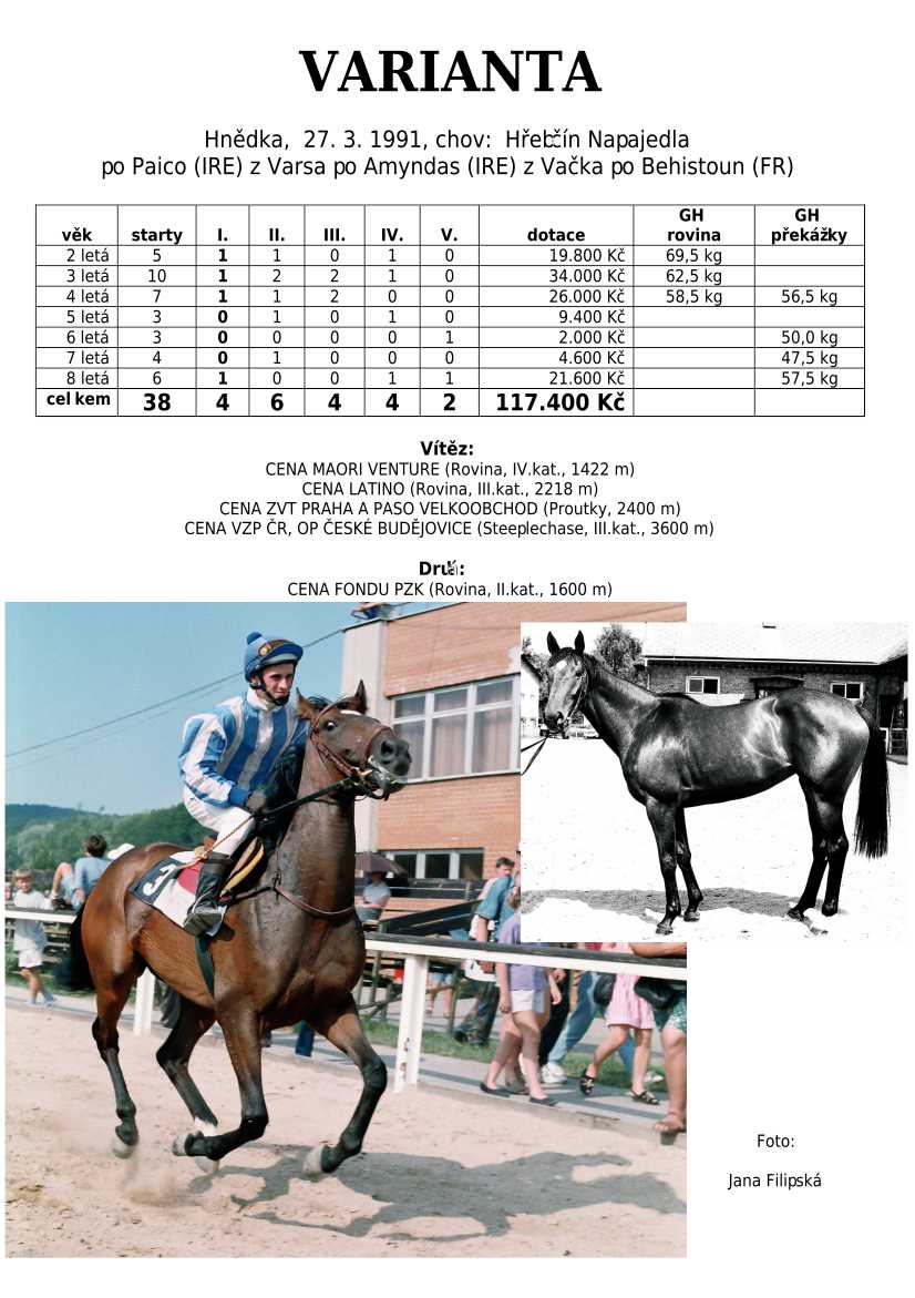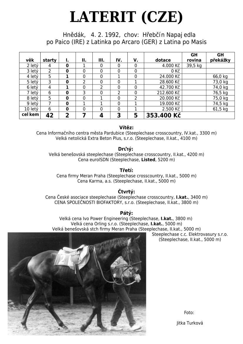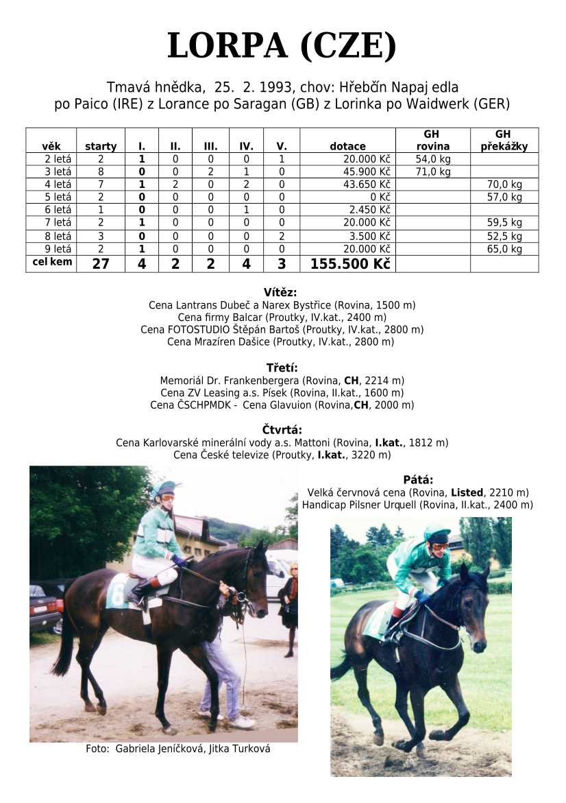 Ke konci dostihové sezóny jsem se pustila do aktualizace výsledků vítězných potomků. Každý plemeník bude mít své potomky na hlavní stránce, bez dalšího vyhledávání a klikání. Vše bude přehlednější, ale aktualizace bude z časových důvodů postupná. Přidáváni jsou potomci s ukončenou dostihovou kariérou.