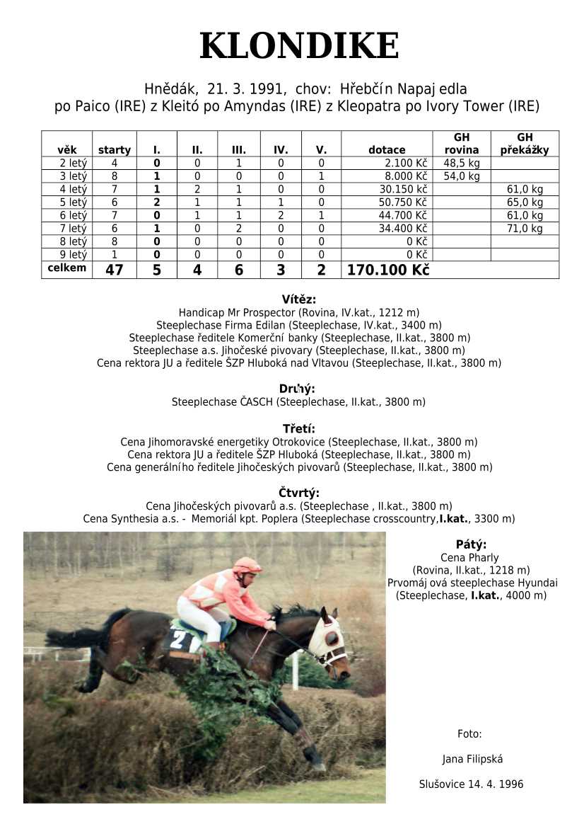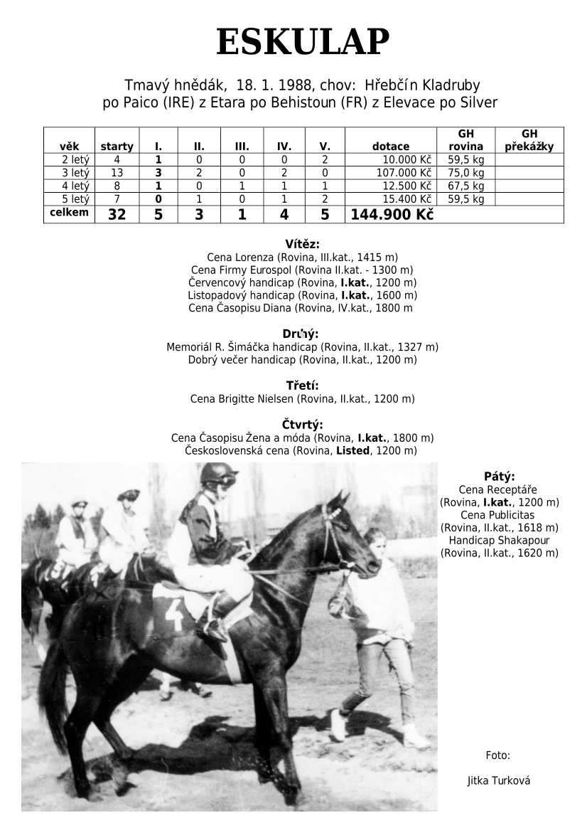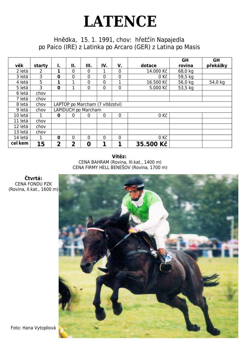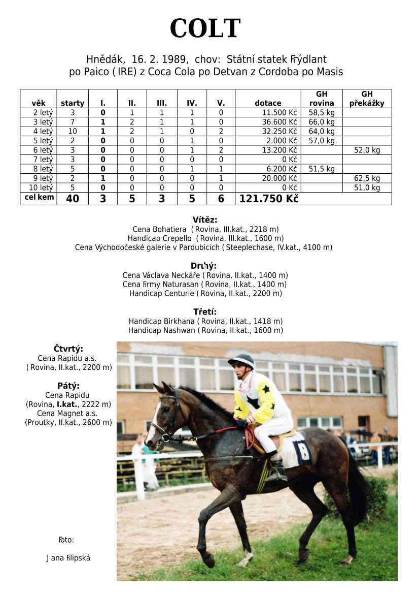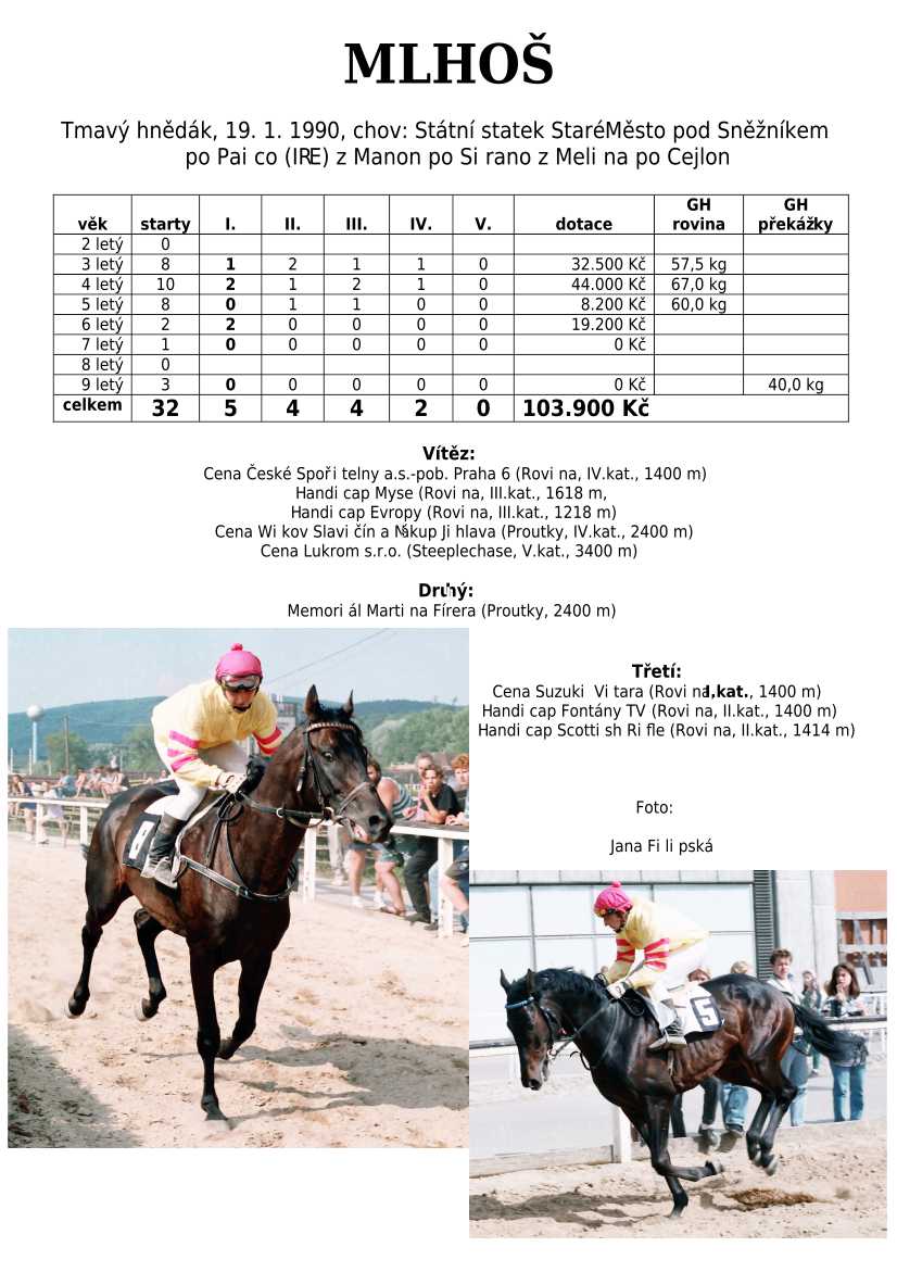 Ke konci dostihové sezóny jsem se pustila do aktualizace výsledků vítězných potomků. Každý plemeník bude mít své potomky na hlavní stránce, bez dalšího vyhledávání a klikání. Vše bude přehlednější, ale aktualizace bude z časových důvodů postupná. Přidáváni jsou potomci s ukončenou dostihovou kariérou.