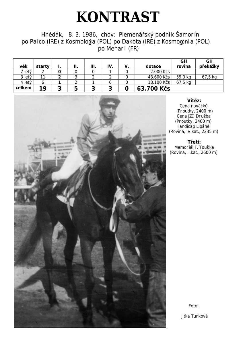 Trendem se ukazuje importování hotových koní. Stáda chovných klisen se stále tenčí, i když loňské úspěchy českých odchovanců byly excelentní, ale to už je jiná kapitola...