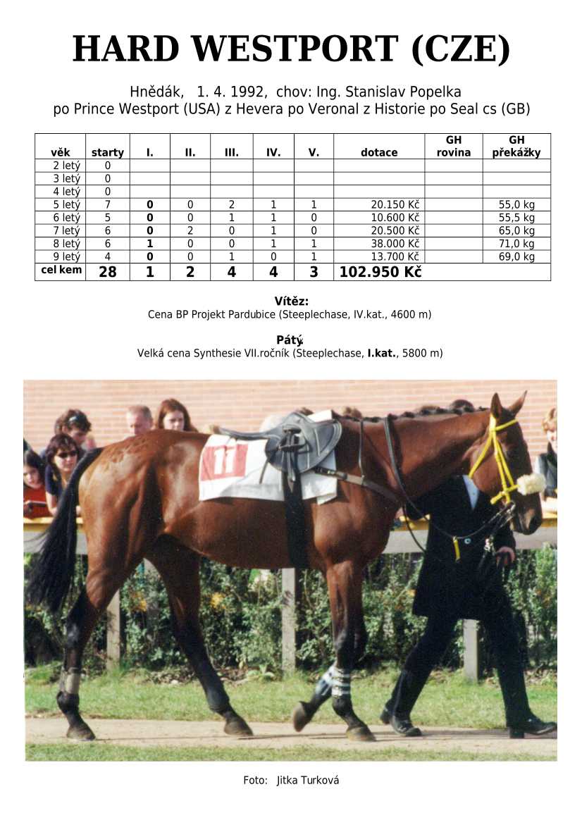 HARD FIGHTER (CZE) po Tiger Cafe je českým odchovancem, který do našeho chovu vrací krev japonského super šampiona plemeníků Sunday Silence.