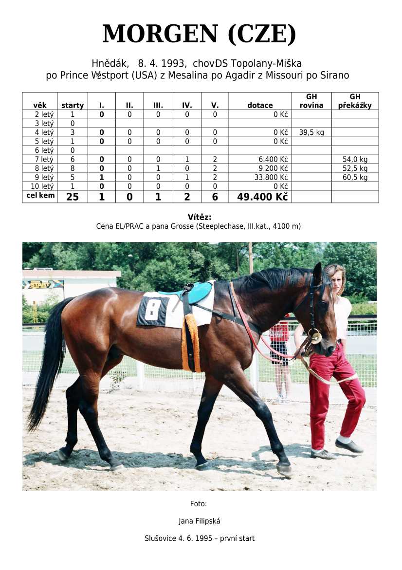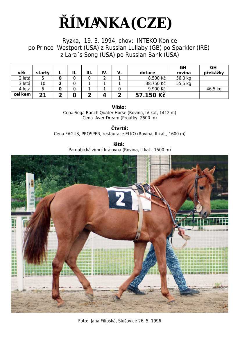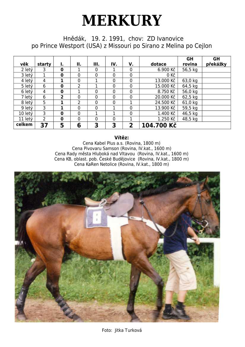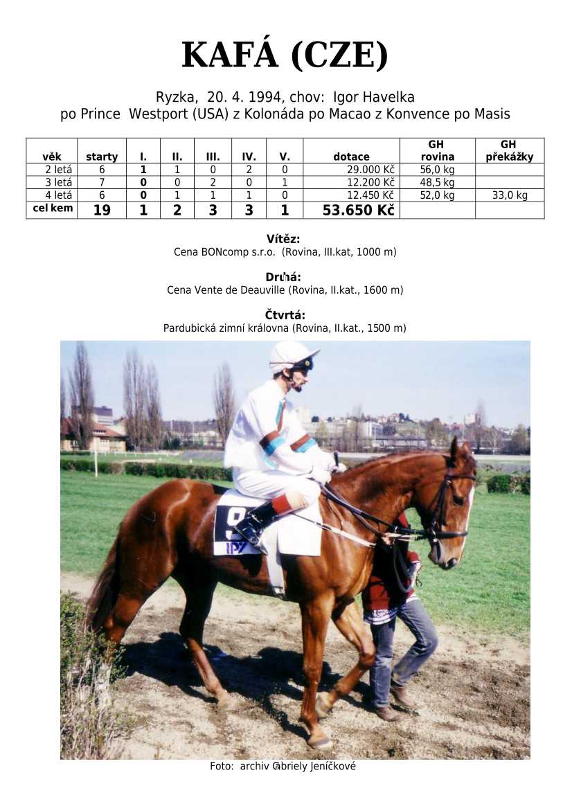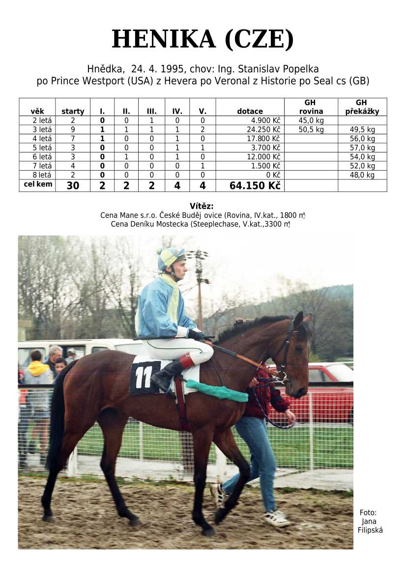 Ke konci dostihové sezóny jsem se pustila do aktualizace výsledků vítězných potomků. Každý plemeník bude mít své potomky na hlavní stránce, bez dalšího vyhledávání a klikání. Vše bude přehlednější, ale aktualizace bude z časových důvodů postupná. Přidáváni jsou potomci s ukončenou dostihovou kariérou.
