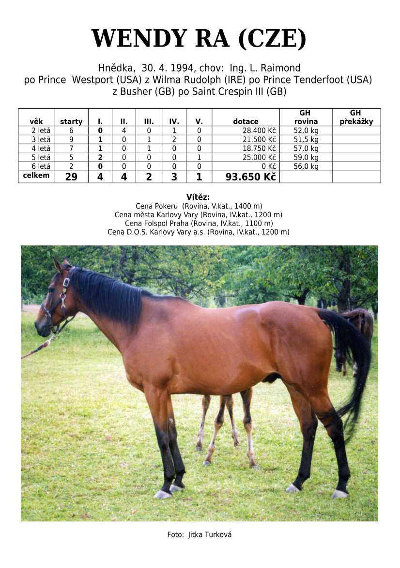 Trendem se ukazuje importování hotových koní. Stáda chovných klisen se stále tenčí, i když loňské úspěchy českých odchovanců byly excelentní, ale to už je jiná kapitola...