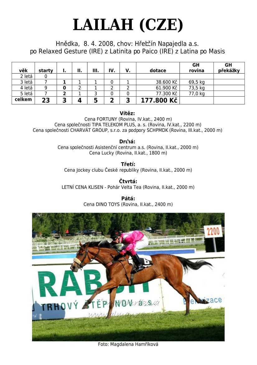Ke konci dostihové sezóny jsem se pustila do aktualizace výsledků vítězných potomků. Každý plemeník bude mít své potomky na hlavní stránce, bez dalšího vyhledávání a klikání. Vše bude přehlednější, ale aktualizace bude z časových důvodů postupná. Přidáváni jsou potomci s ukončenou dostihovou kariérou.