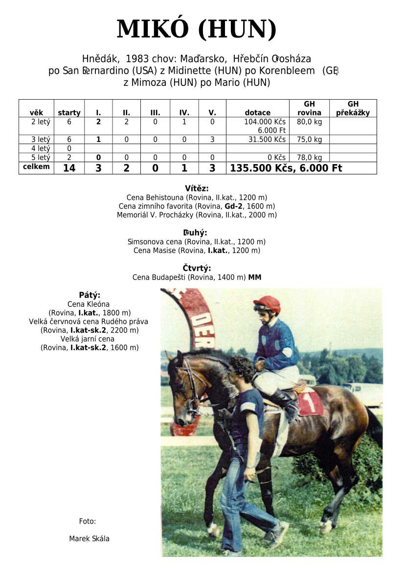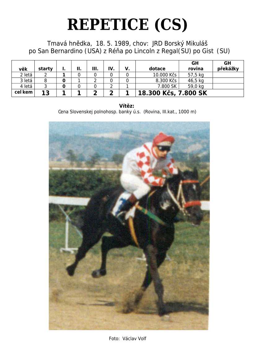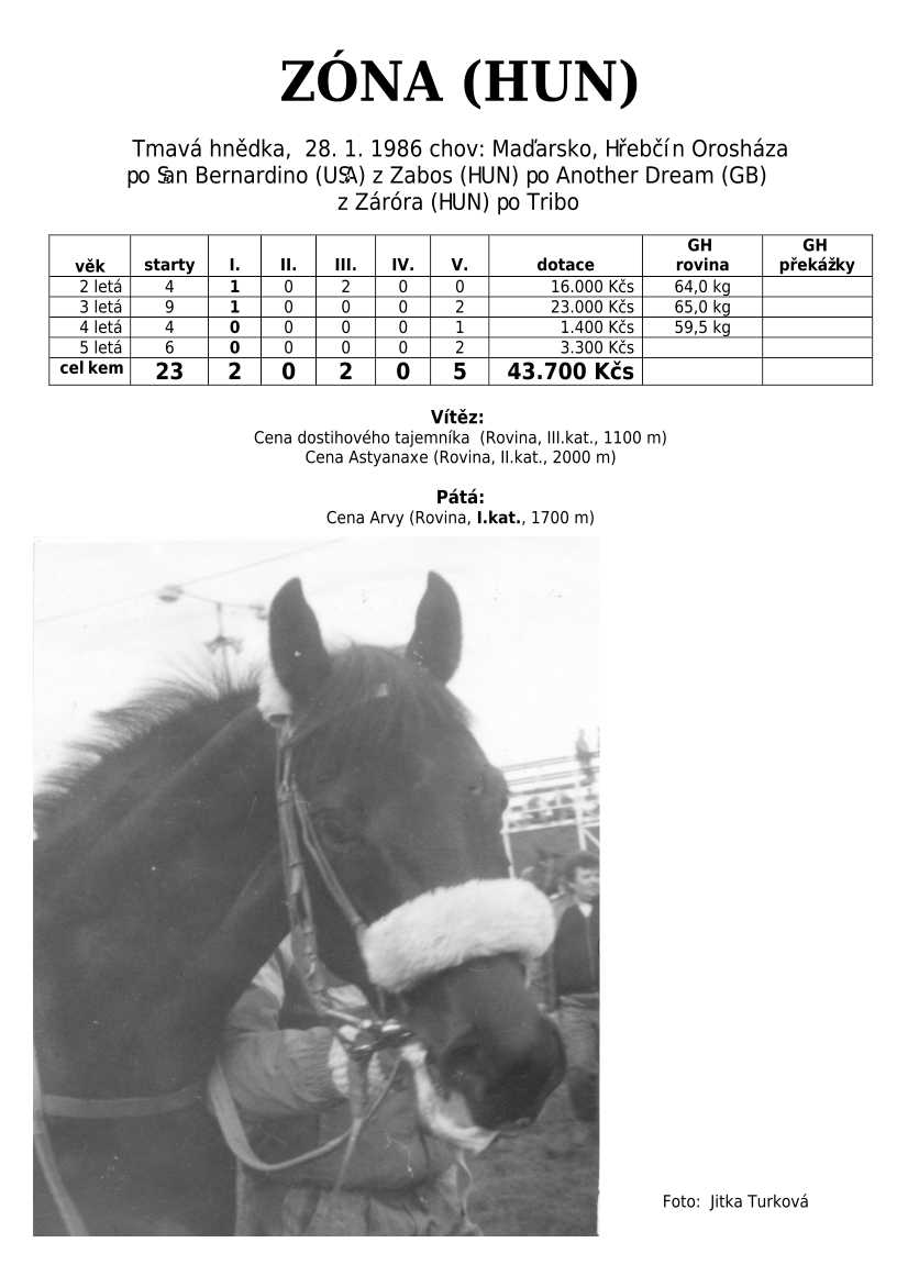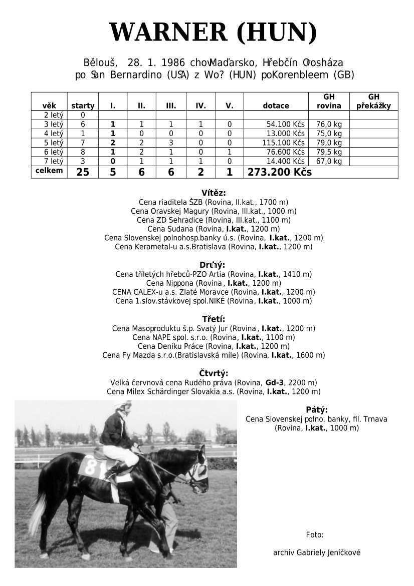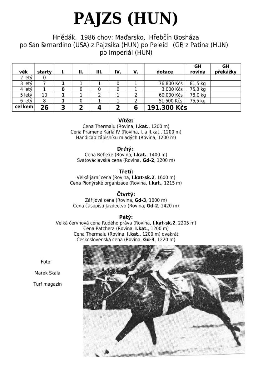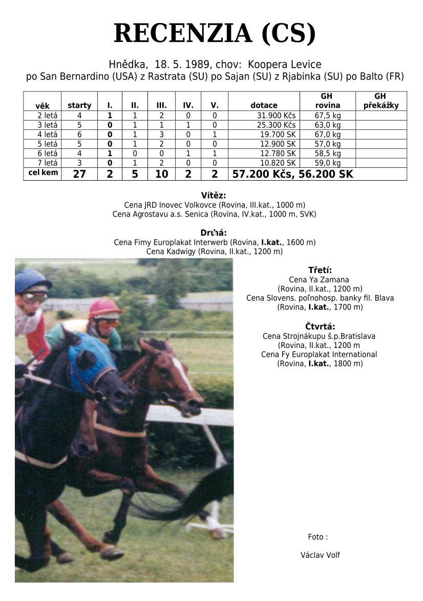 Otec klasické vítězky RETORZIÓ (HUN) Jarní cena klisen 1989