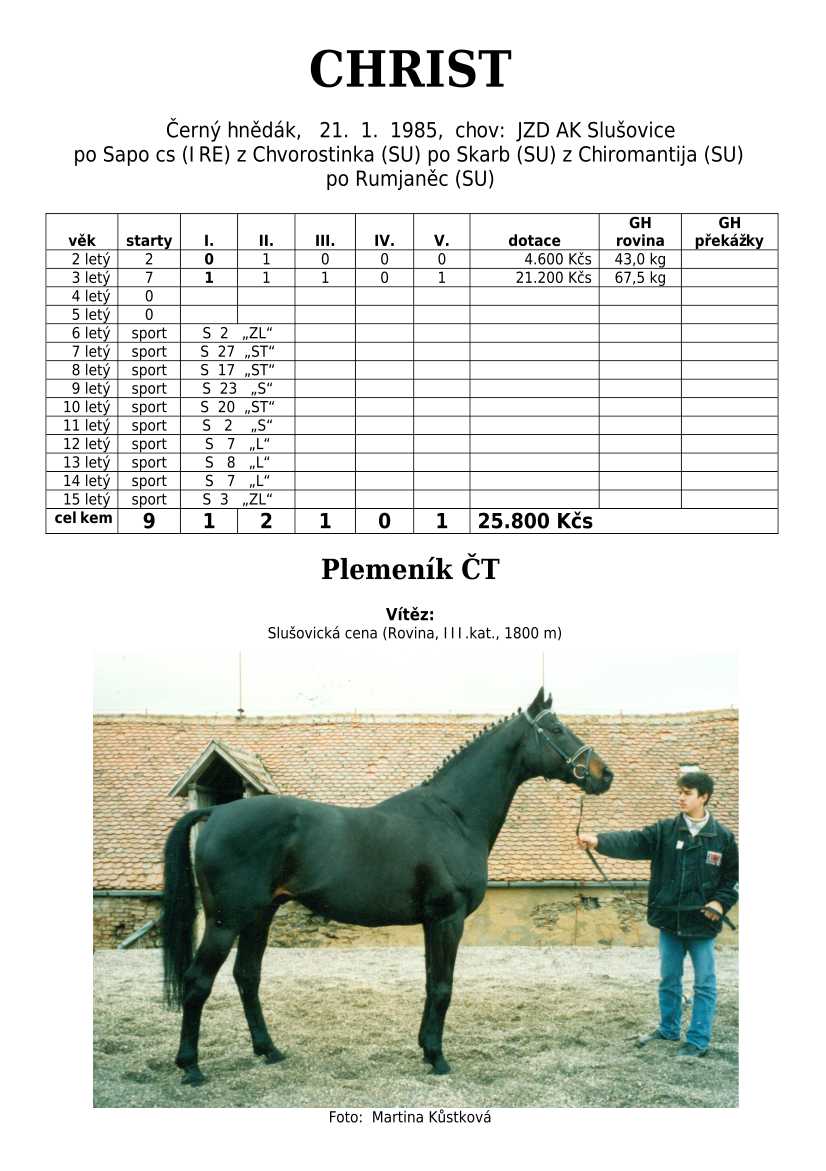 Trendem se ukazuje importování hotových koní. Stáda chovných klisen se stále tenčí, i když loňské úspěchy českých odchovanců byly excelentní, ale to už je jiná kapitola...