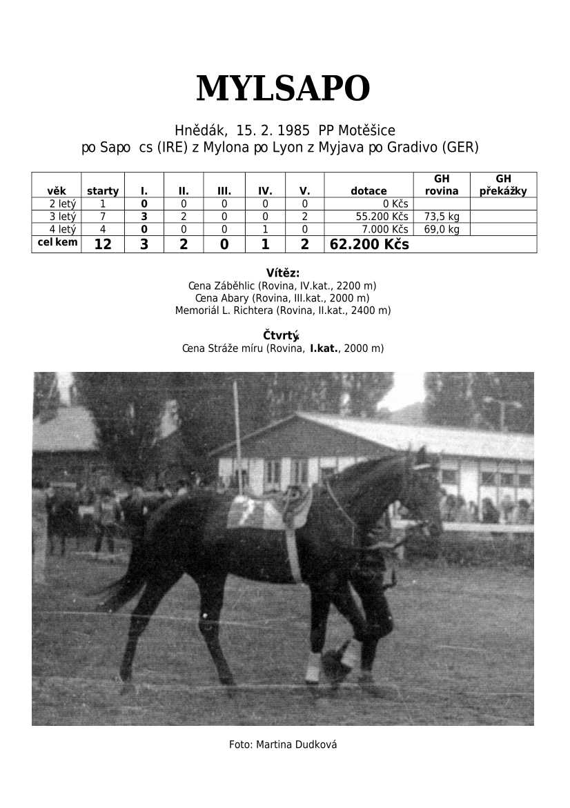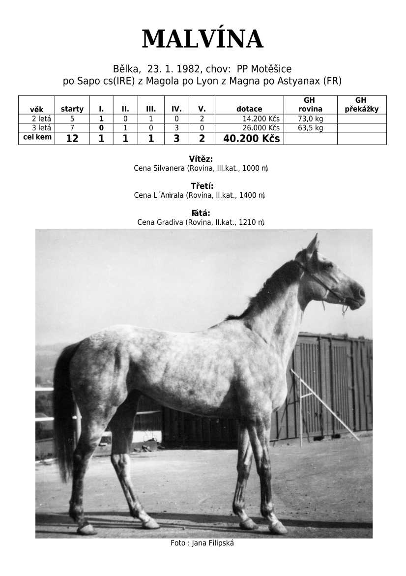 Ke konci dostihové sezóny jsem se pustila do aktualizace výsledků vítězných potomků. Každý plemeník bude mít své potomky na hlavní stránce, bez dalšího vyhledávání a klikání. Vše bude přehlednější, ale aktualizace bude z časových důvodů postupná. Přidáváni jsou potomci s ukončenou dostihovou kariérou.