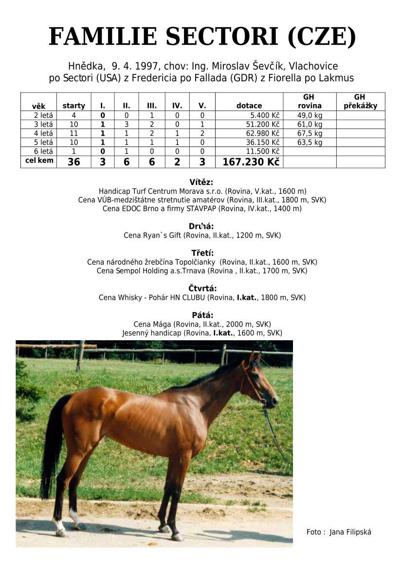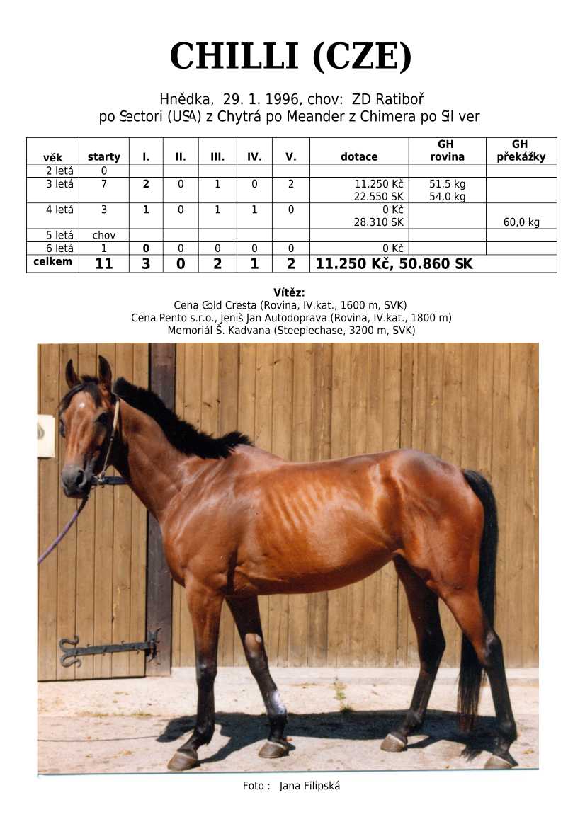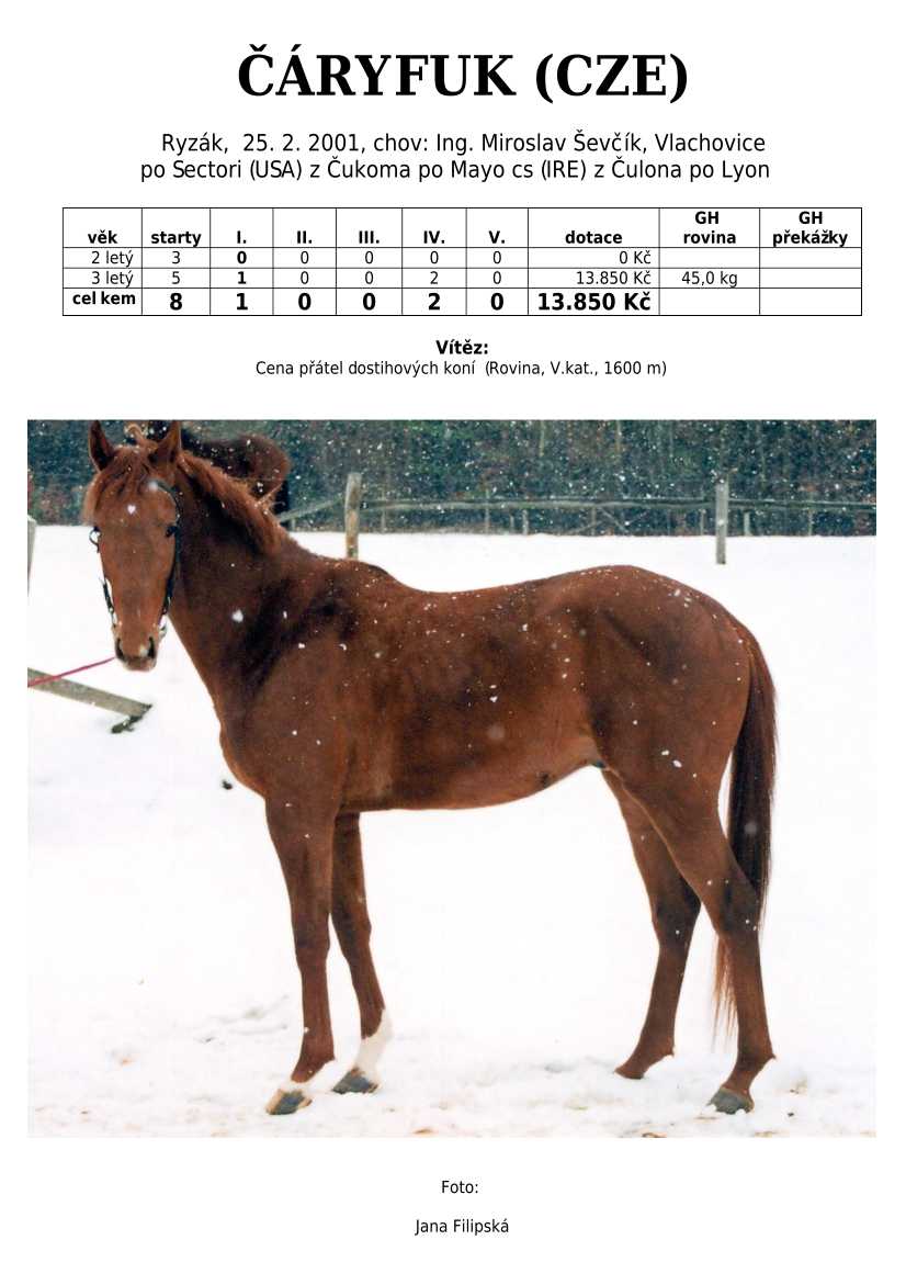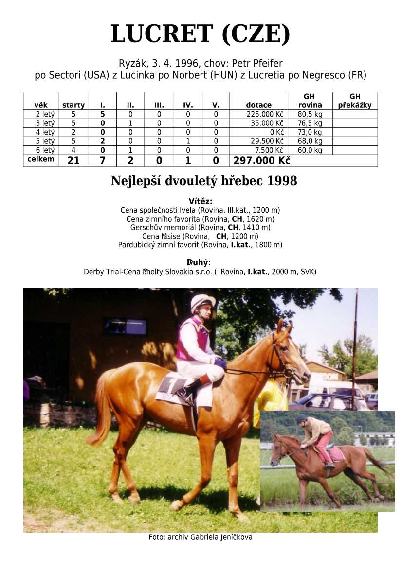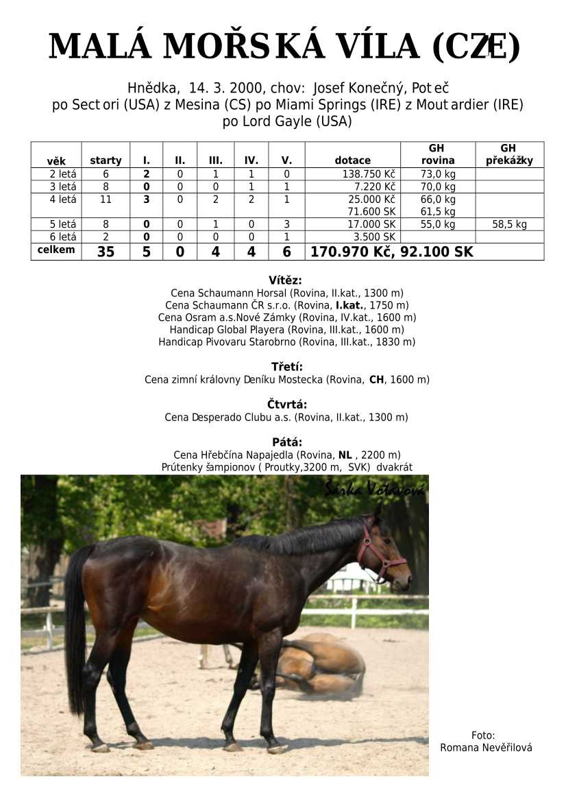 Ke konci dostihové sezóny jsem se pustila do aktualizace výsledků vítězných potomků. Každý plemeník bude mít své potomky na hlavní stránce, bez dalšího vyhledávání a klikání. Vše bude přehlednější, ale aktualizace bude z časových důvodů postupná. Přidáváni jsou potomci s ukončenou dostihovou kariérou.