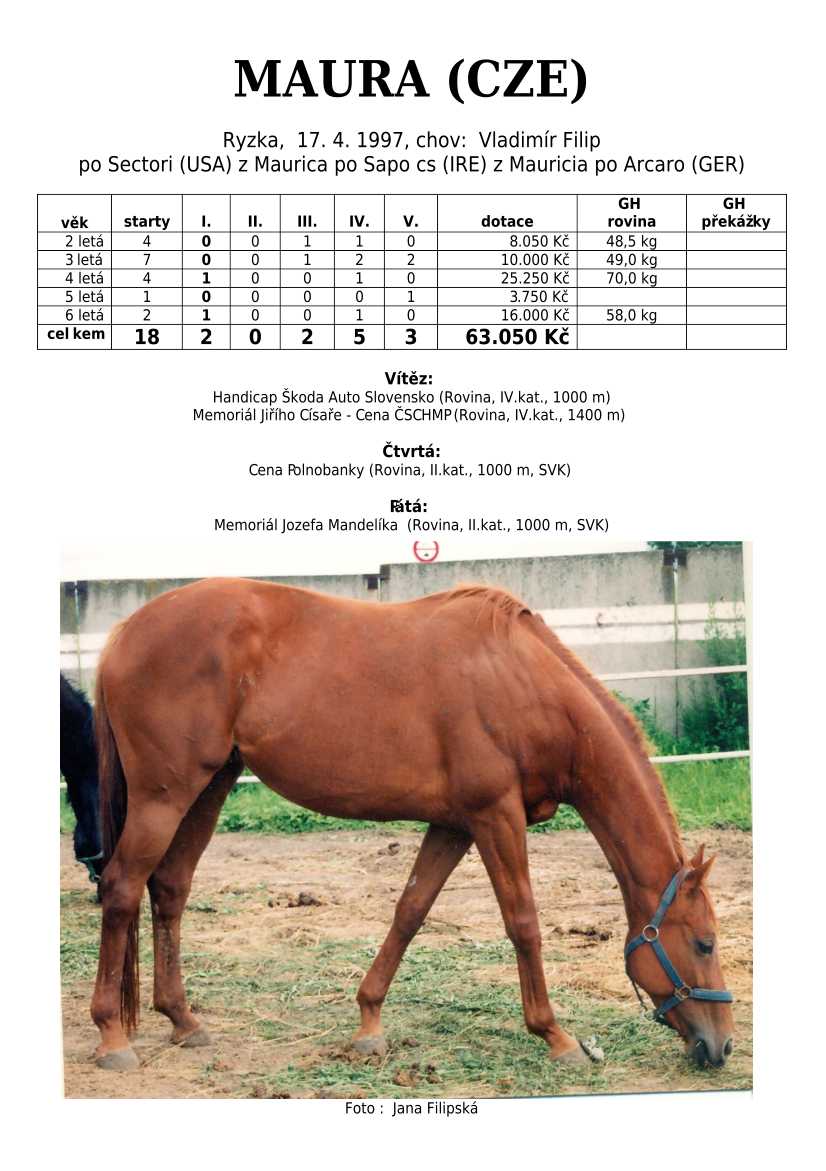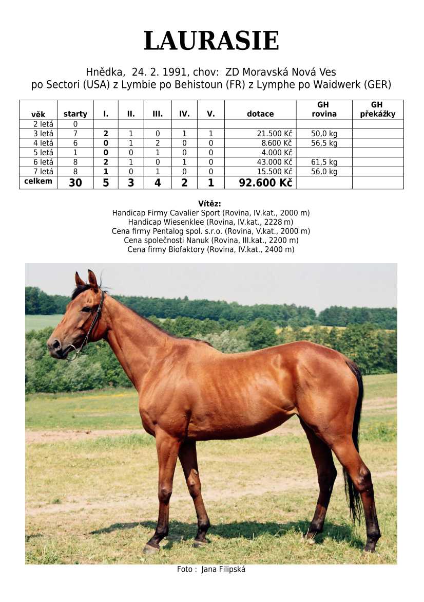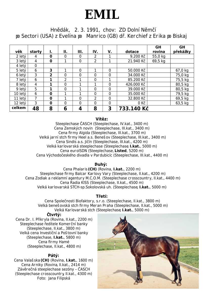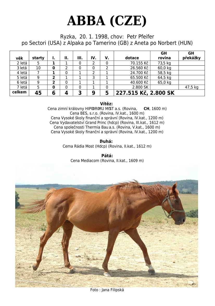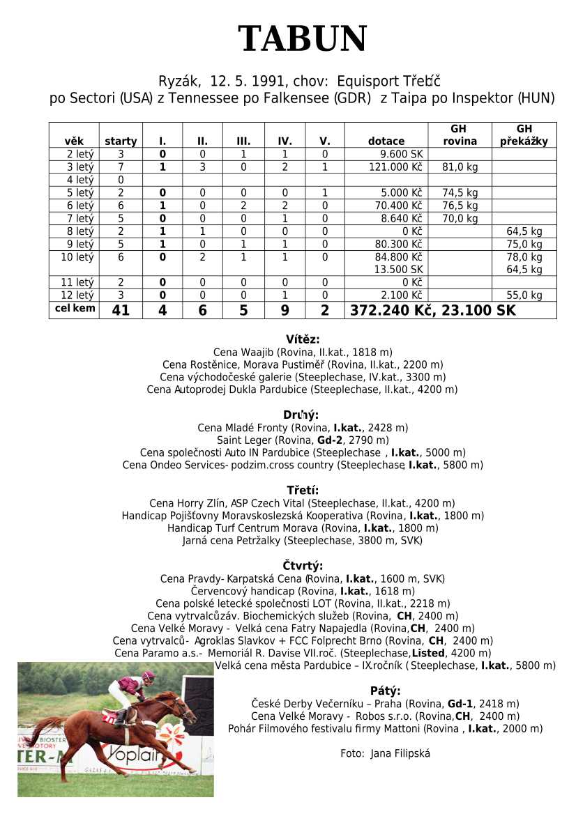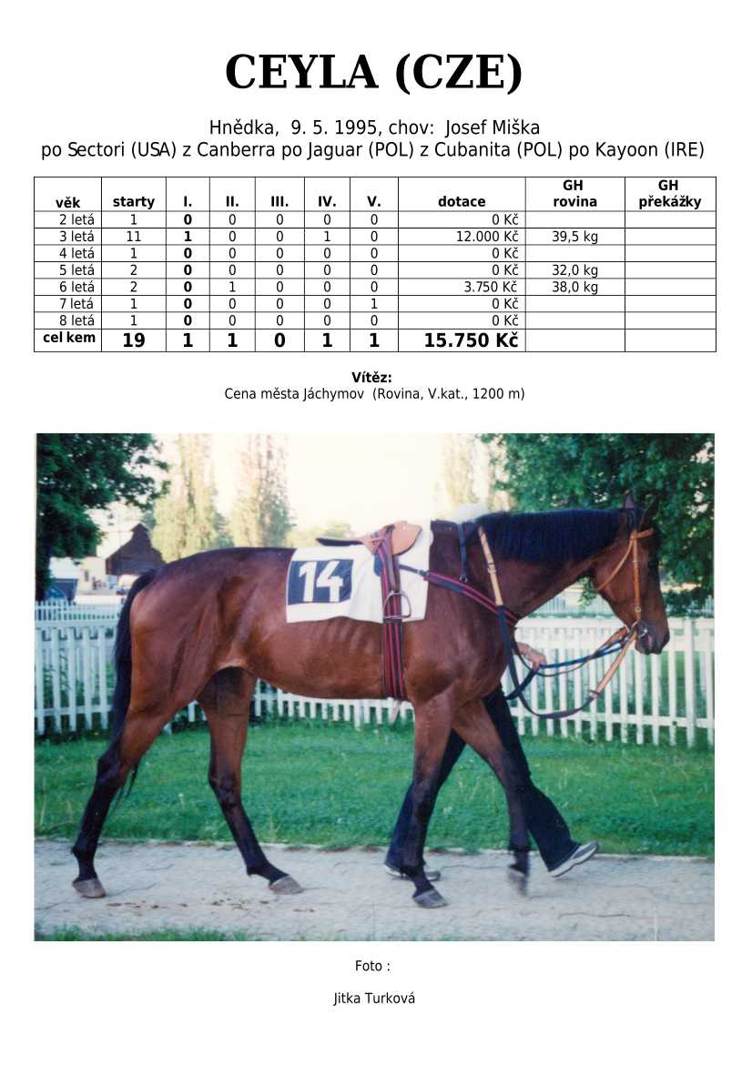 Ke konci dostihové sezóny jsem se pustila do aktualizace výsledků vítězných potomků. Každý plemeník bude mít své potomky na hlavní stránce, bez dalšího vyhledávání a klikání. Vše bude přehlednější, ale aktualizace bude z časových důvodů postupná. Přidáváni jsou potomci s ukončenou dostihovou kariérou.