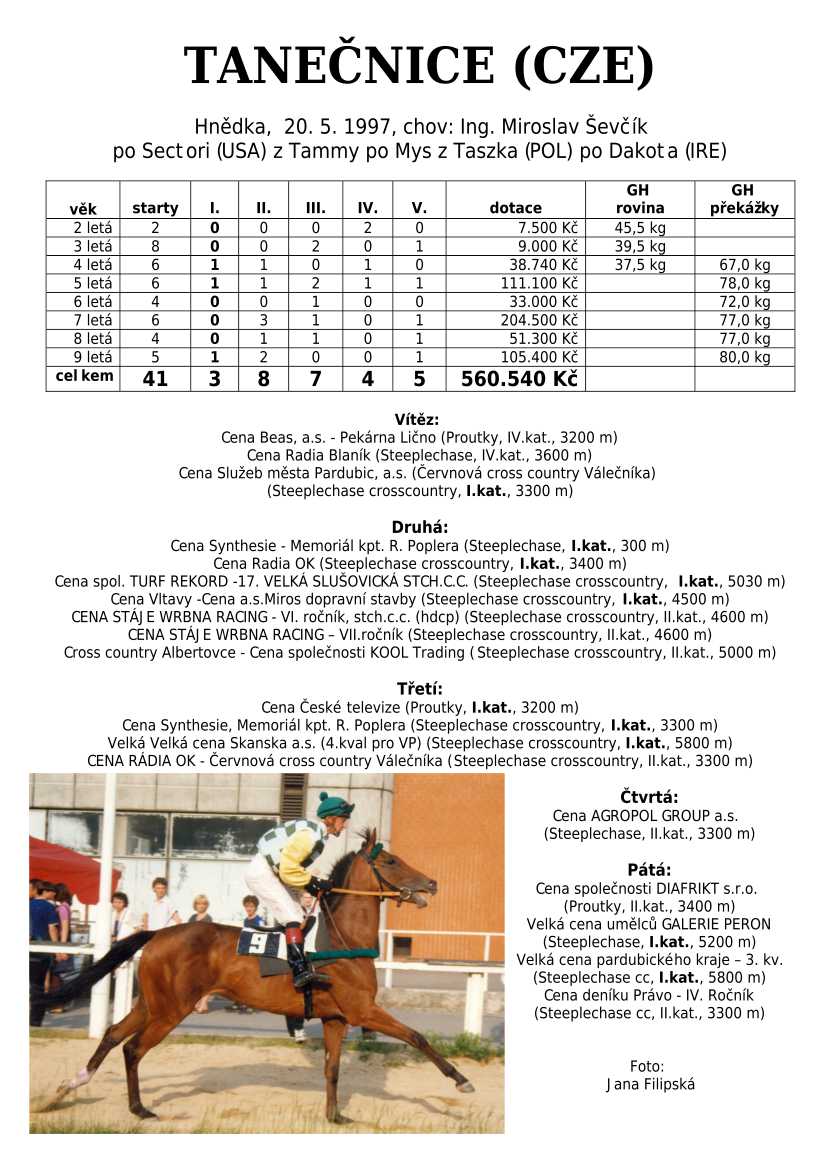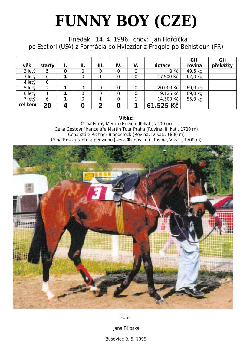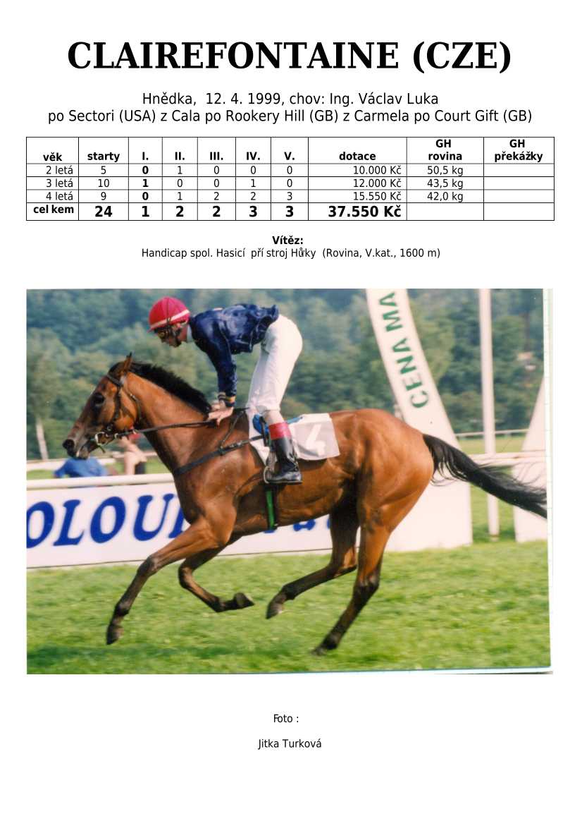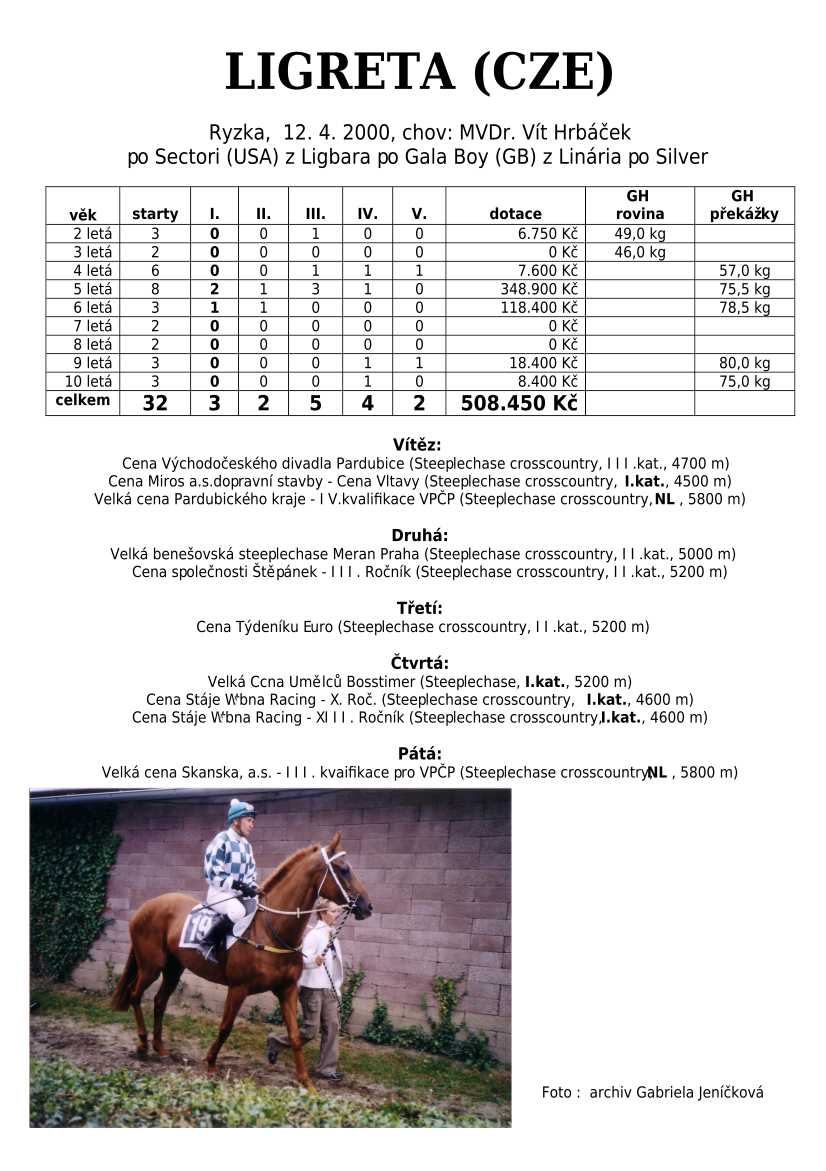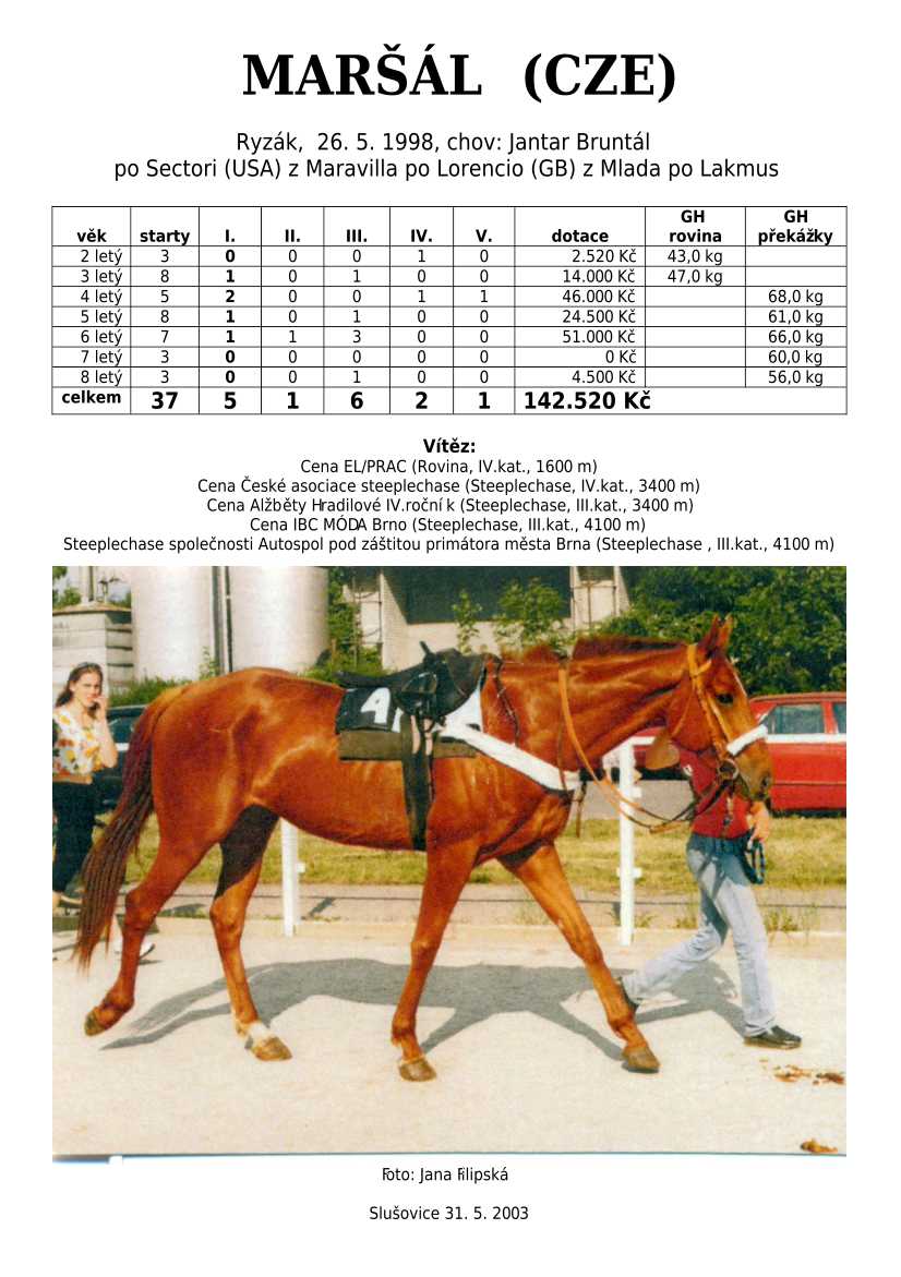 Ke konci dostihové sezóny jsem se pustila do aktualizace výsledků vítězných potomků. Každý plemeník bude mít své potomky na hlavní stránce, bez dalšího vyhledávání a klikání. Vše bude přehlednější, ale aktualizace bude z časových důvodů postupná. Přidáváni jsou potomci s ukončenou dostihovou kariérou.