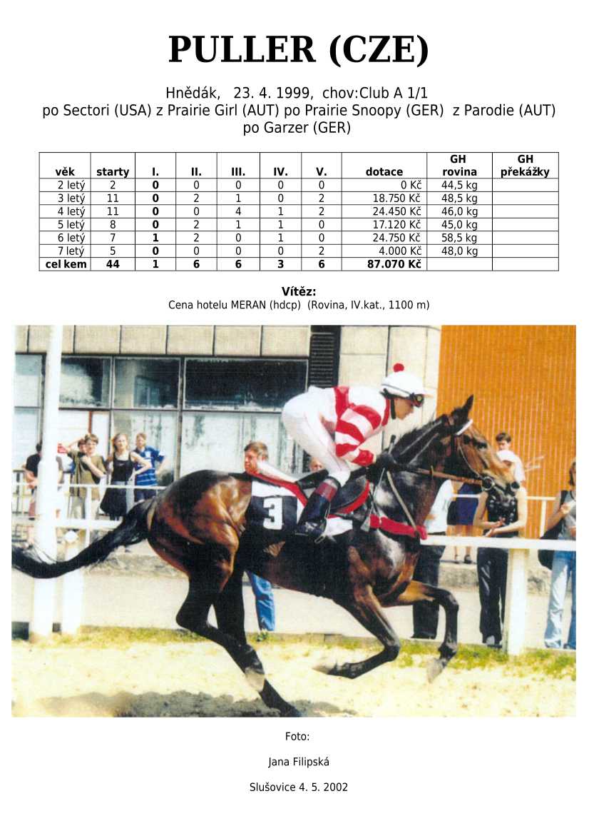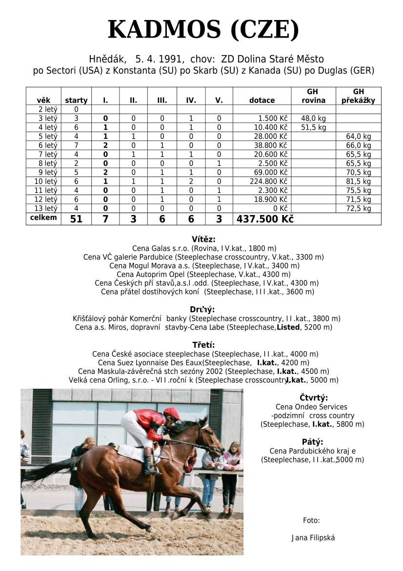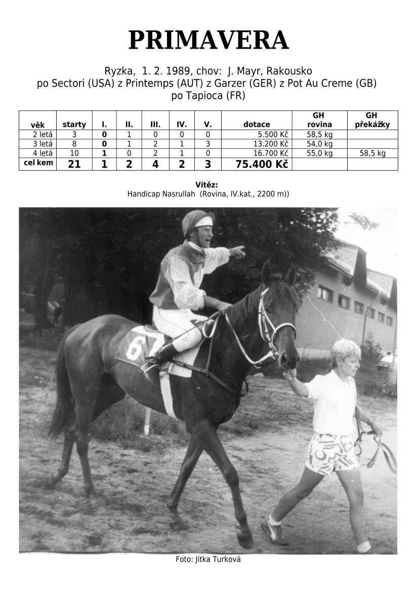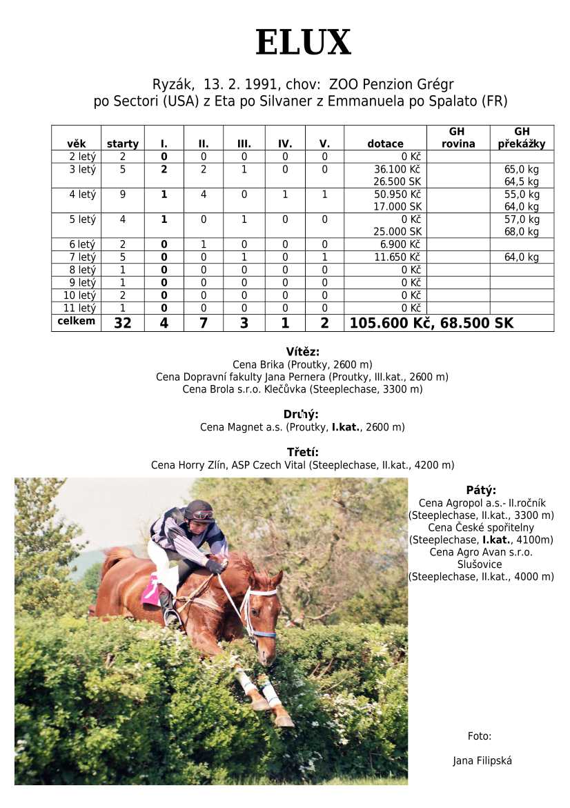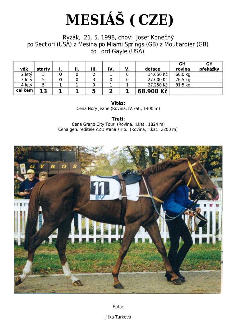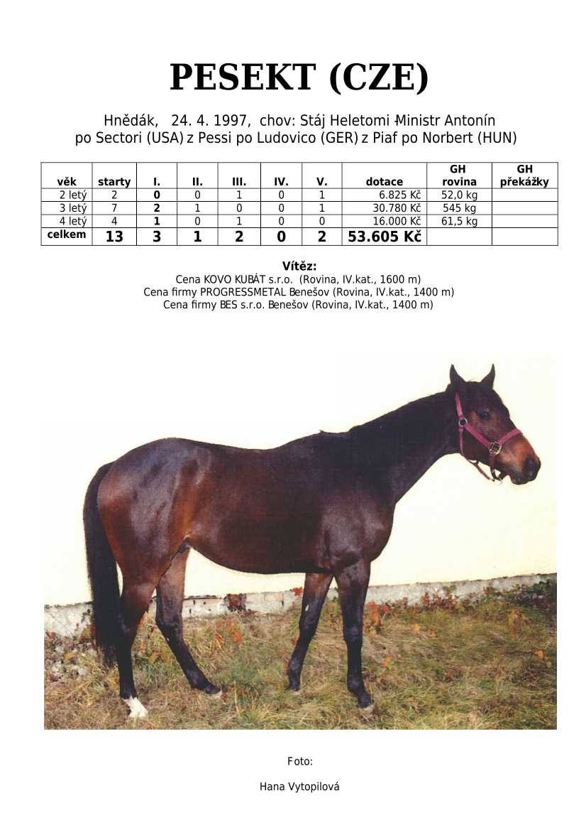 Ke konci dostihové sezóny jsem se pustila do aktualizace výsledků vítězných potomků. Každý plemeník bude mít své potomky na hlavní stránce, bez dalšího vyhledávání a klikání. Vše bude přehlednější, ale aktualizace bude z časových důvodů postupná. Přidáváni jsou potomci s ukončenou dostihovou kariérou.