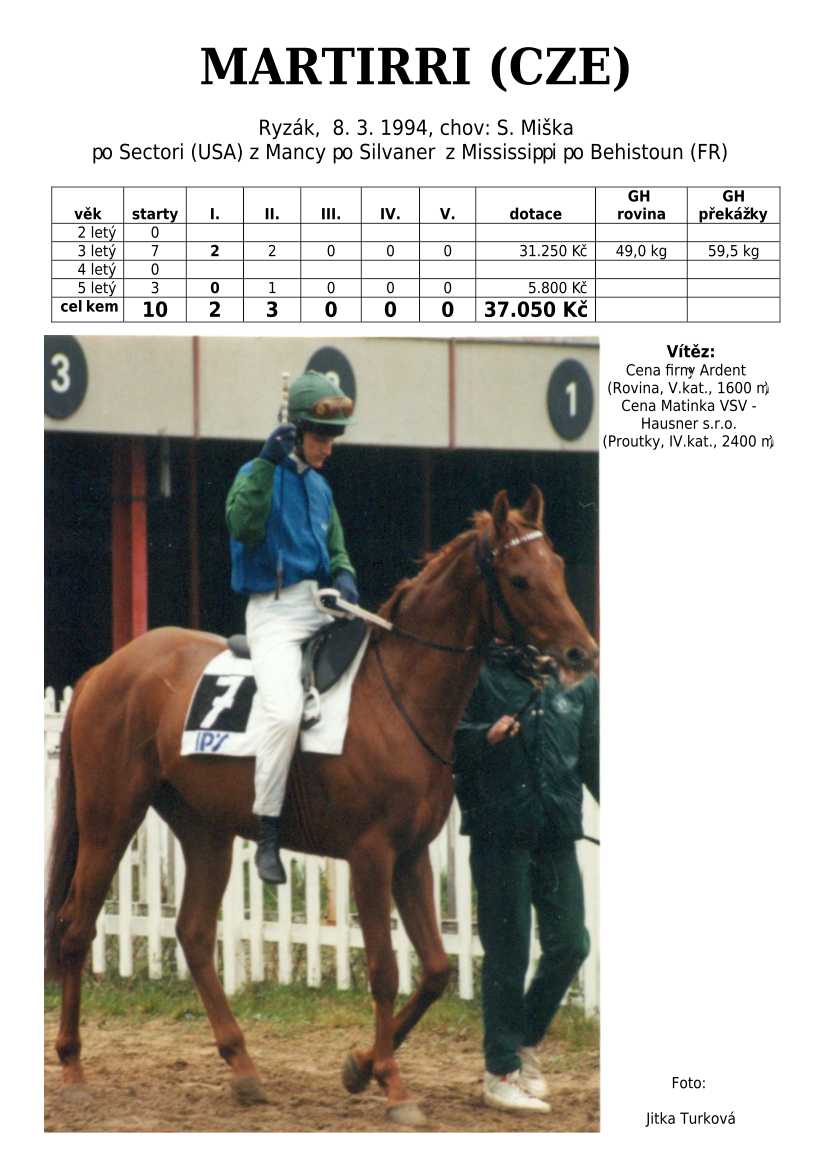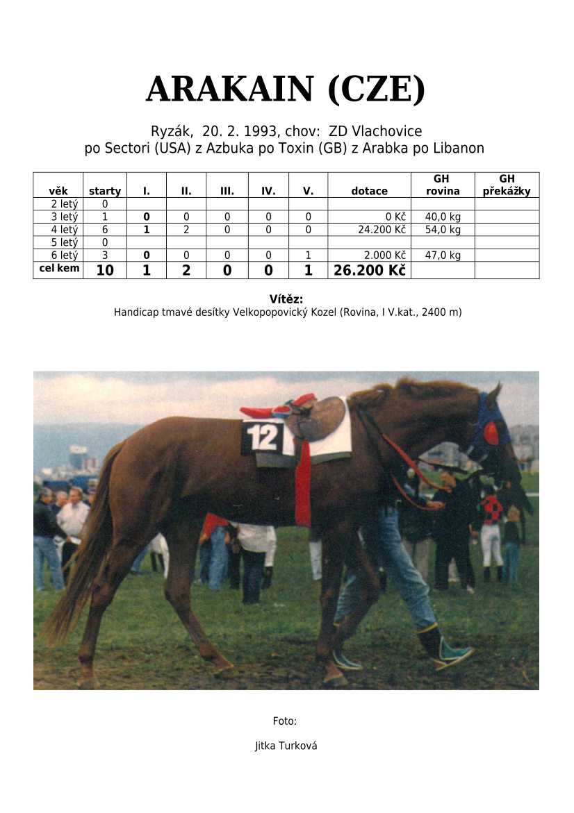 HARD FIGHTER (CZE) po Tiger Cafe je českým odchovancem, který do našeho chovu vrací krev japonského super šampiona plemeníků Sunday Silence.